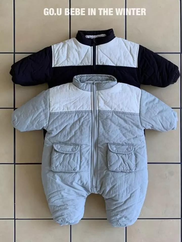 3752LS-Winter Korean style plus velvet warm double pocket long sleeve romper