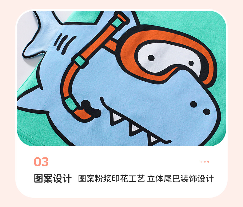 5028SE-夏季兒童純棉卡通鯊魚短袖上衣
