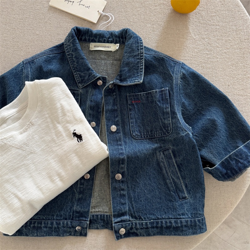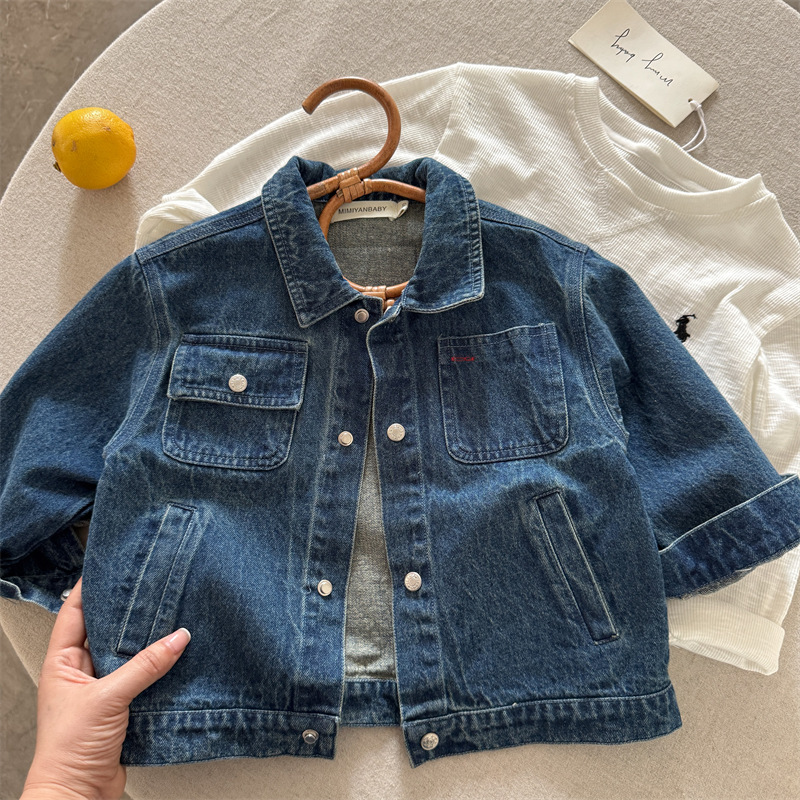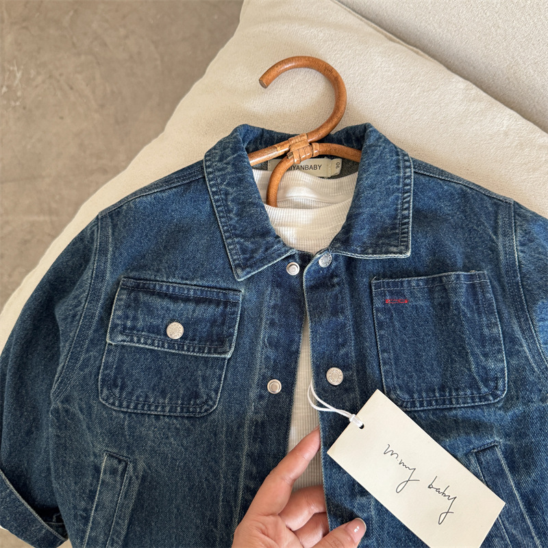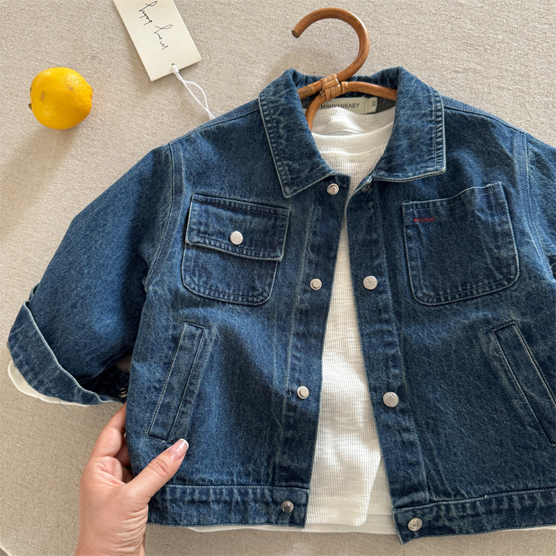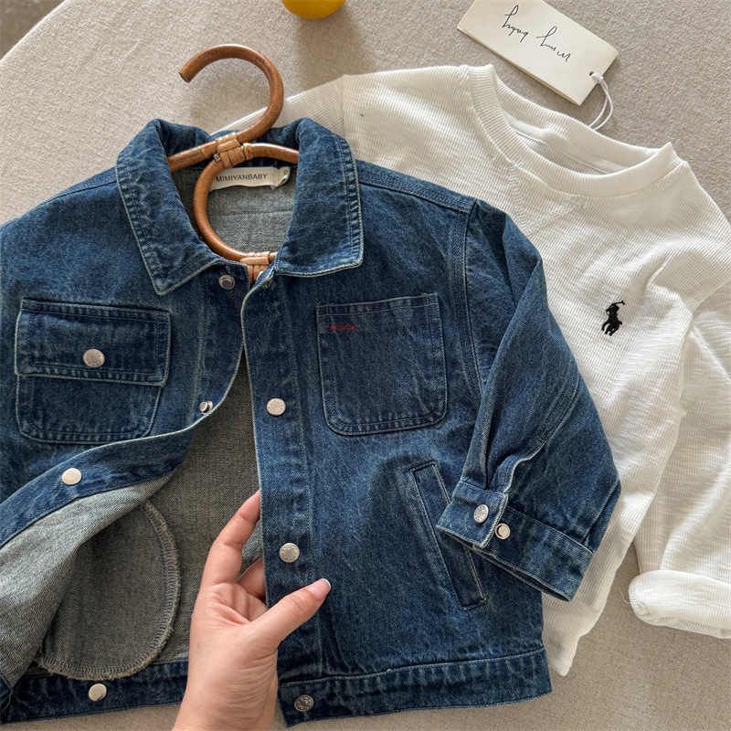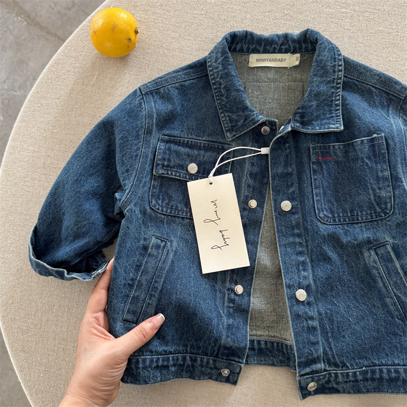51112SE-秋季百搭純色牛仔兒童外套