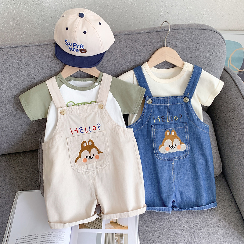 Squirrel Head Letter Overalls - Blue / 80 CM