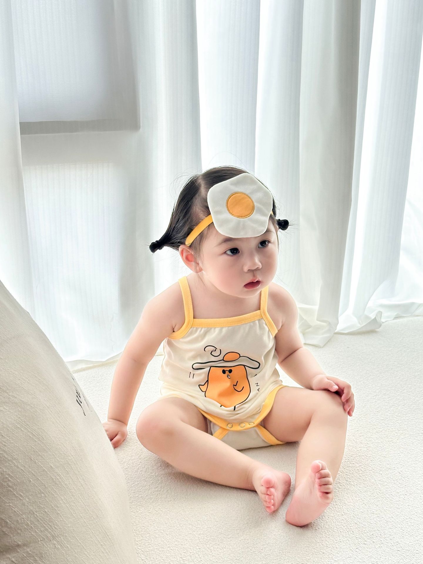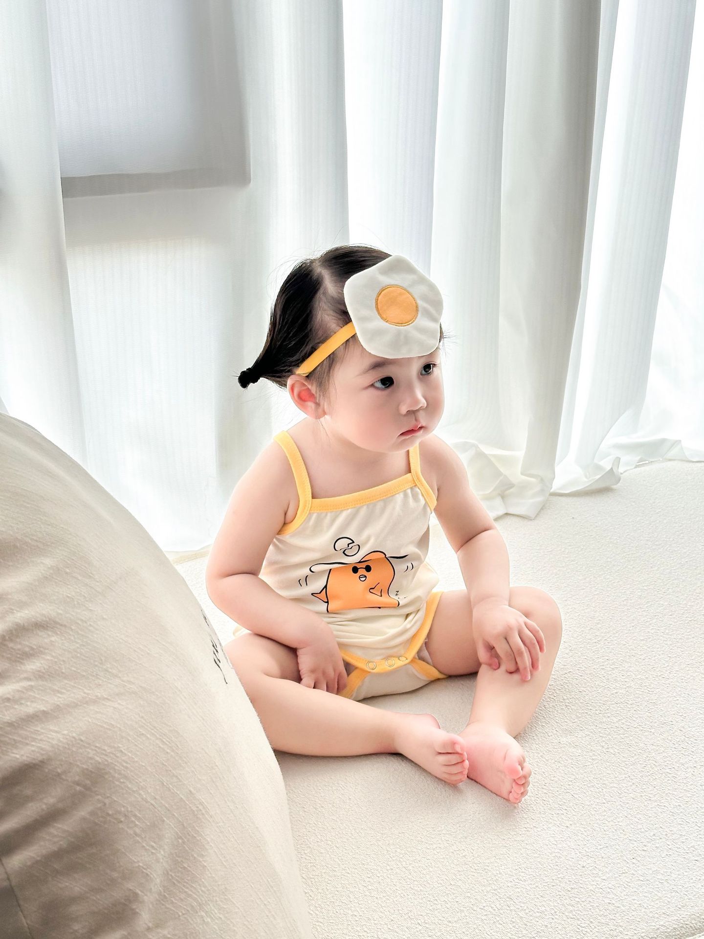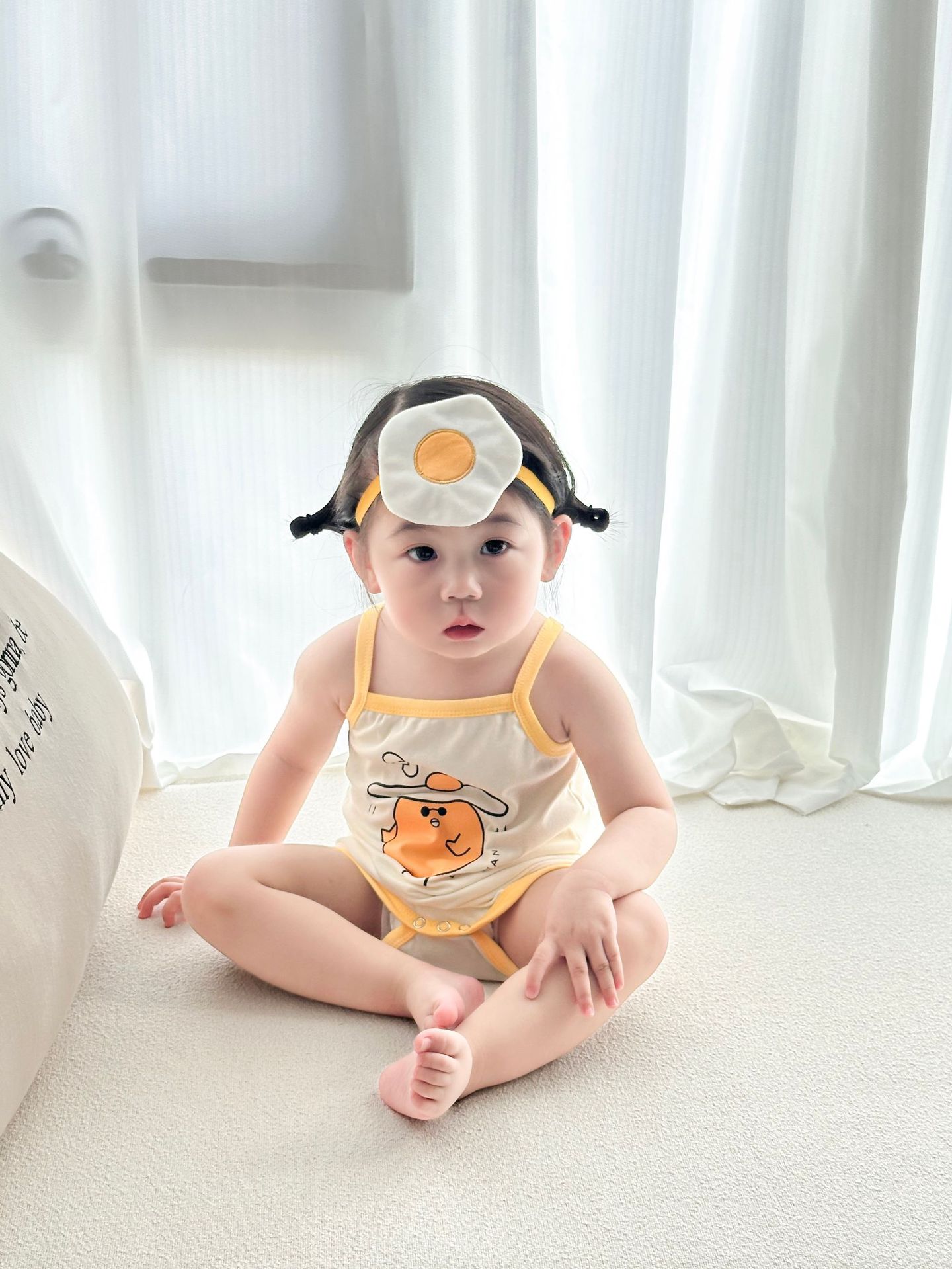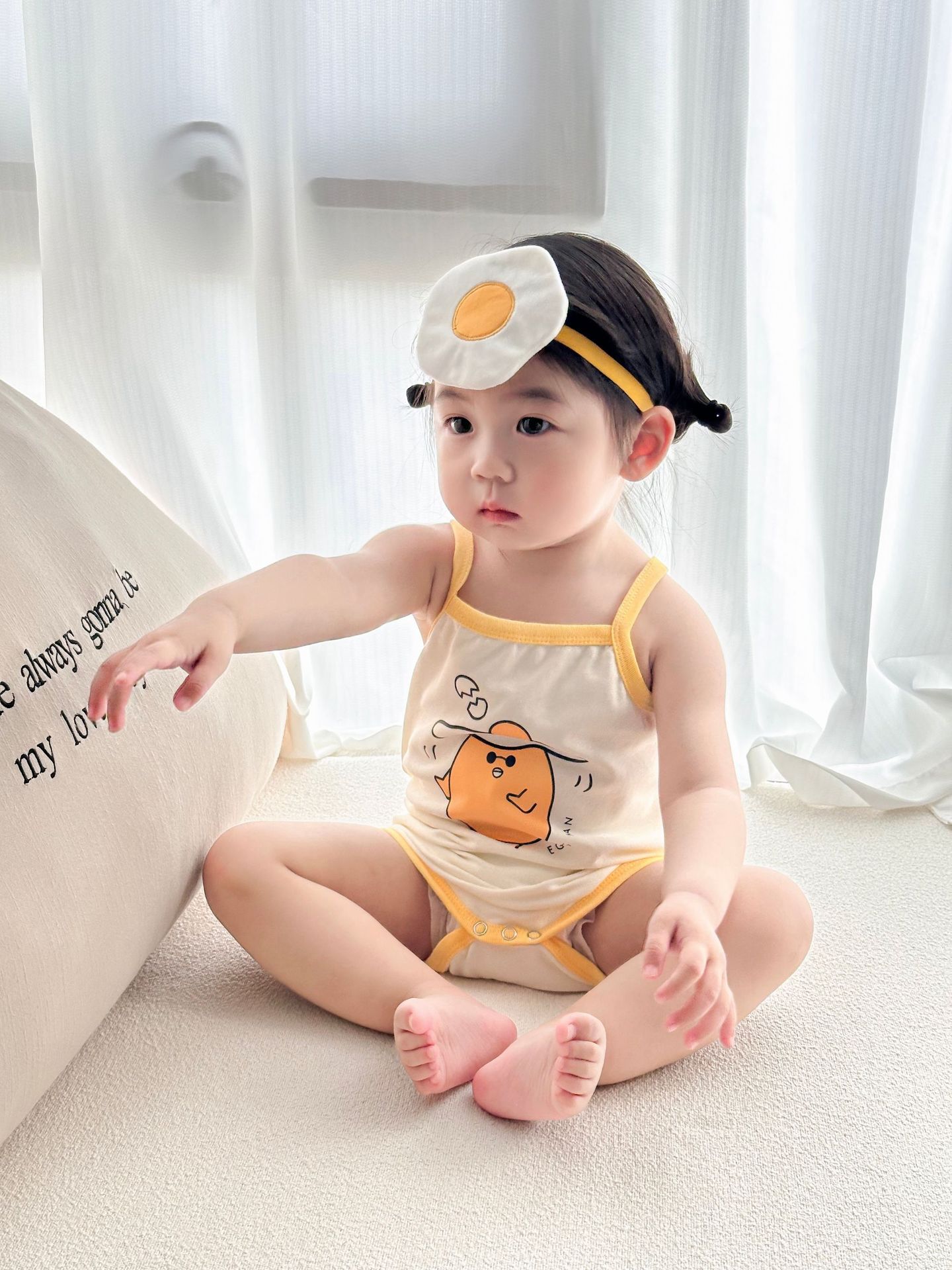 62414LS-Summer Korean egg-shaped suspender romper + headscarf