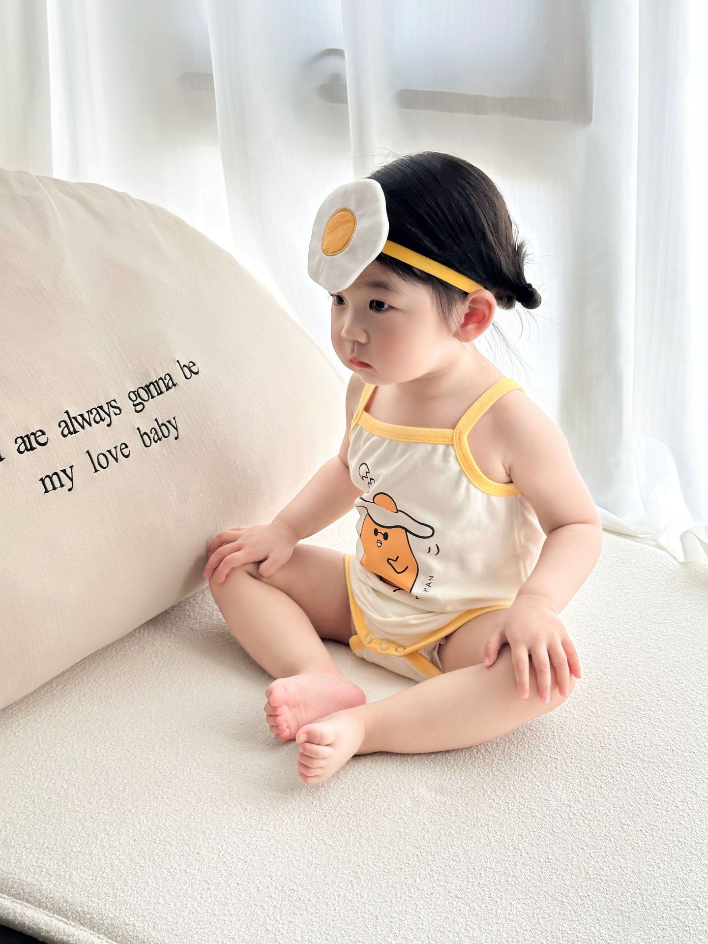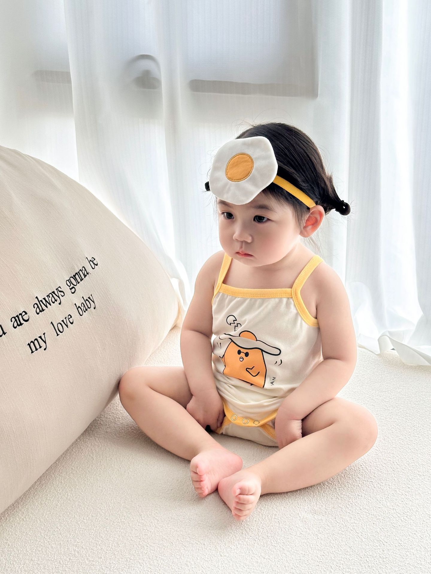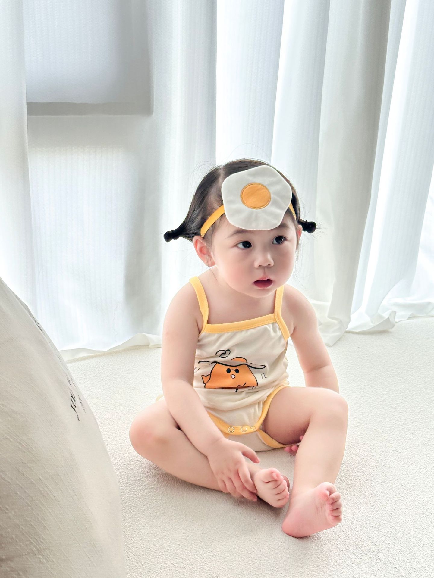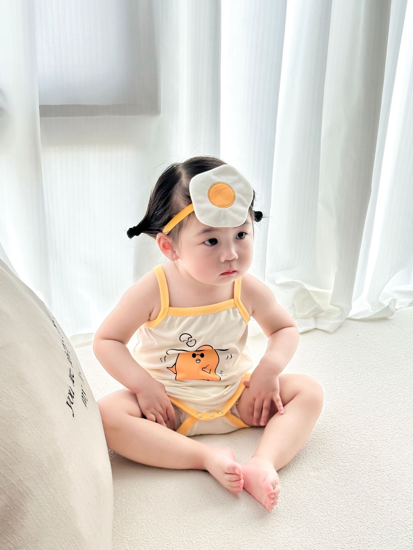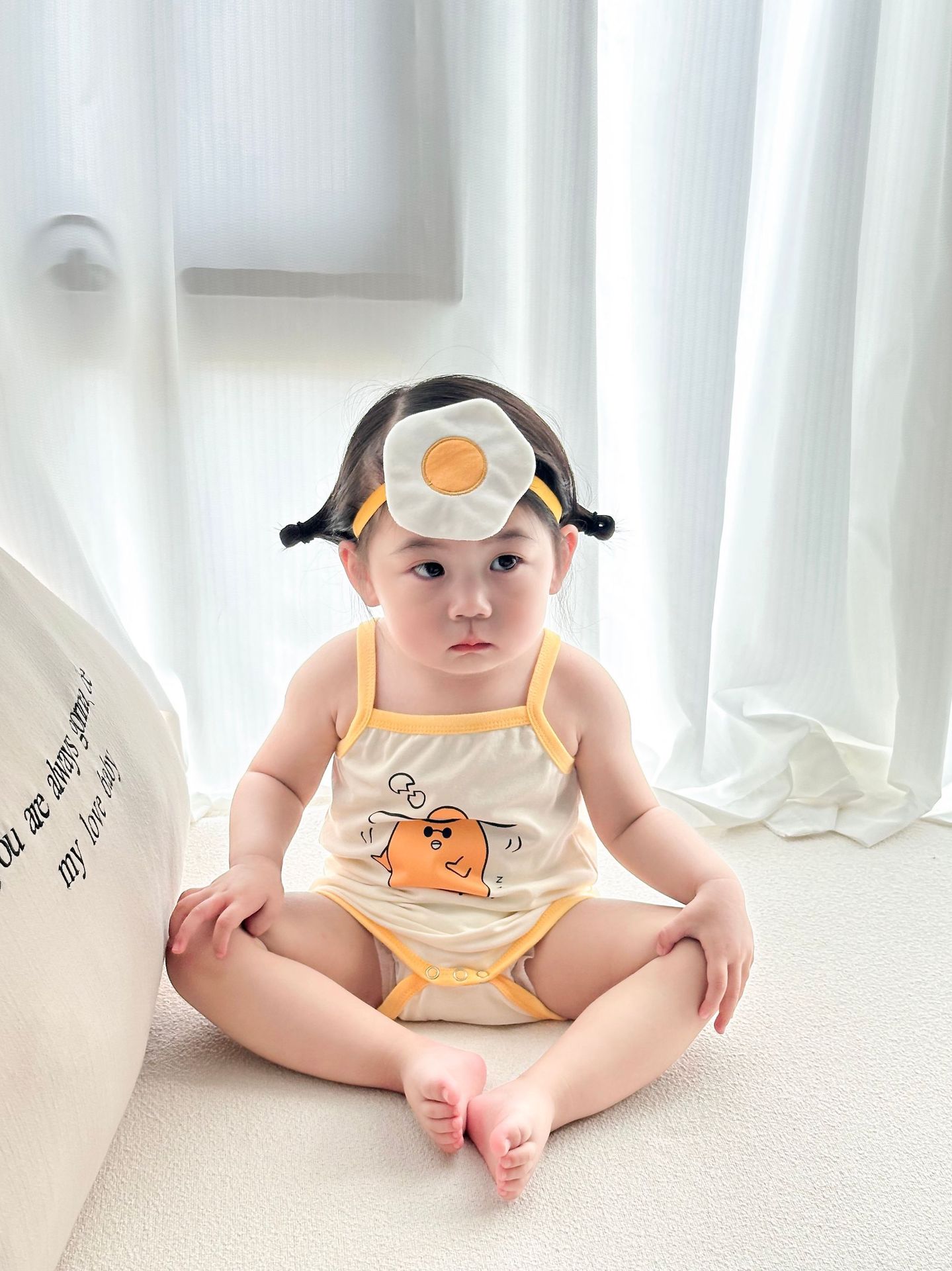 62414LS-Summer Korean egg-shaped suspender romper + headscarf