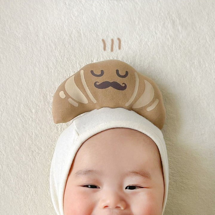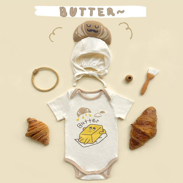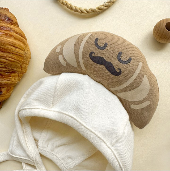 70109LS-Summer Korean style croissant print short-sleeved sweater + hat