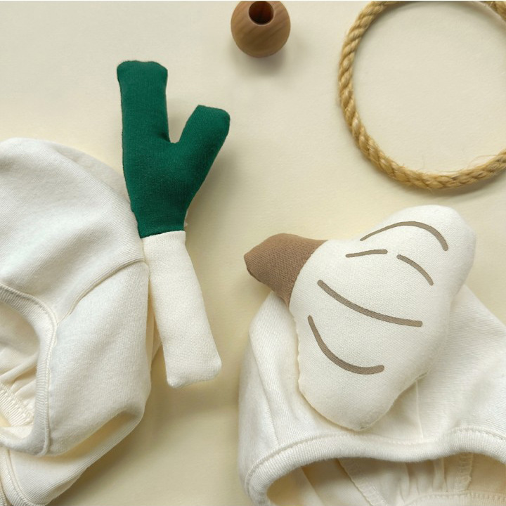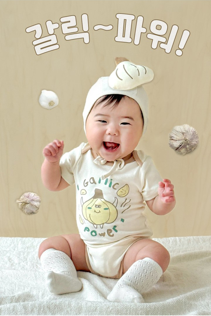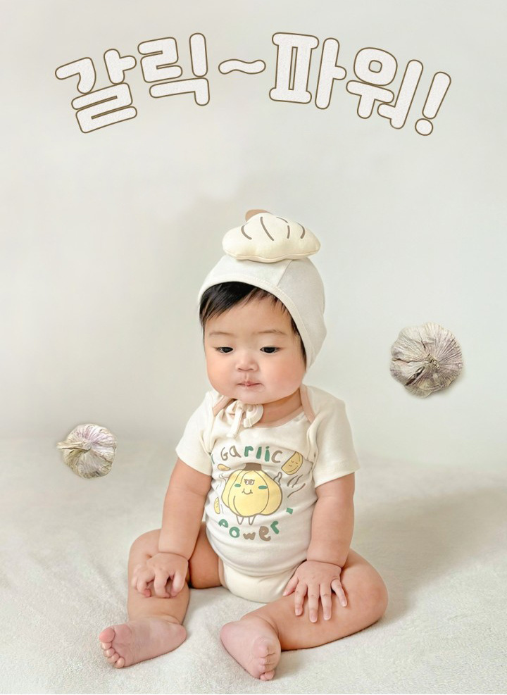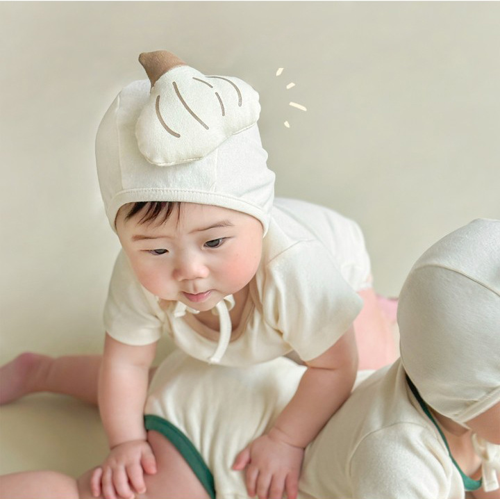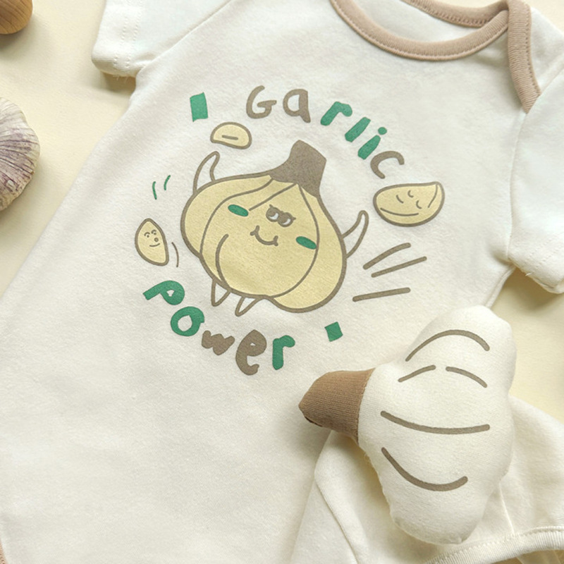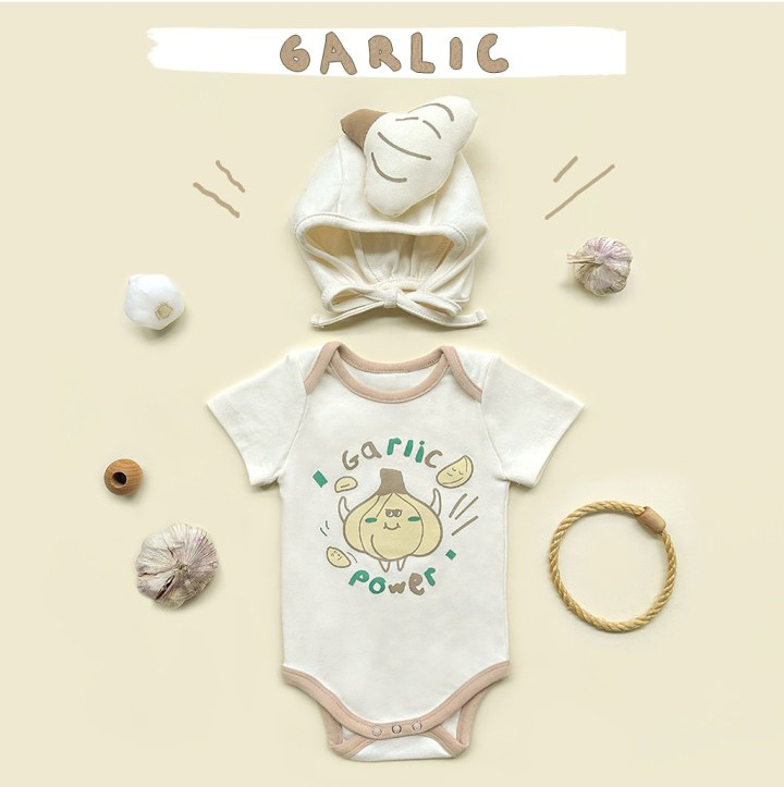 70110LS-Summer Korean Garlic Print Short Sleeve Bodysuit + Hat