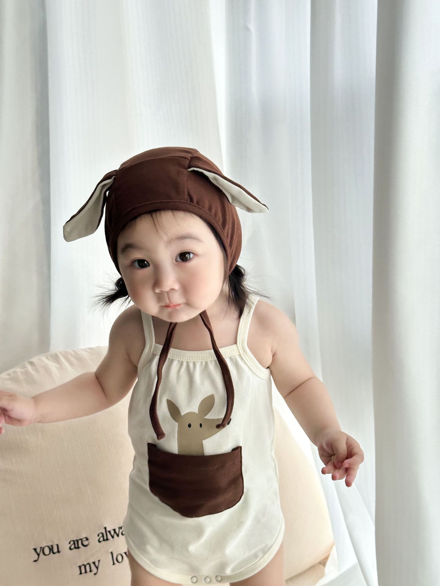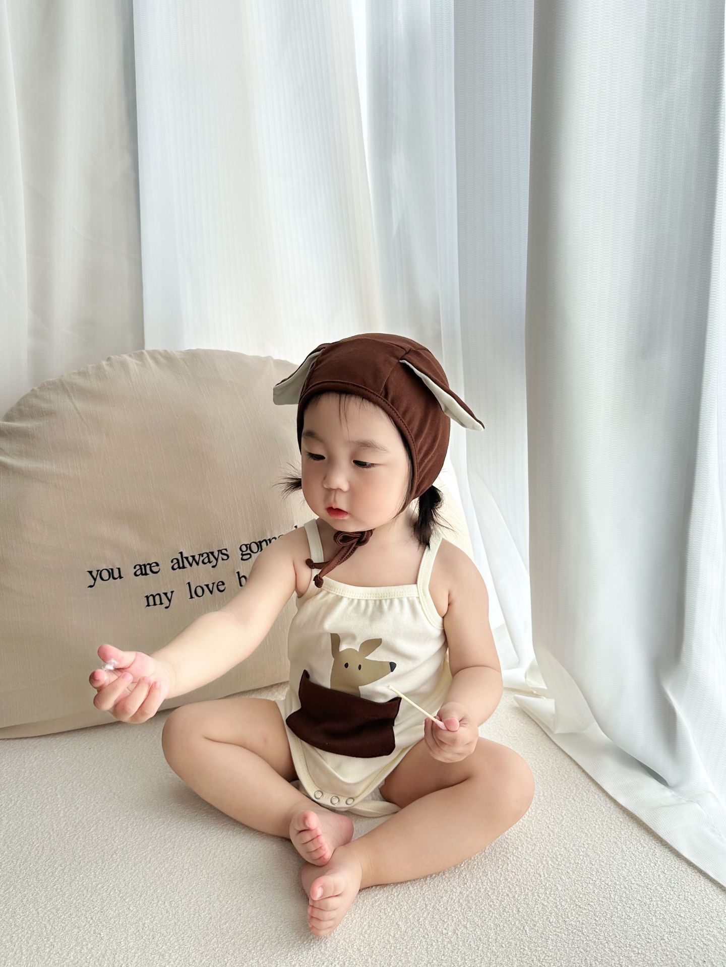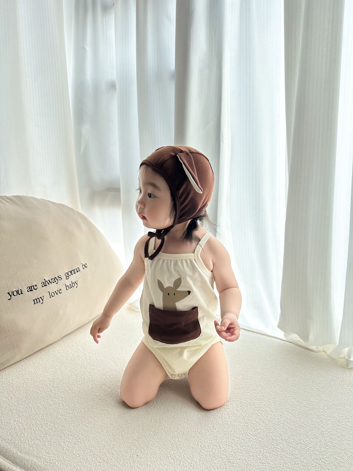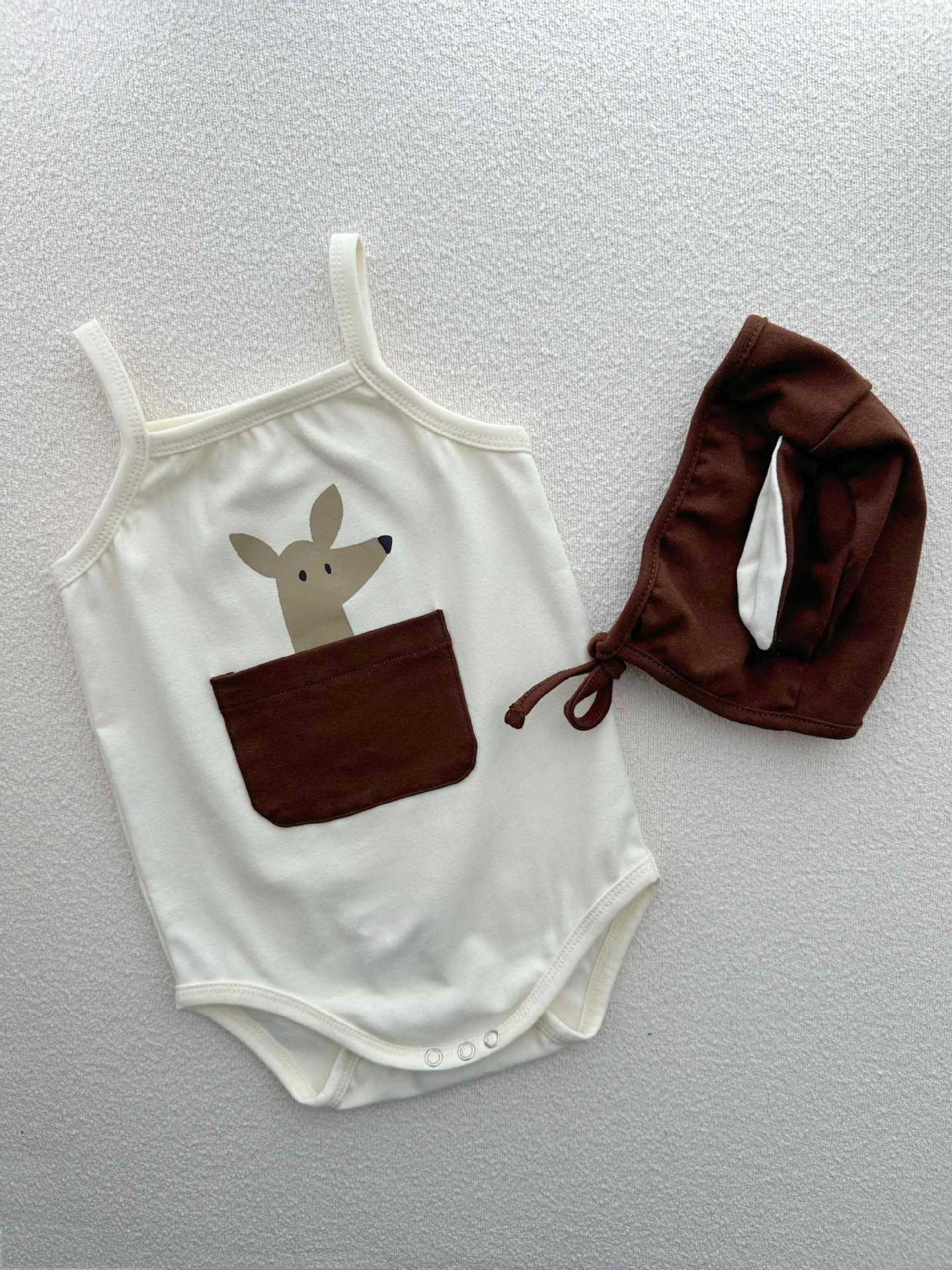 70801LS-Summer Korean Kangaroo Printed Bodysuit + Hat
