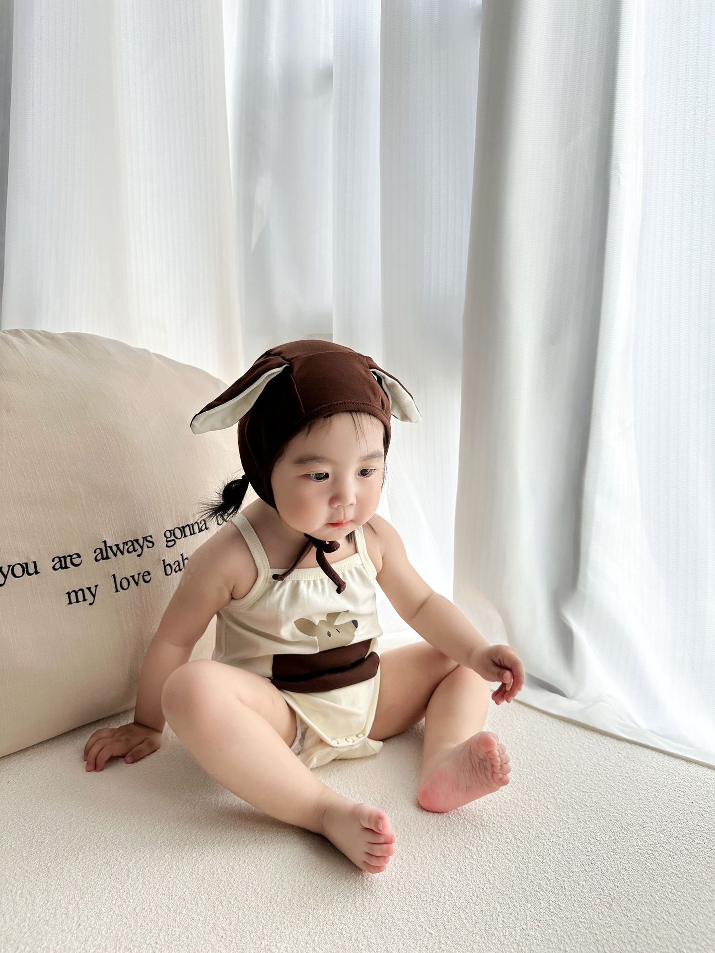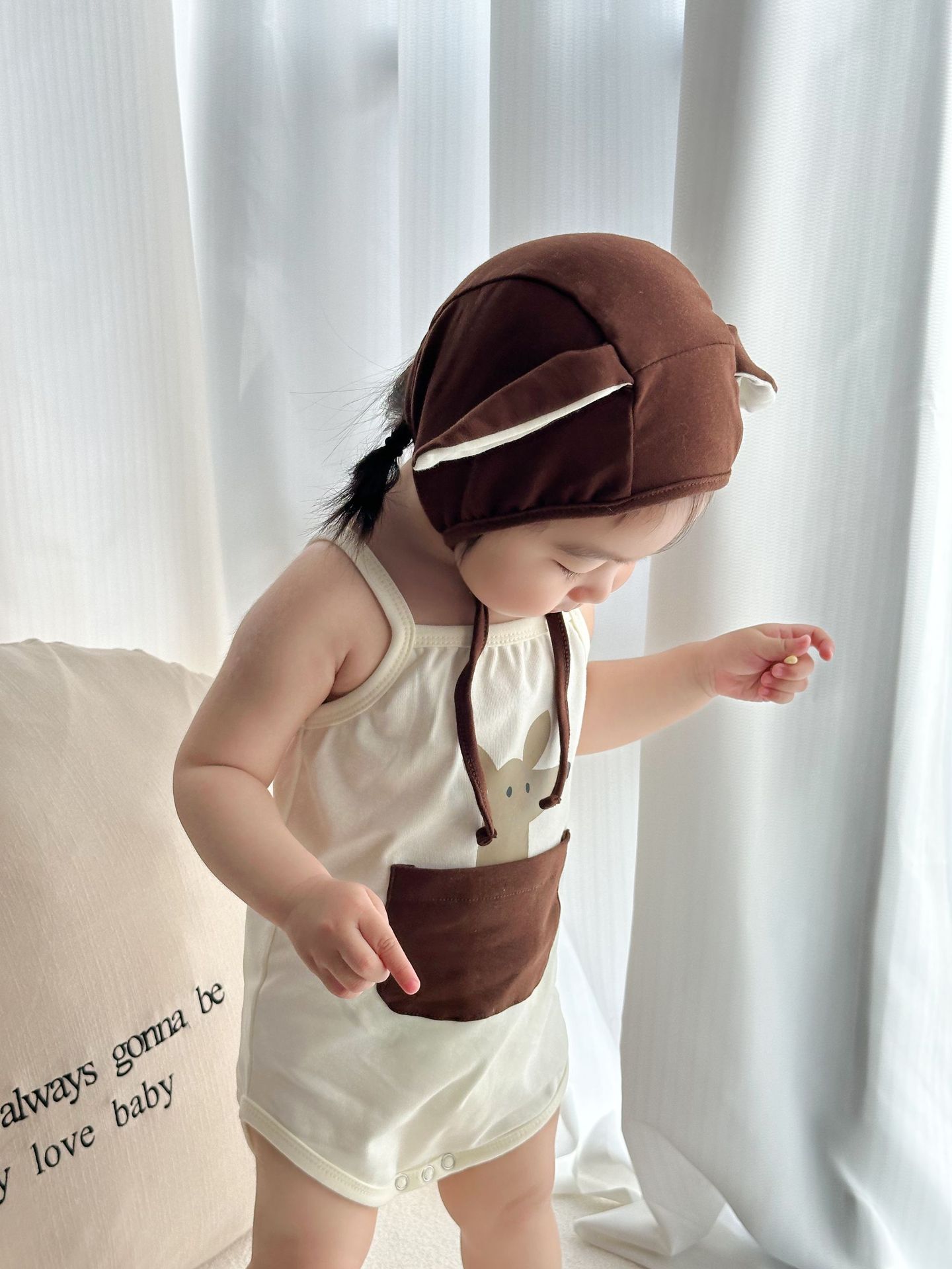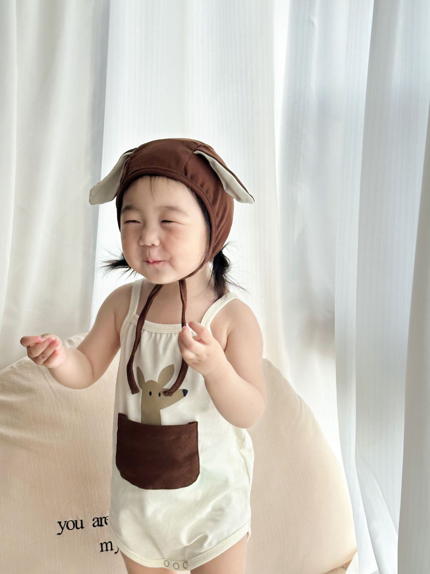 70801LS-Summer Korean Kangaroo Printed Bodysuit + Hat