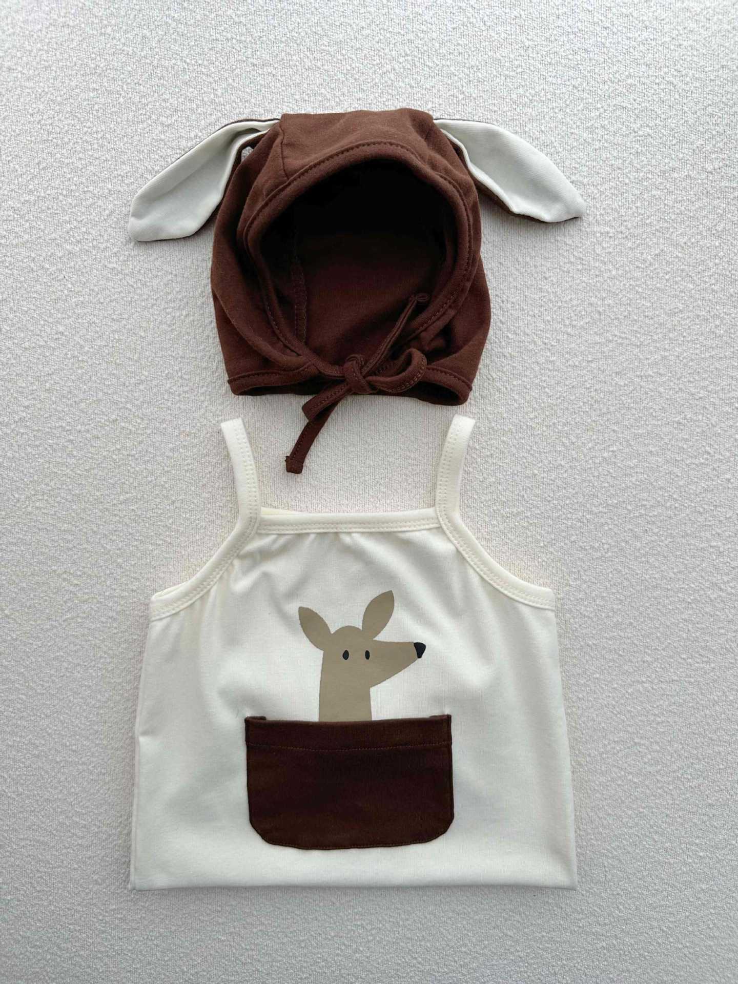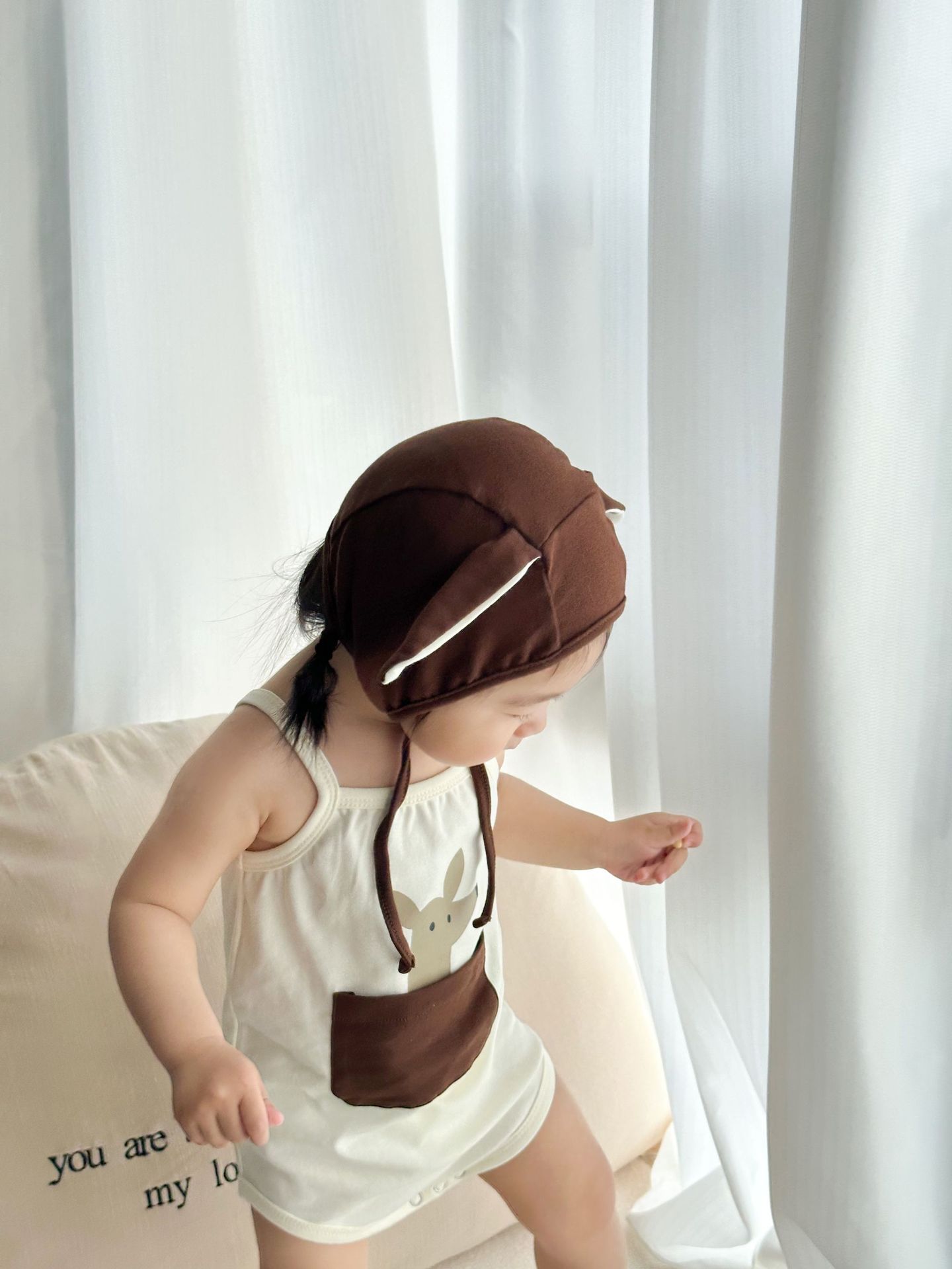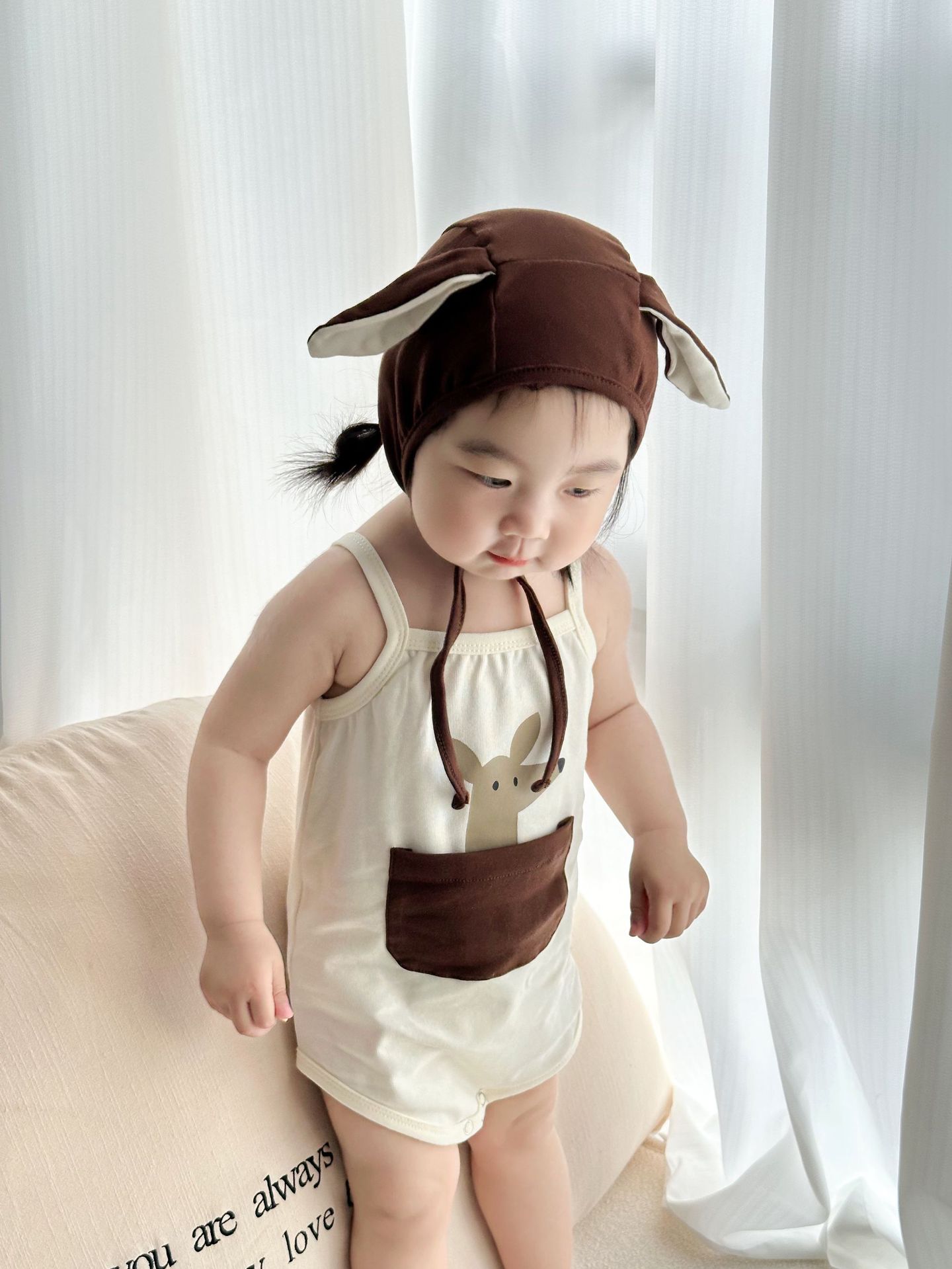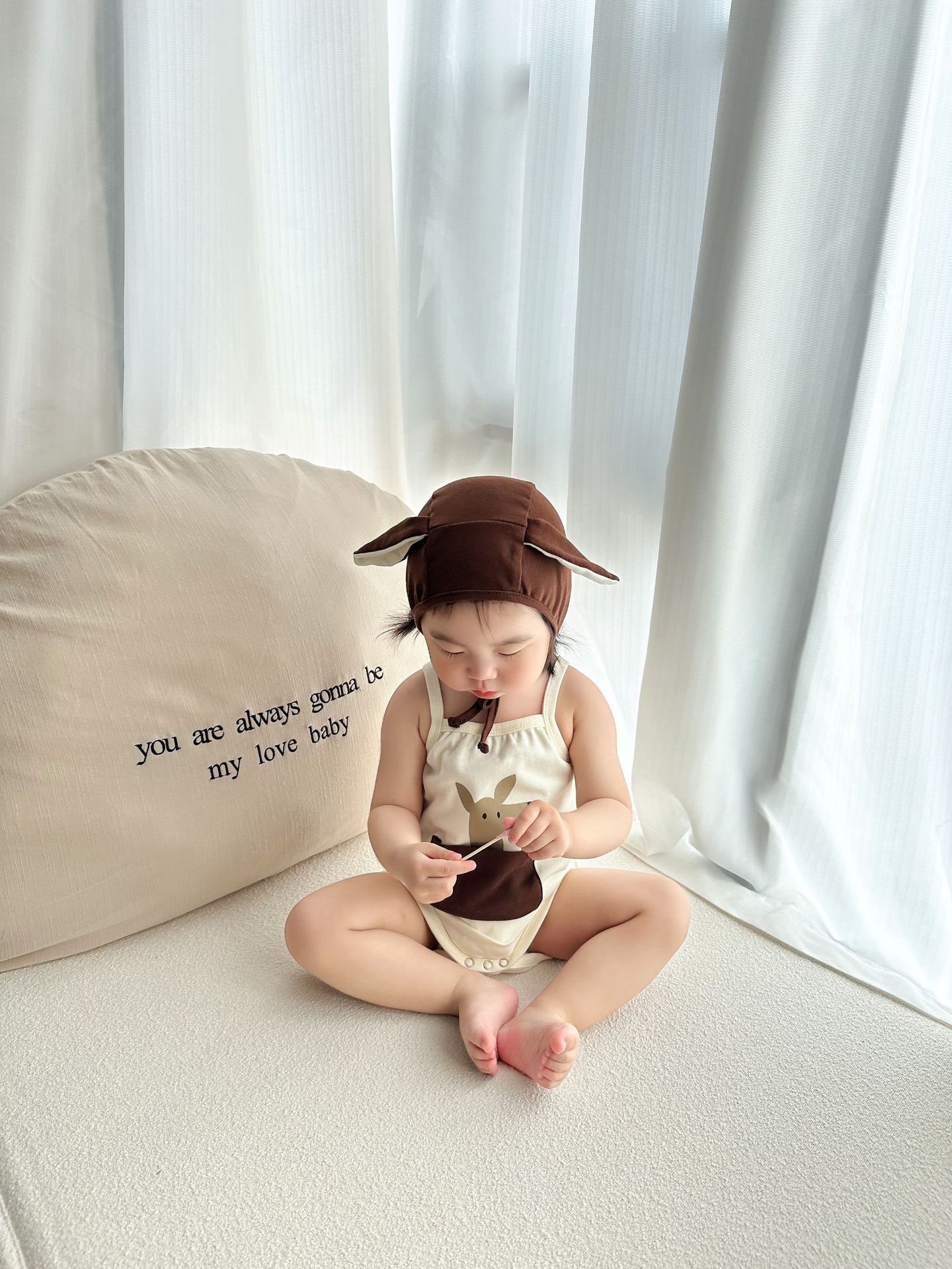 70801LS-Summer Korean Kangaroo Printed Bodysuit + Hat