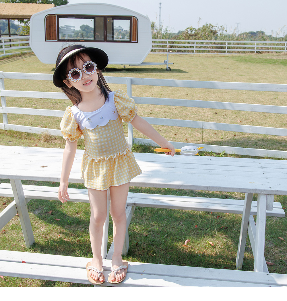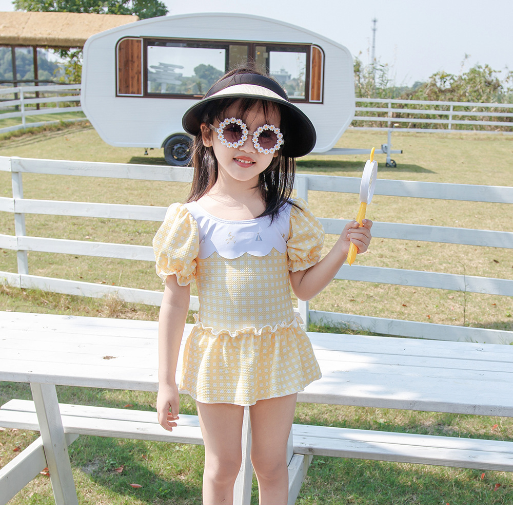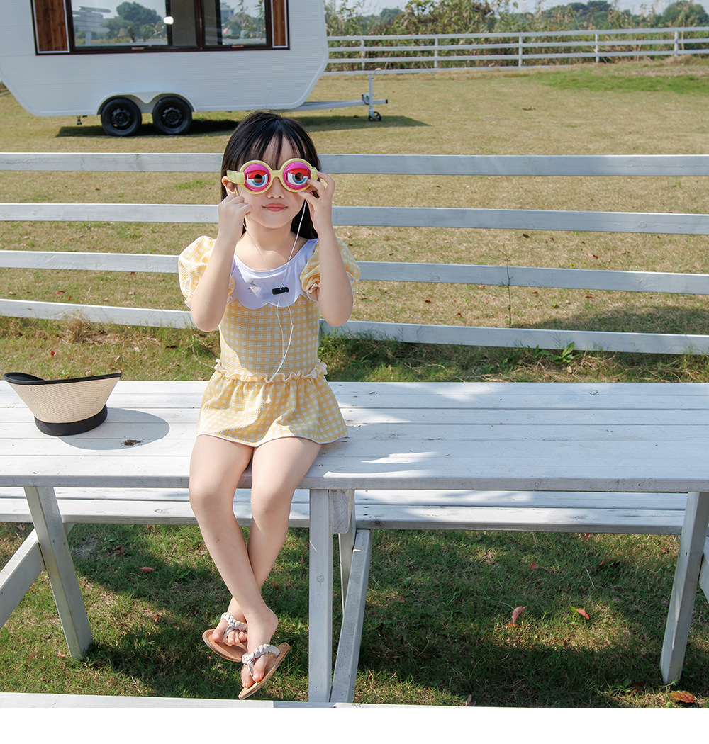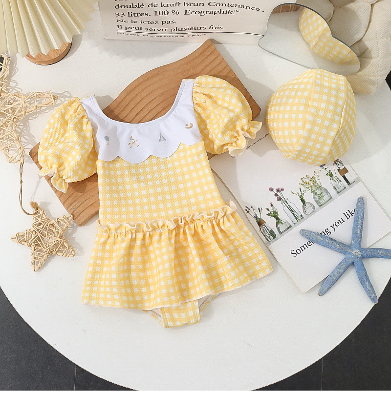 Yellow plaid (with swimming cap) / XL=110