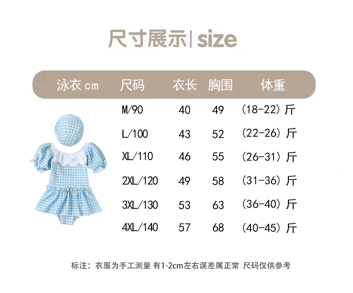 Blue plaid (with swimming cap) / 4XL=140