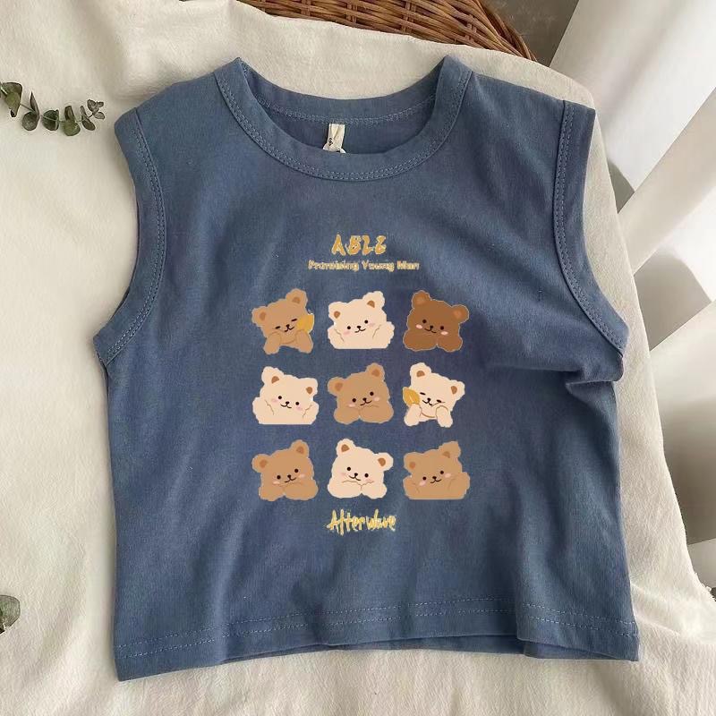 71405SE-夏季純棉兒童無袖卡通印花上衣