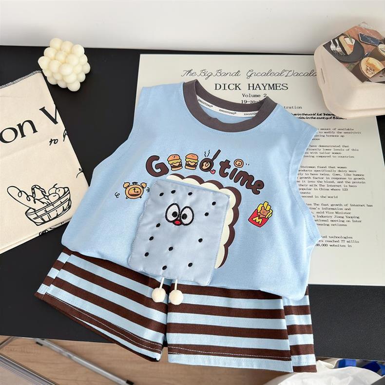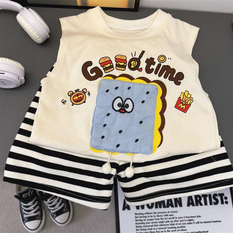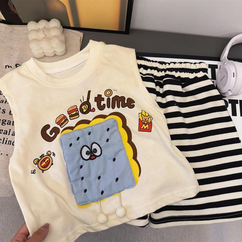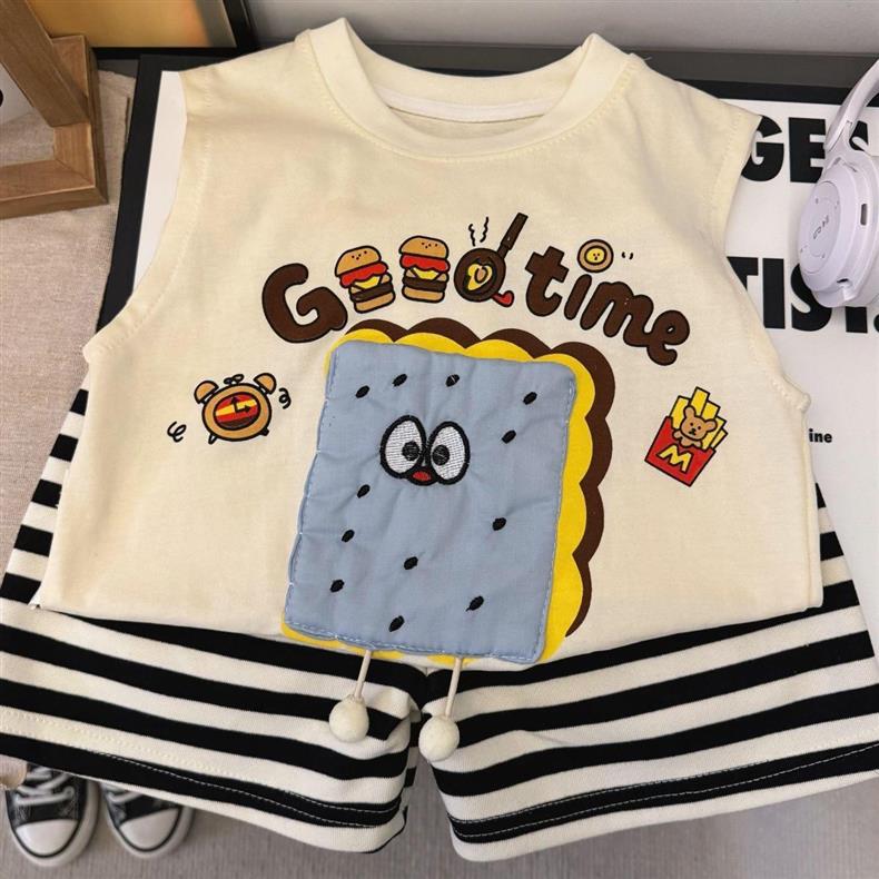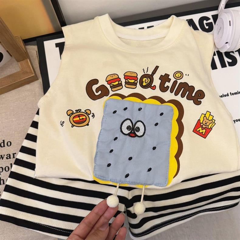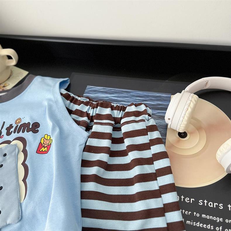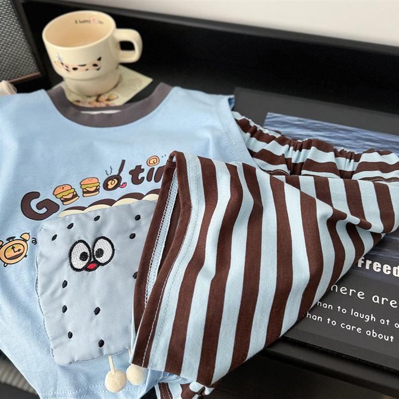 71419TG-夏季純棉韓版吐司上衣+條紋褲套裝