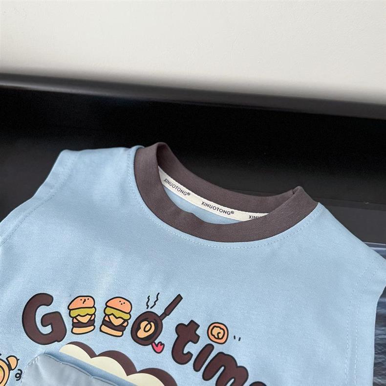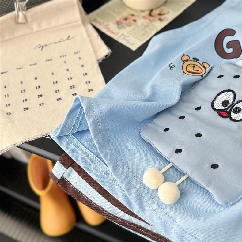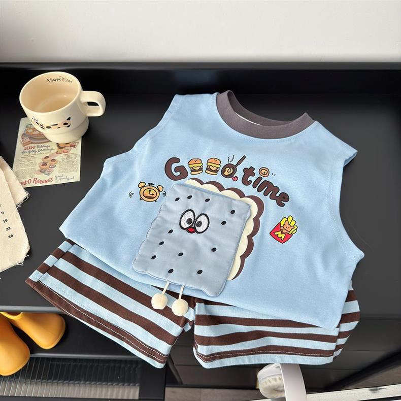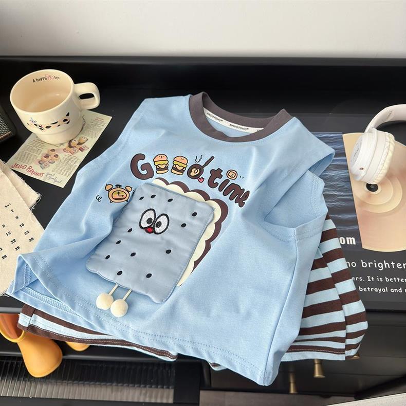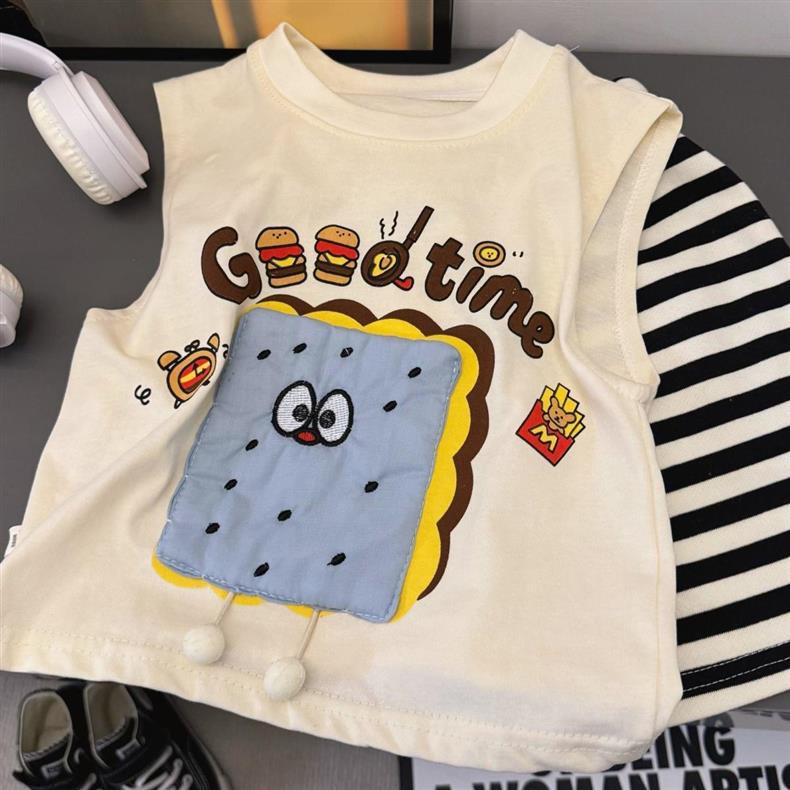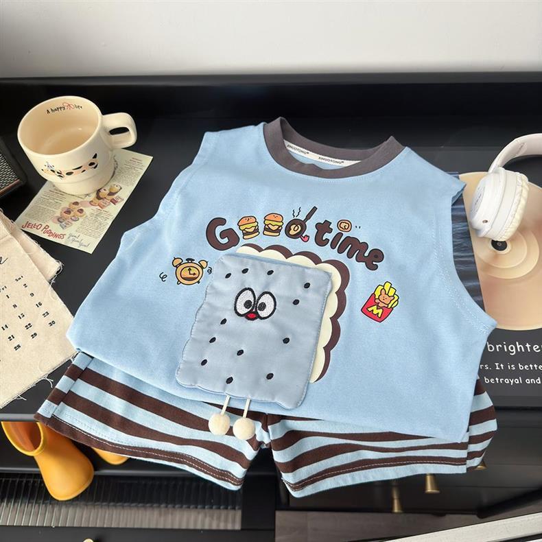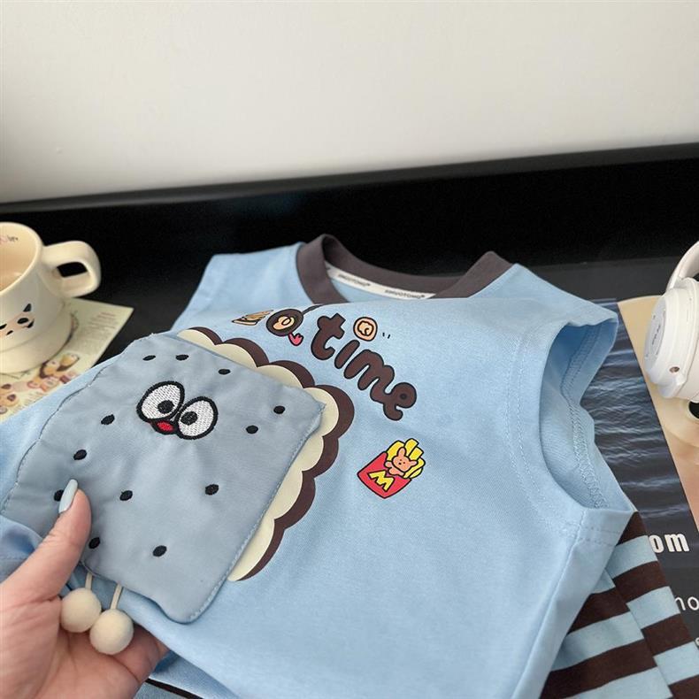 71419TG-夏季純棉韓版吐司上衣+條紋褲套裝