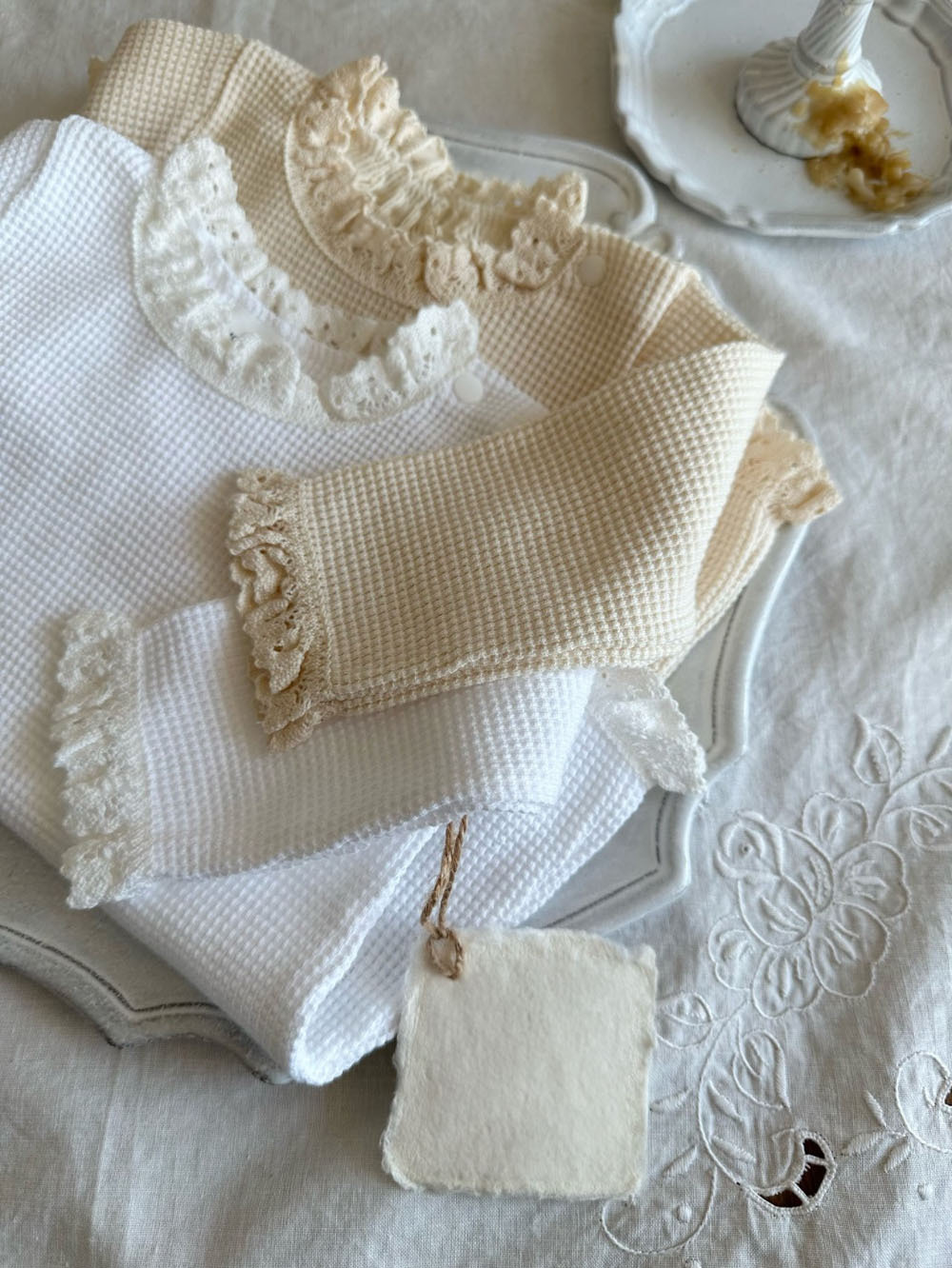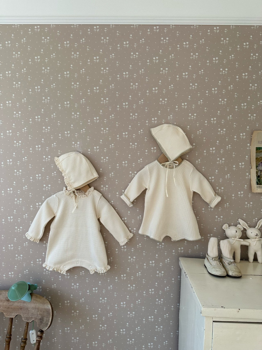 72202LS-Spring and Autumn Korean Waffle Lace Long Sleeve Climbing Suit + Hat
