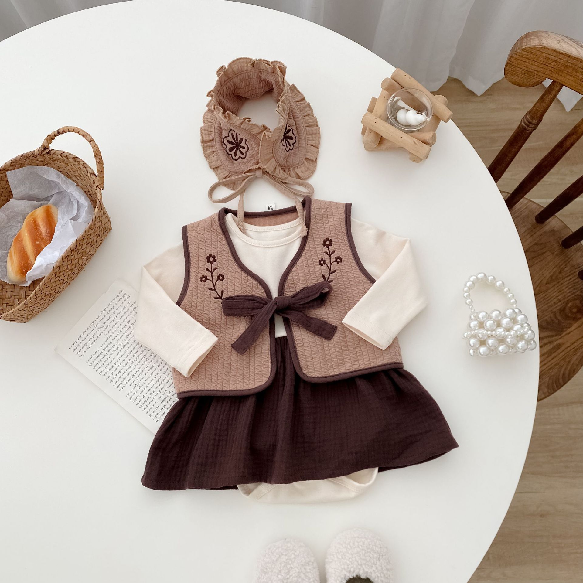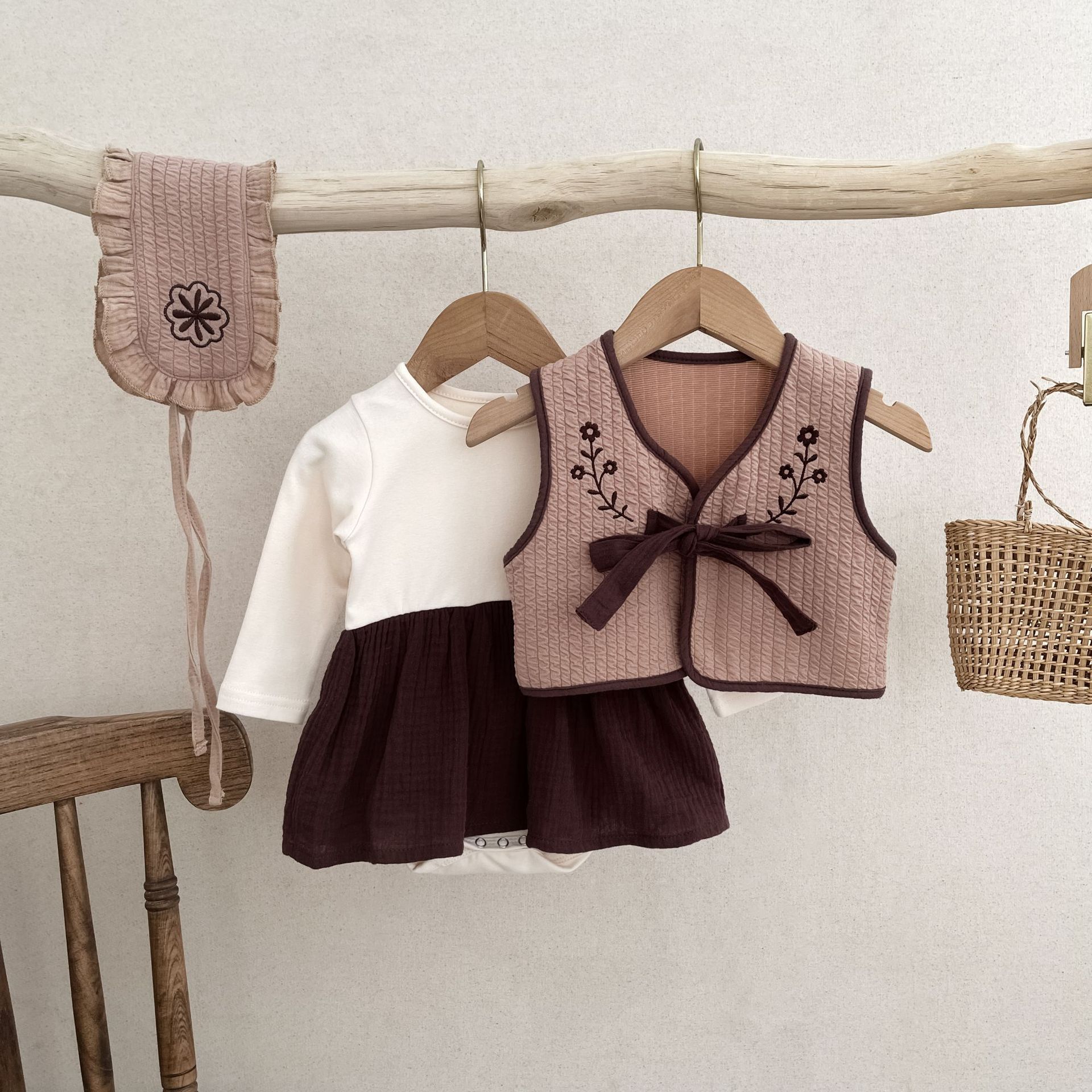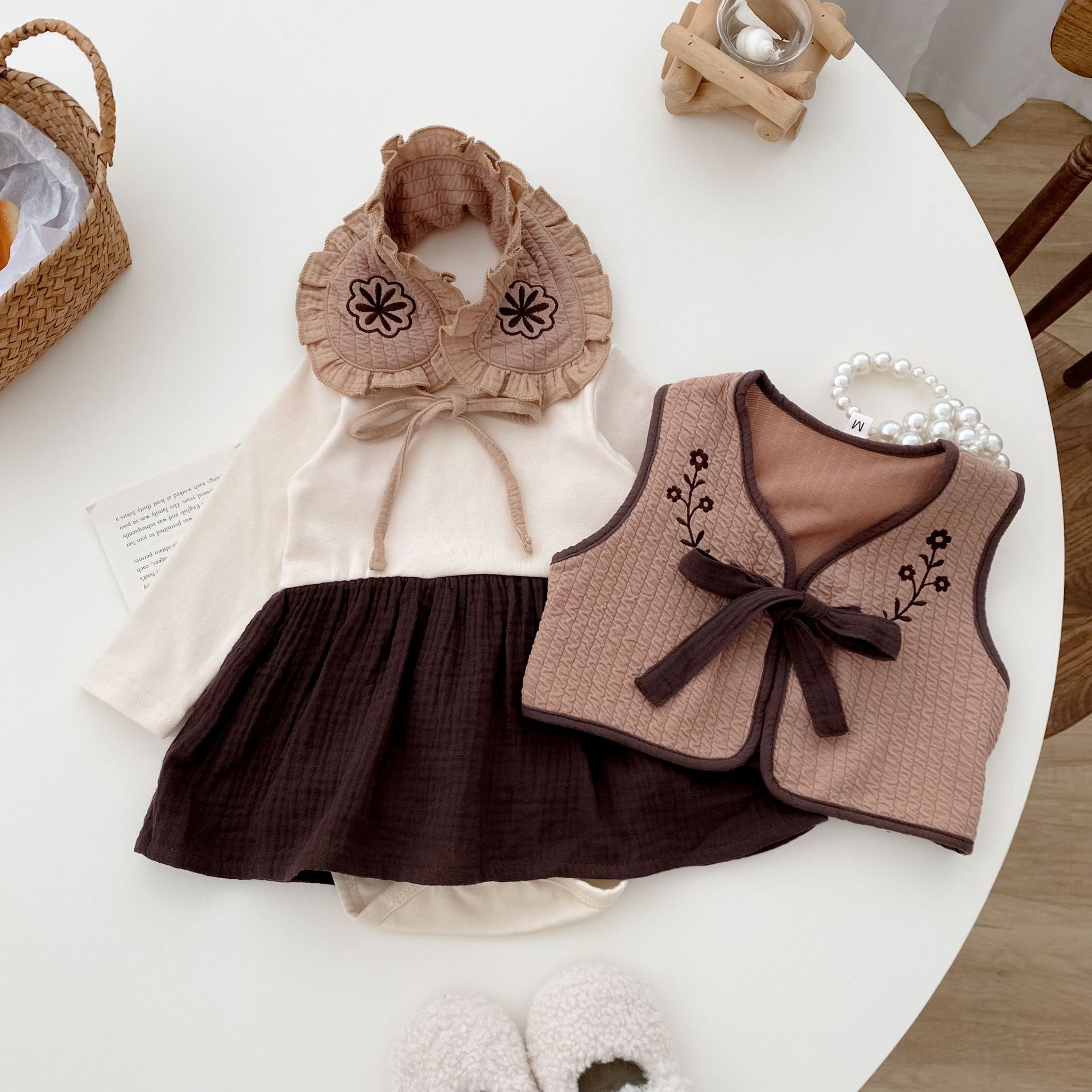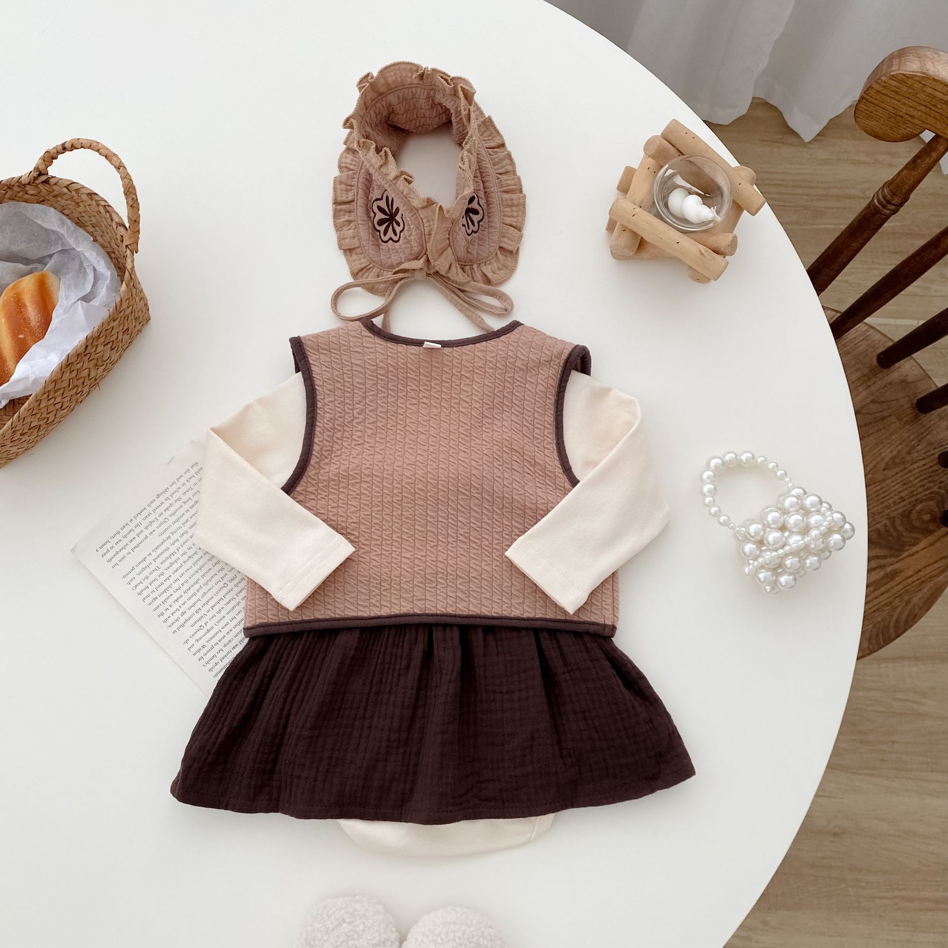72210TG-Autumn Korean style bodysuit + vest + hairband three-piece set