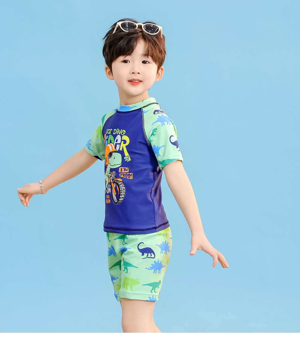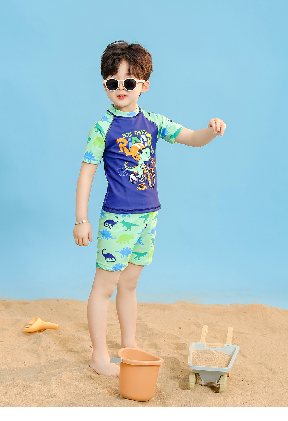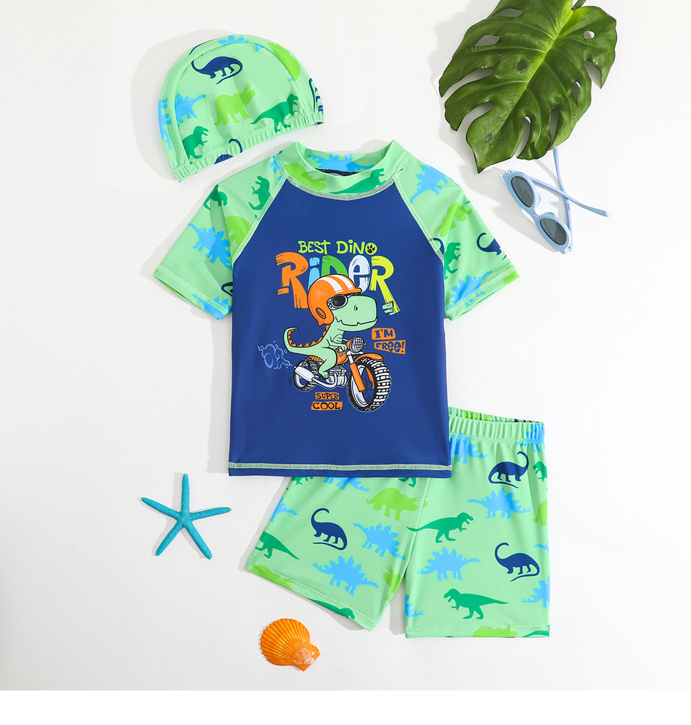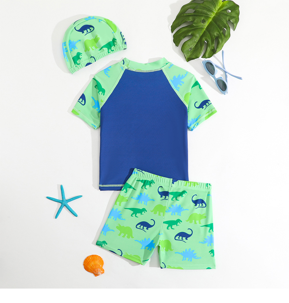7562TG-Quick-drying children's dinosaur swimsuit suit + swimming cap
