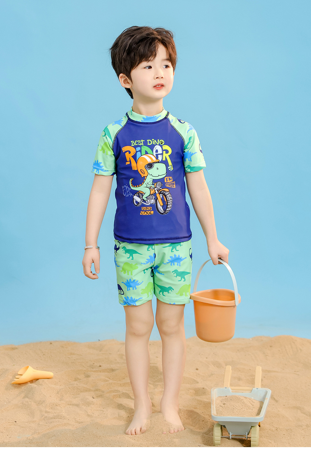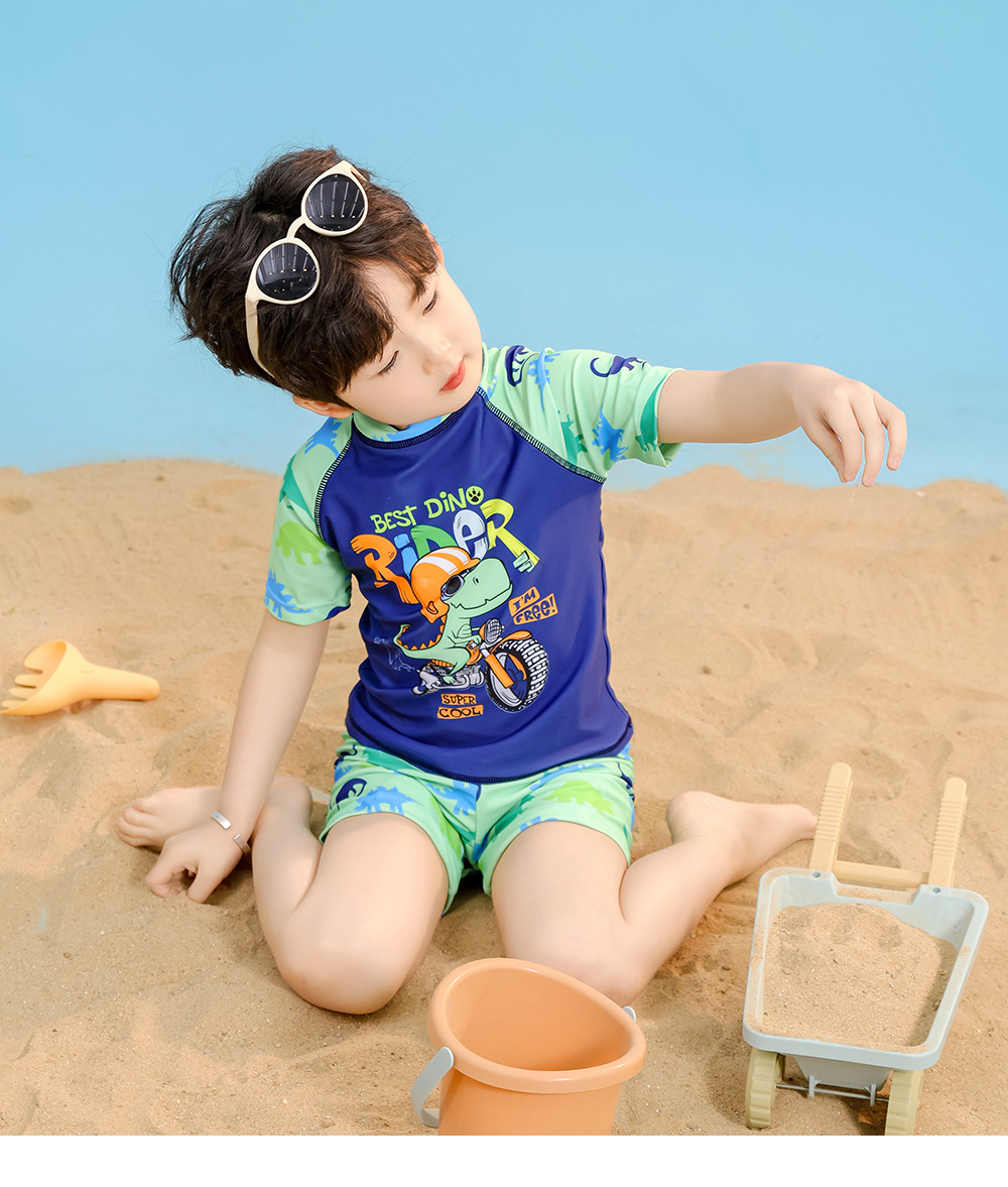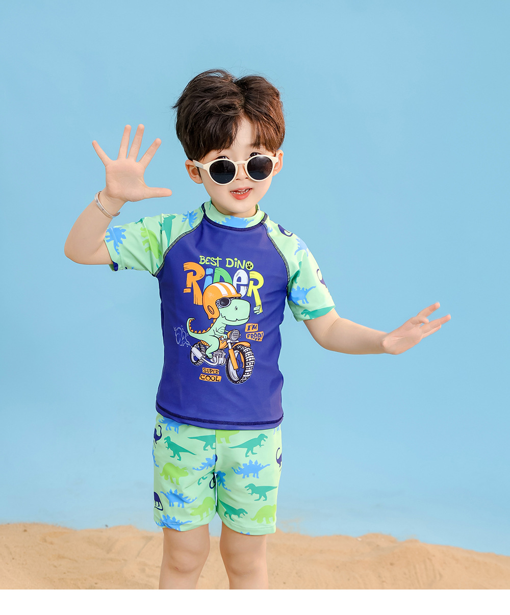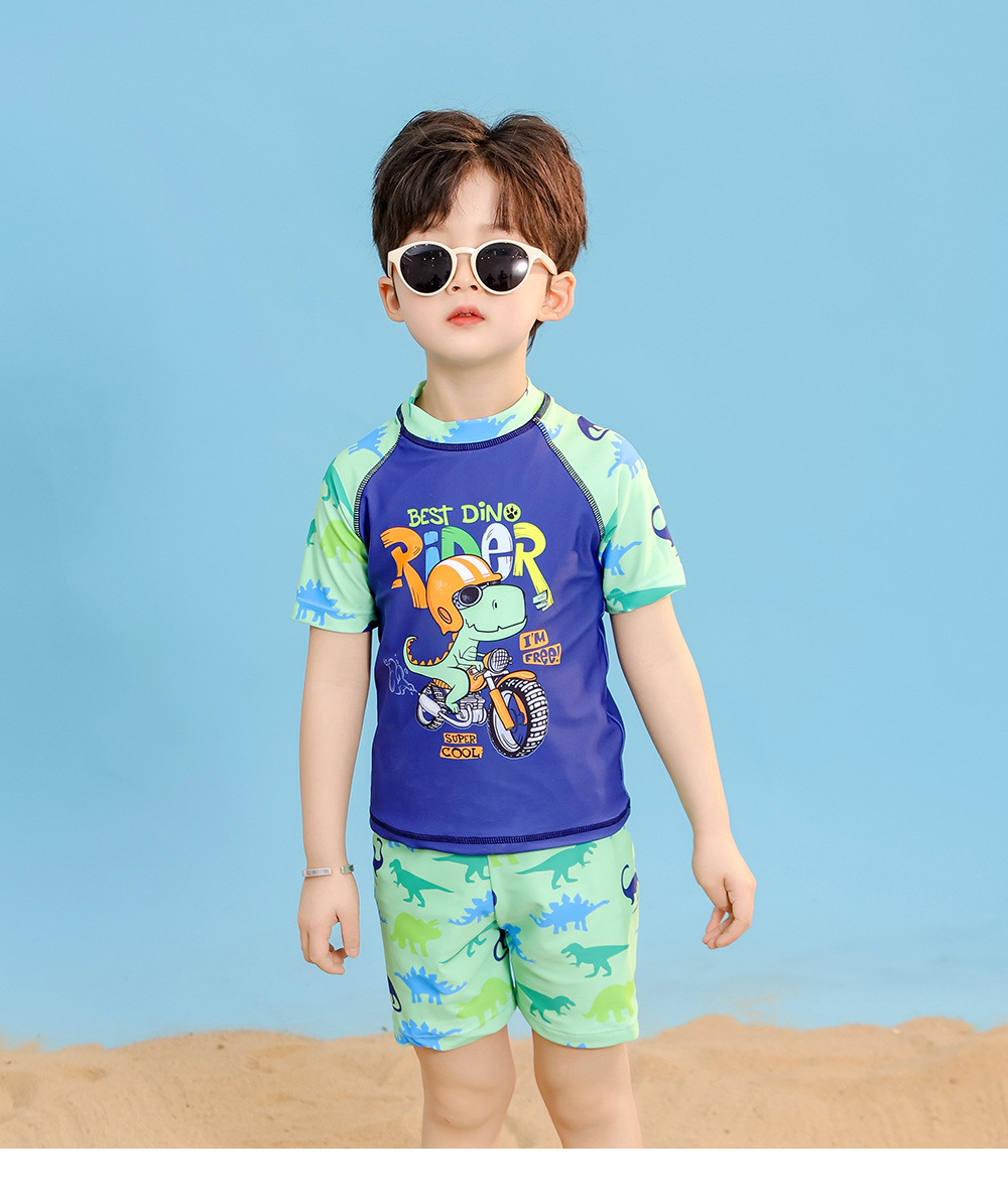 7562TG-Quick-drying children's dinosaur swimsuit suit + swimming cap