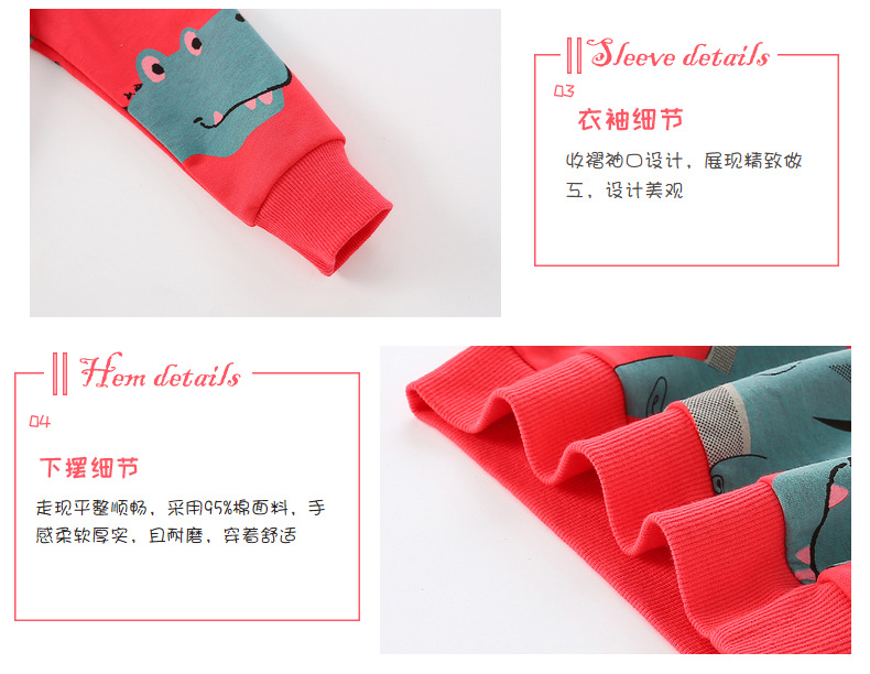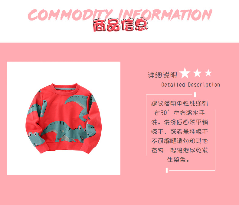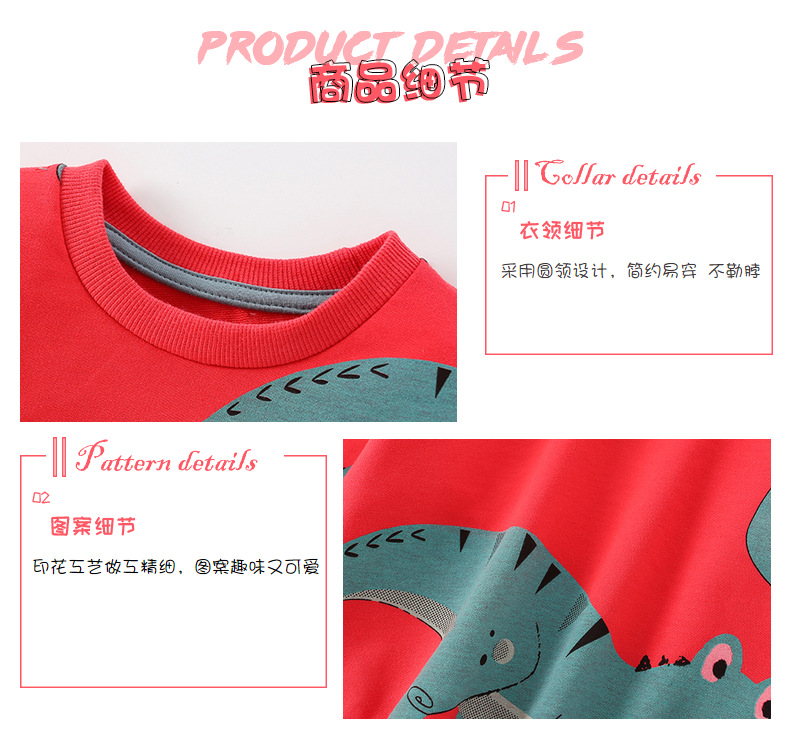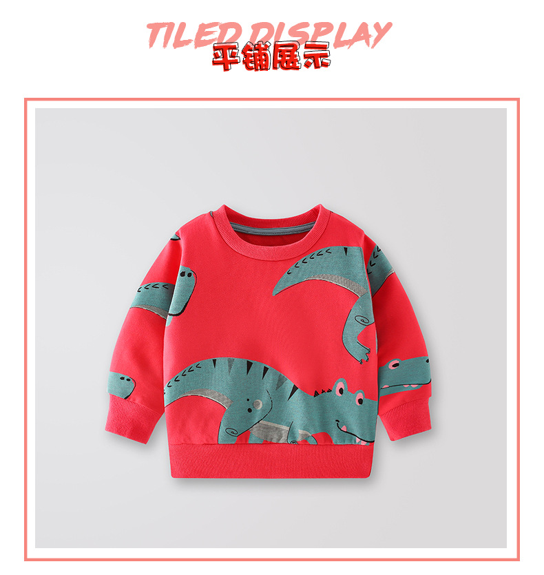 7681SE-malwee autumn handsome little boy round neck dinosaur long-sleeved top
