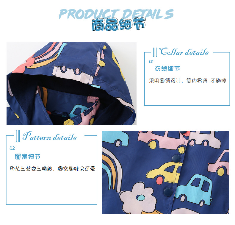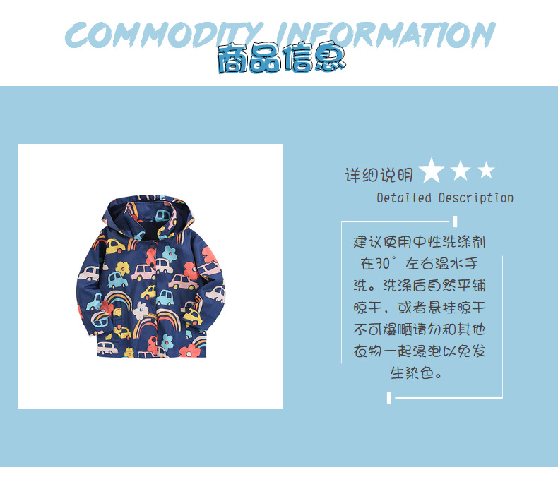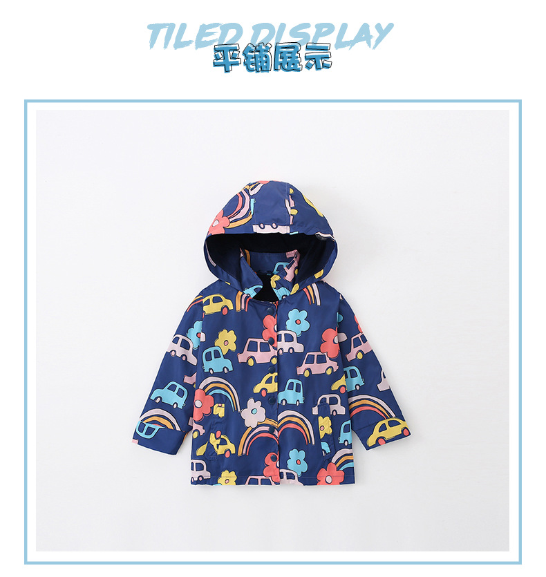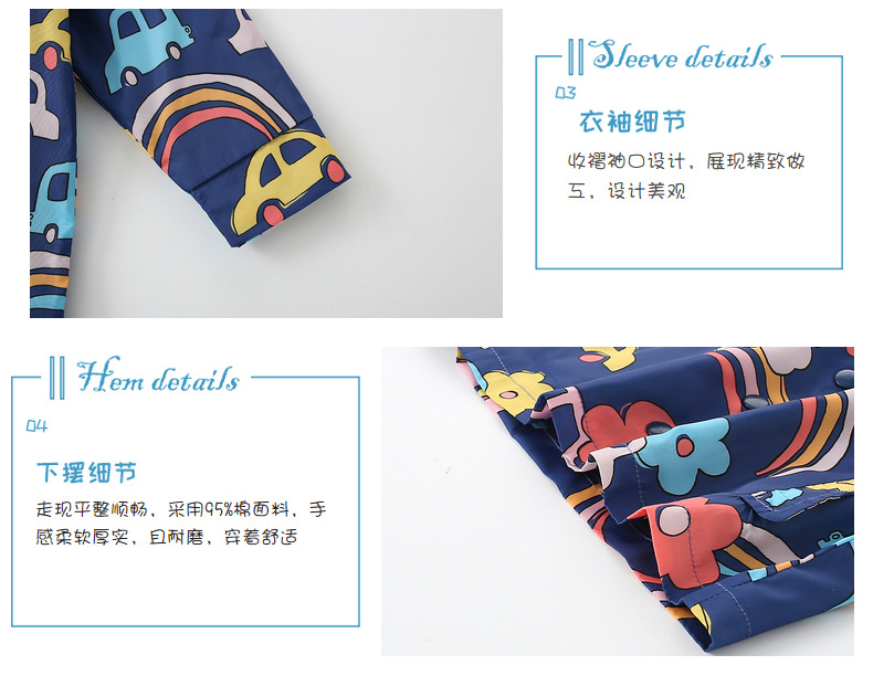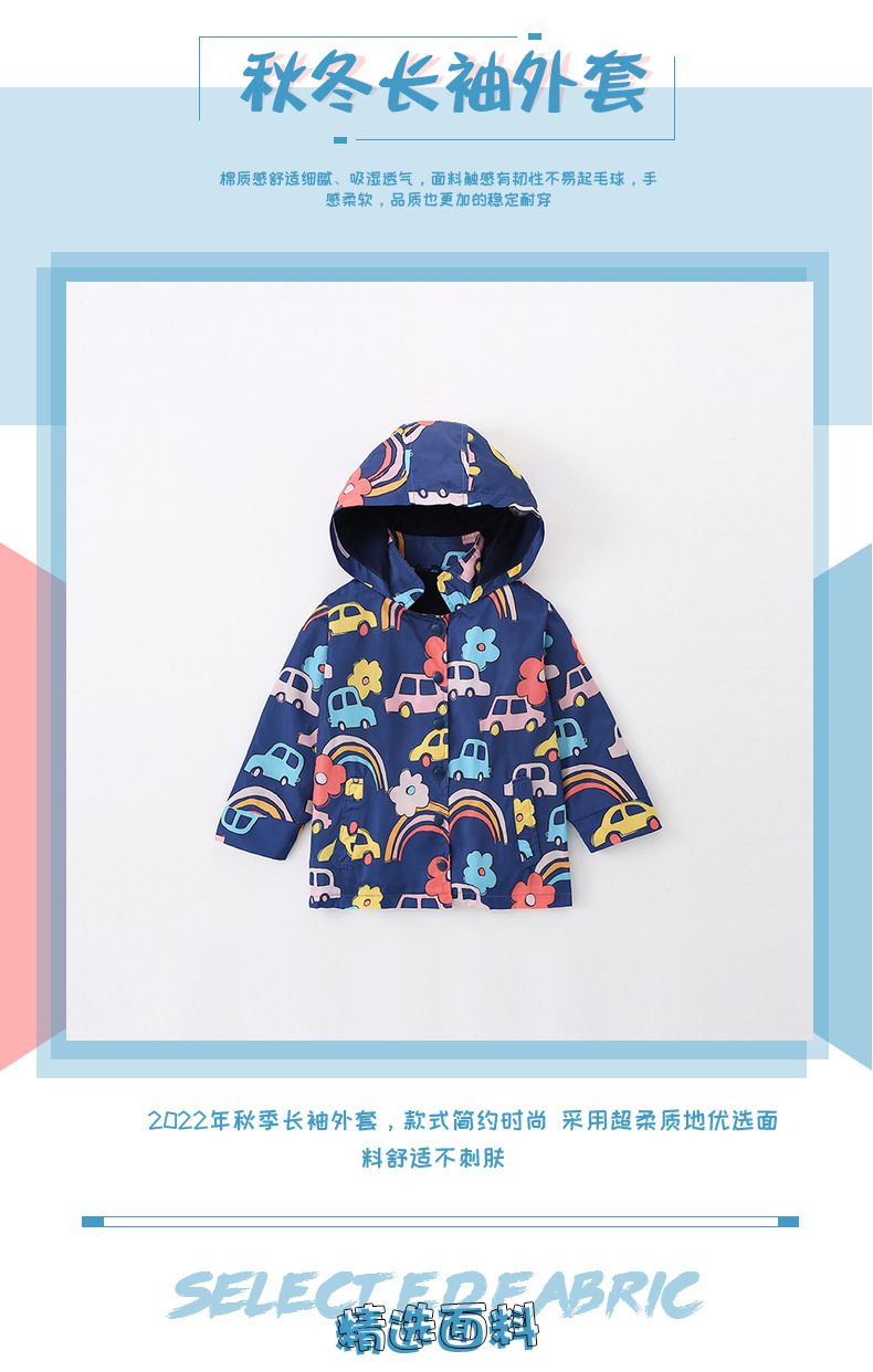 8019SE-malwee autumn clothing European and American small and medium-sized children's car print hooded zipper long-sleeved jacket