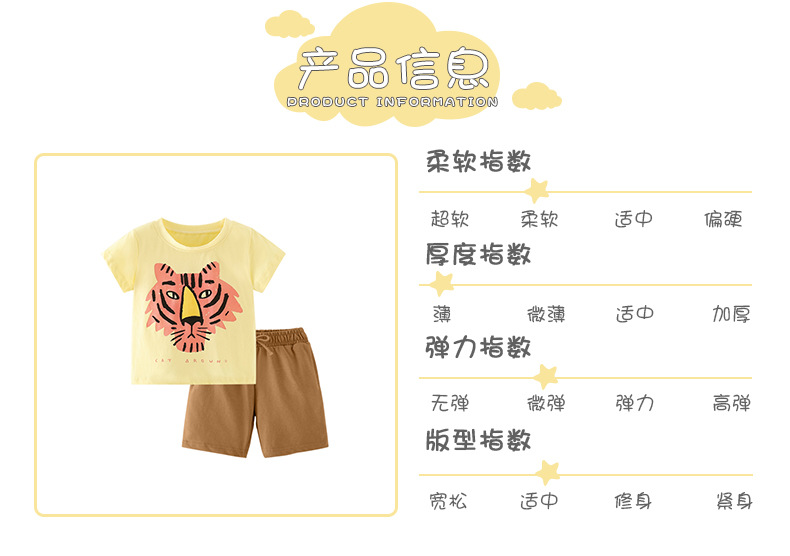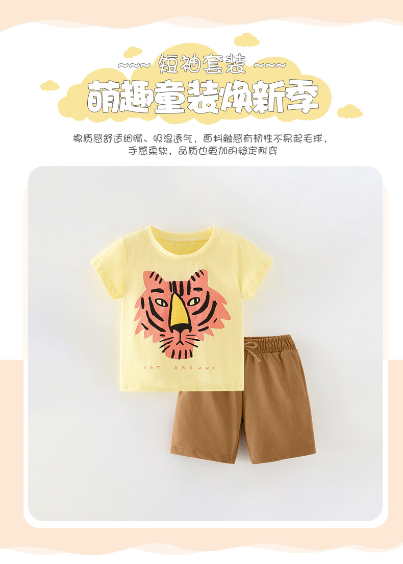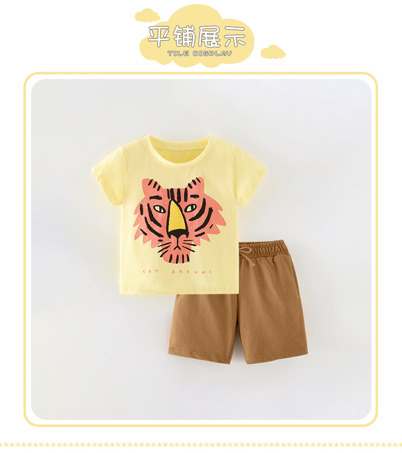 81105TG-malwee summer European and American children's round neck tiger short-sleeved top + shorts two-piece set