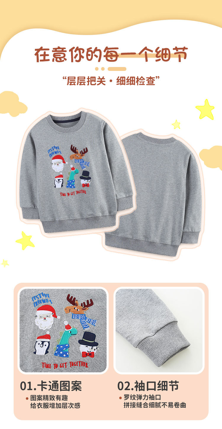 8221SE-Autumn cartoon Christmas embroidery round neck long-sleeved top