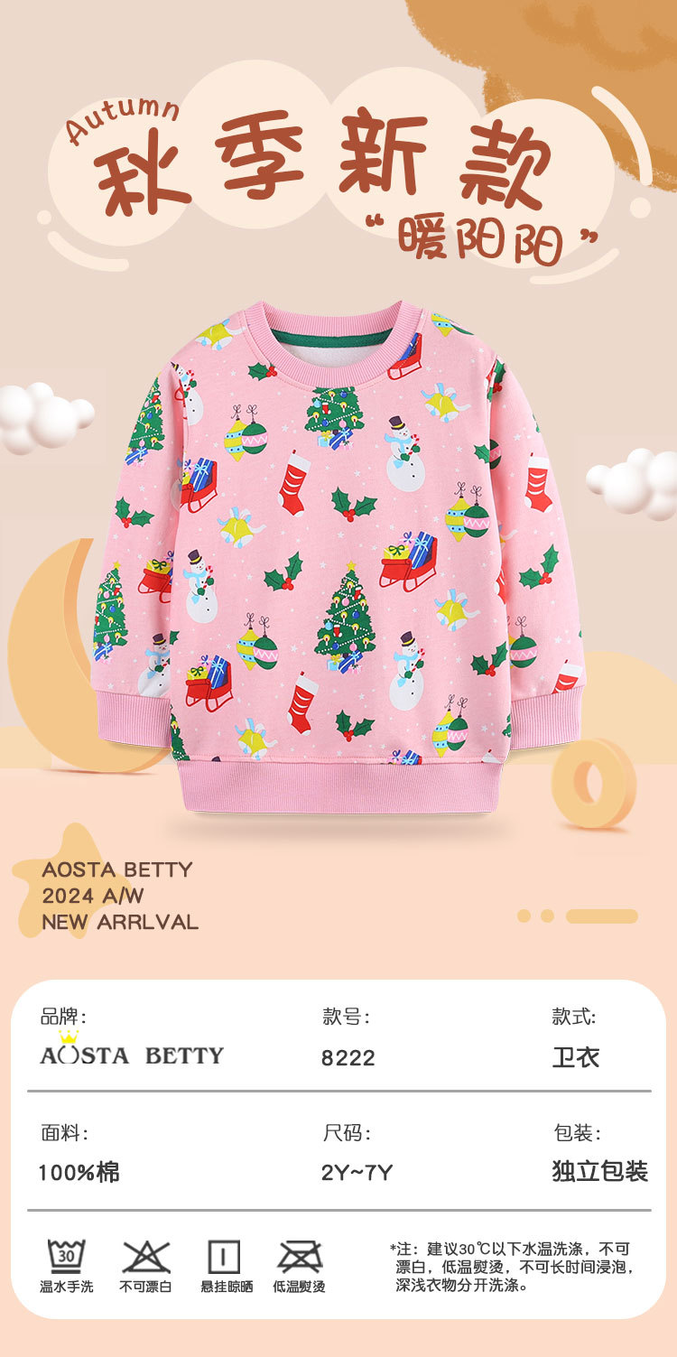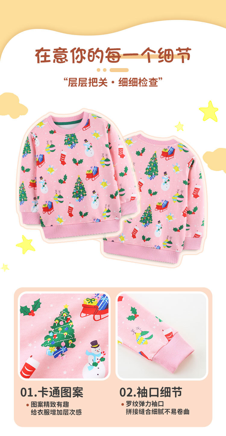 8222SE-Autumn Christmas round neck long sleeve pink top