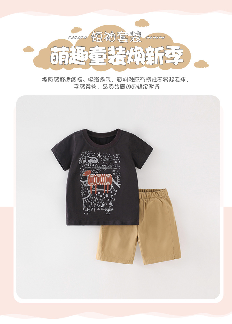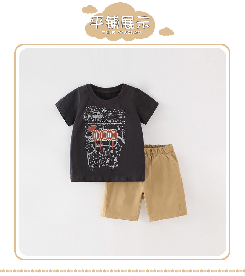 8342TG-malwee summer European and American children's round neck short-sleeved casual tops + shorts two-piece set