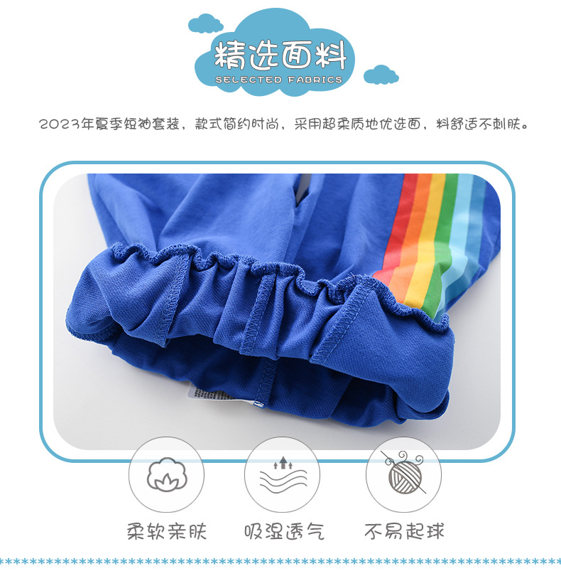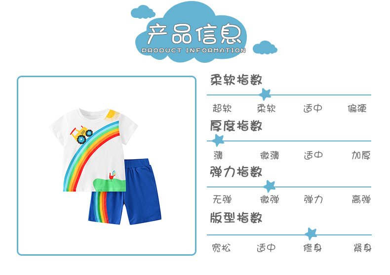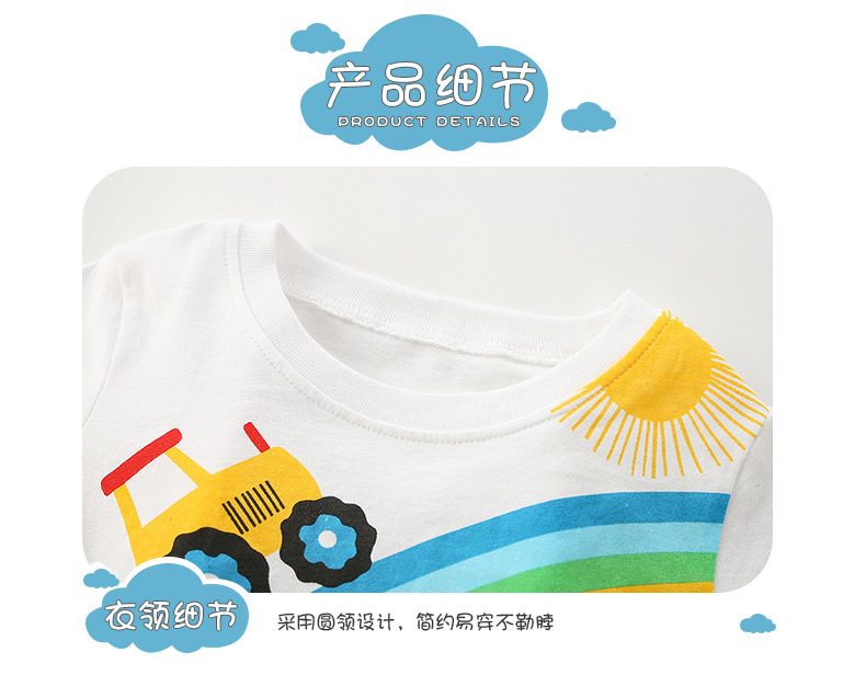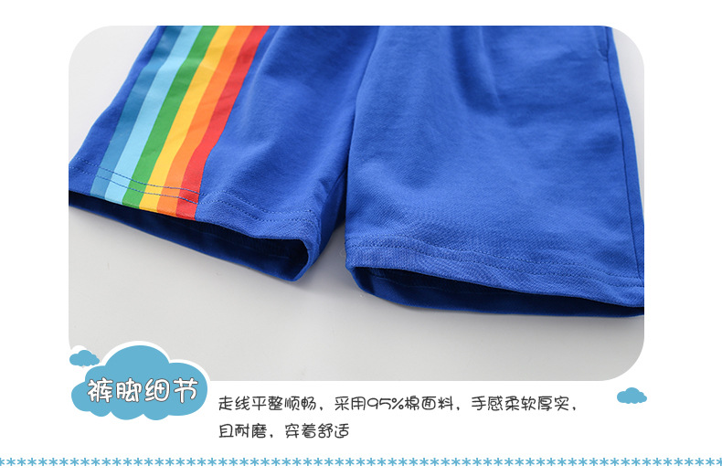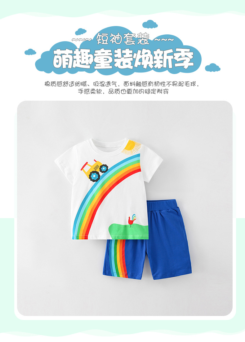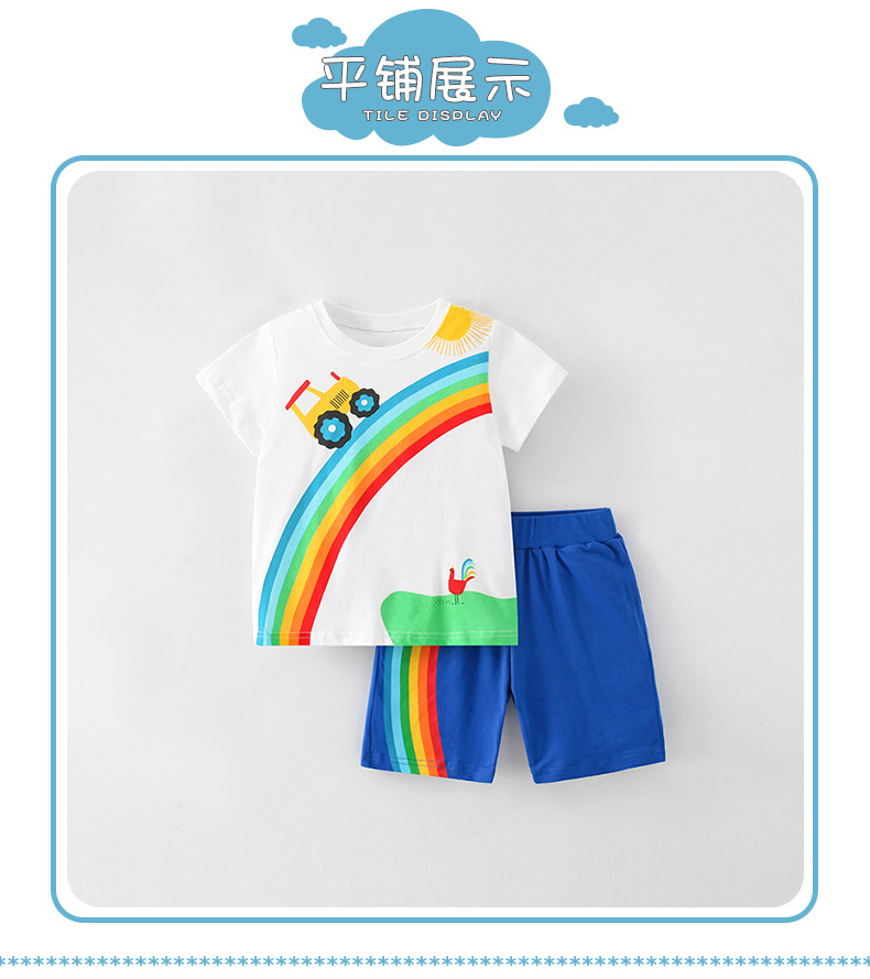8346TG-malwee summer clothes for children in Europe and America, rainbow car print elastic boy top + shorts two-piece set