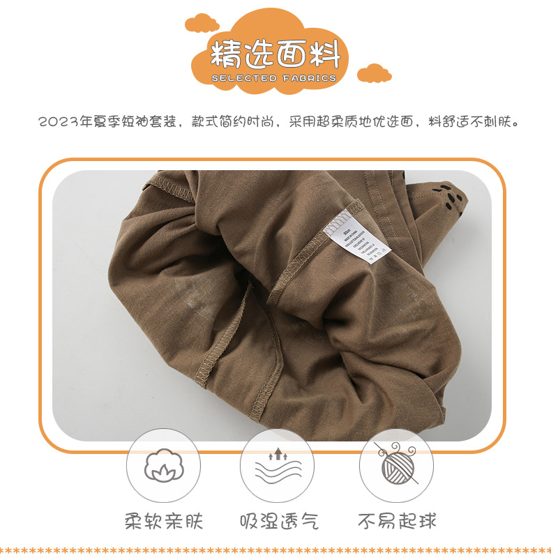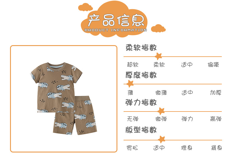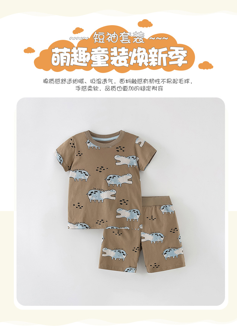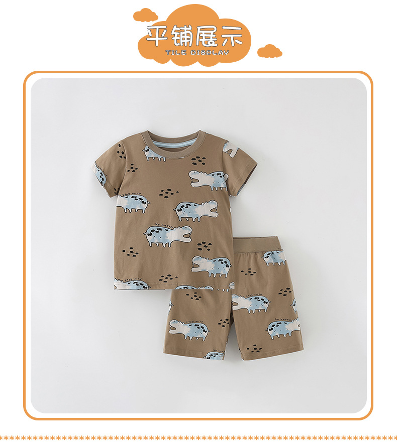 8378TG-malwee Summer European and American children's hippopotamus print short-sleeved top + elastic waist shorts two-piece set