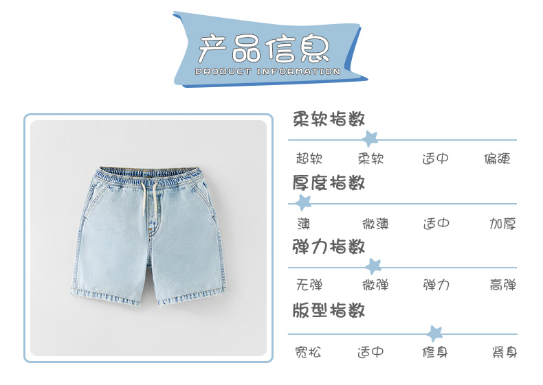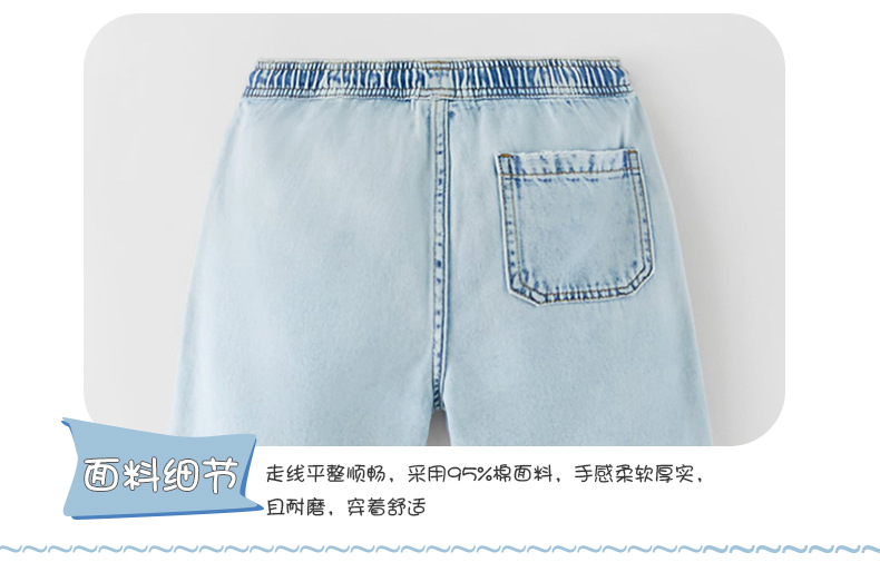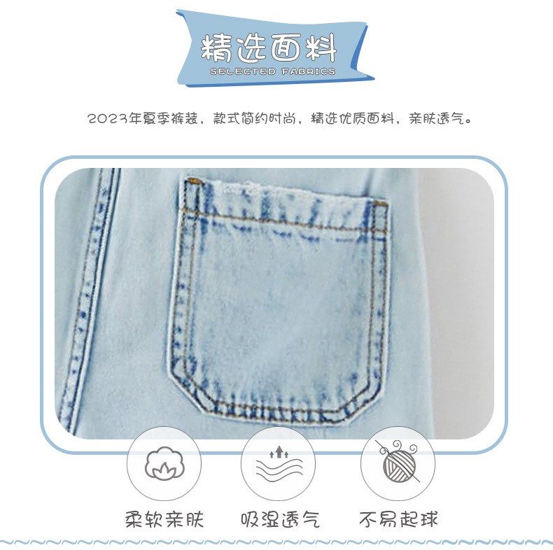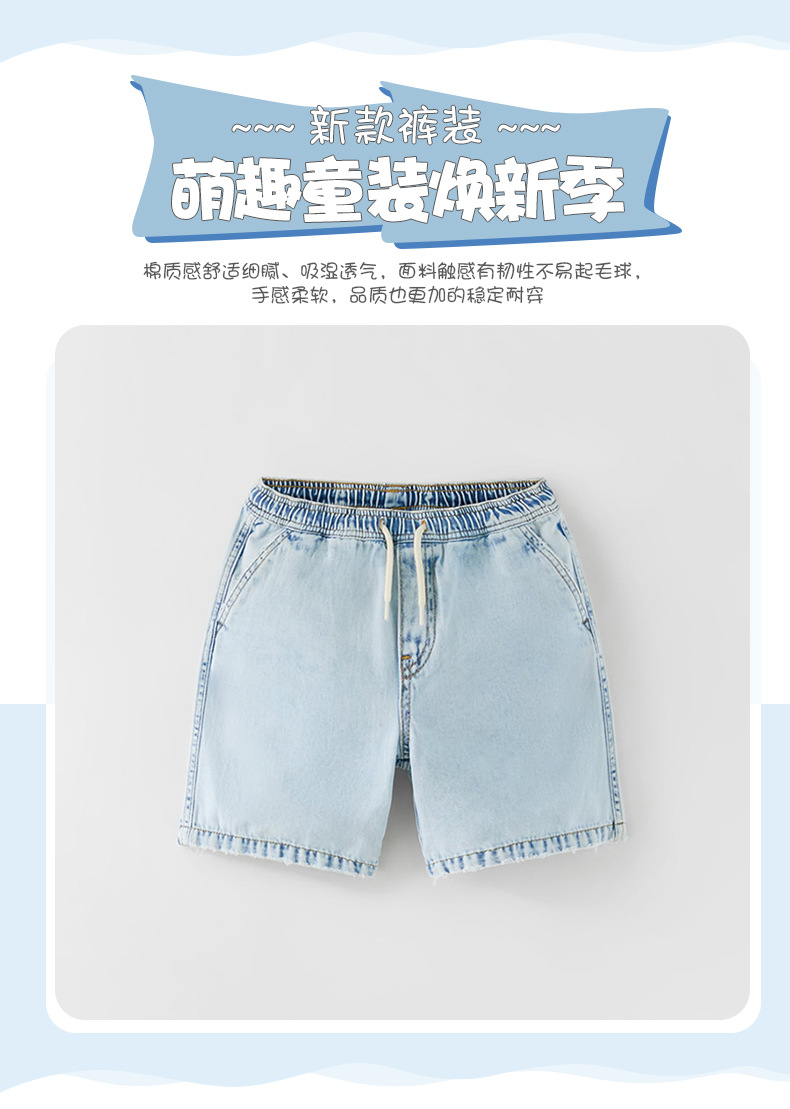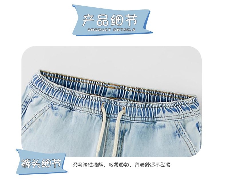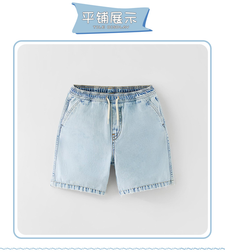 8479PA-malwee summer European and American children's elastic waist solid color denim shorts