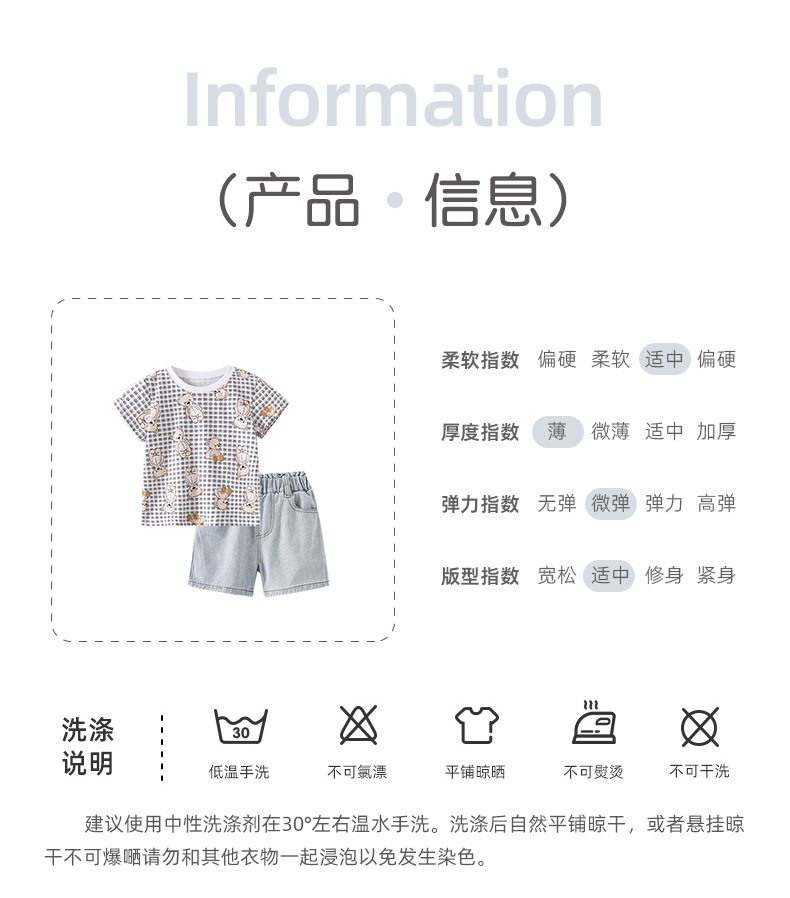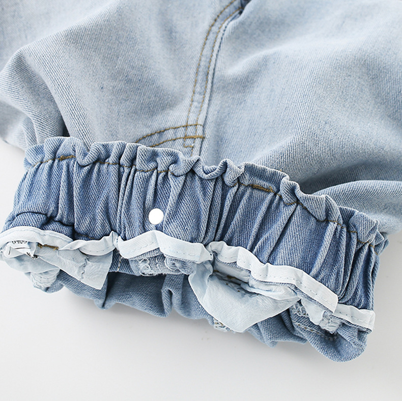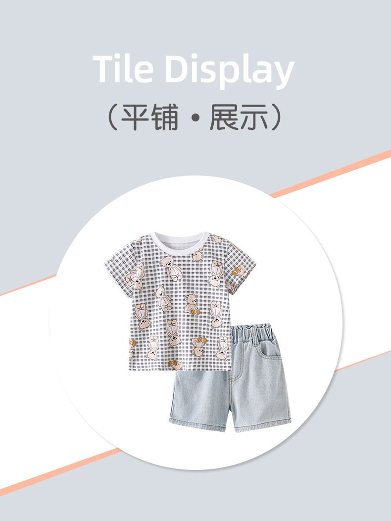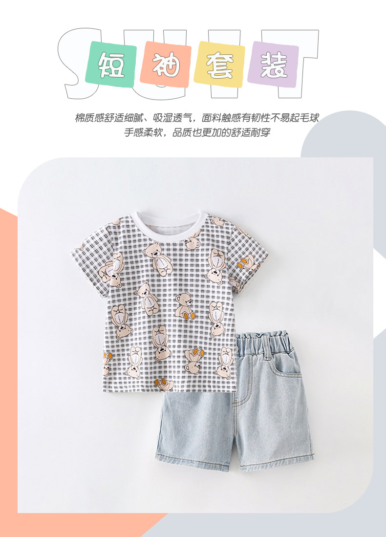 8488KTG-Summer European and American children's round neck T-shirt + elastic waist jeans two-piece set