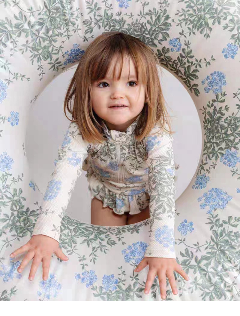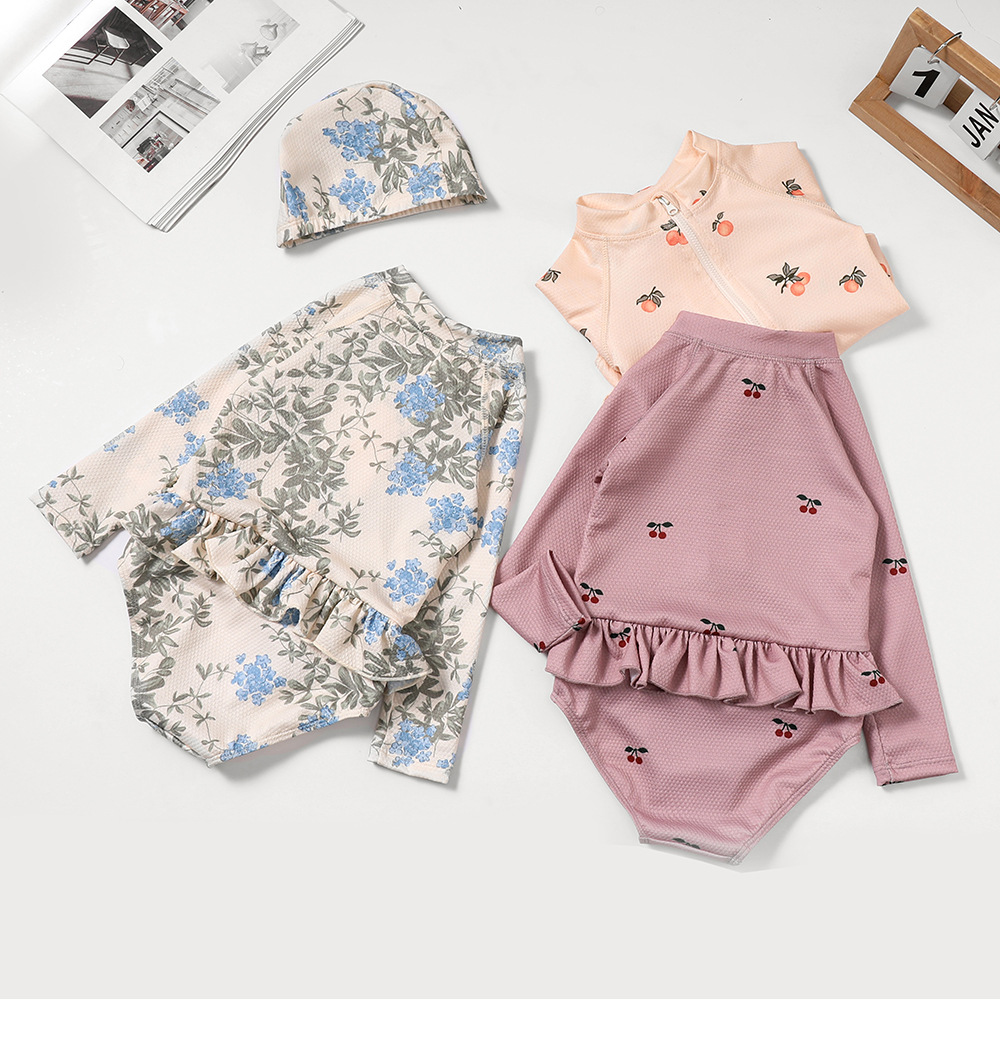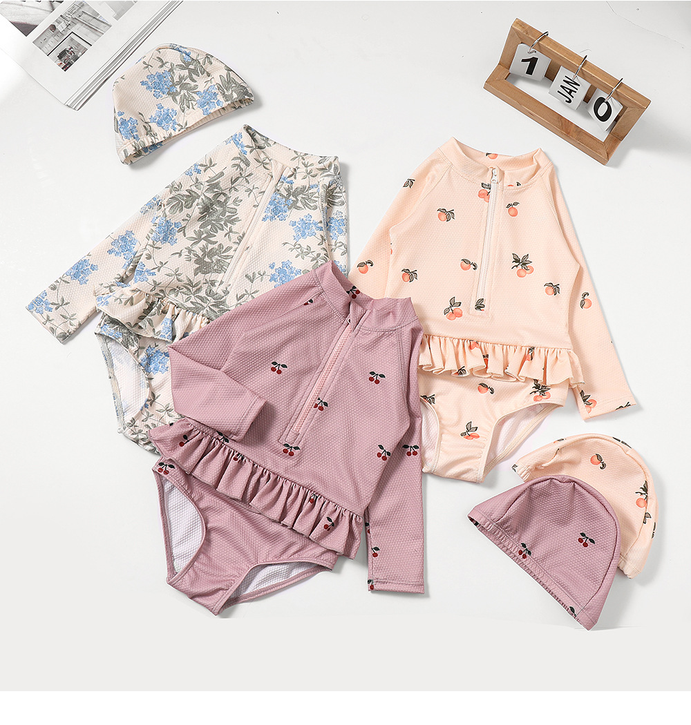 Blue flower swimsuit (with swim cap) / 2XL=120