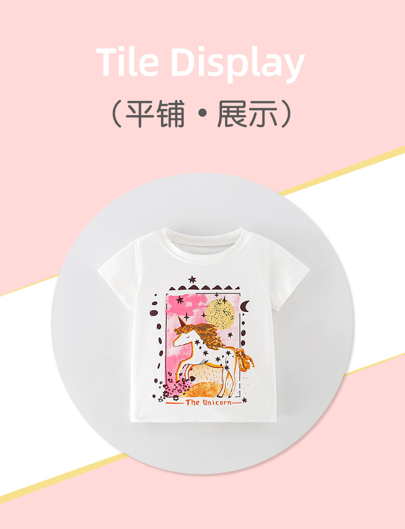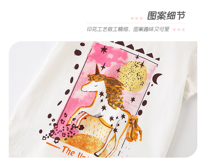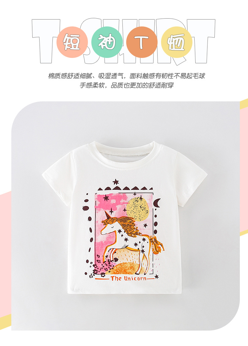 9212SE-Summer Unicorn Printed Crew Neck Top