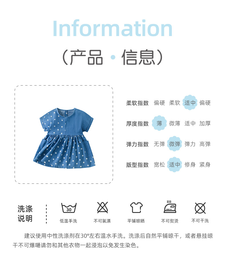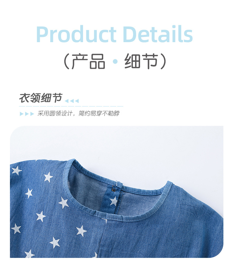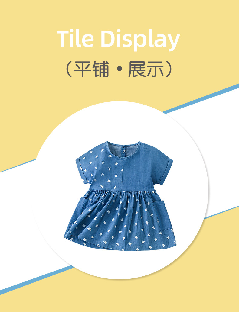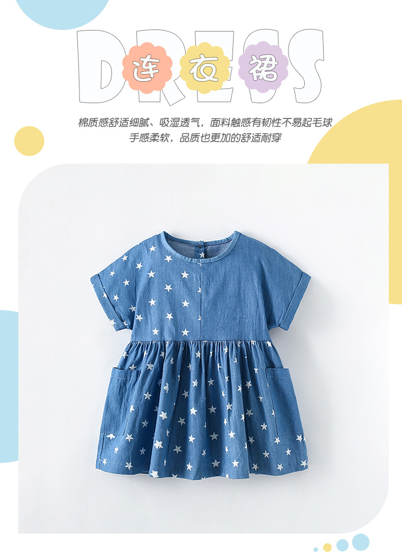 9343DS-Summer European and American children's round neck short-sleeved star dress