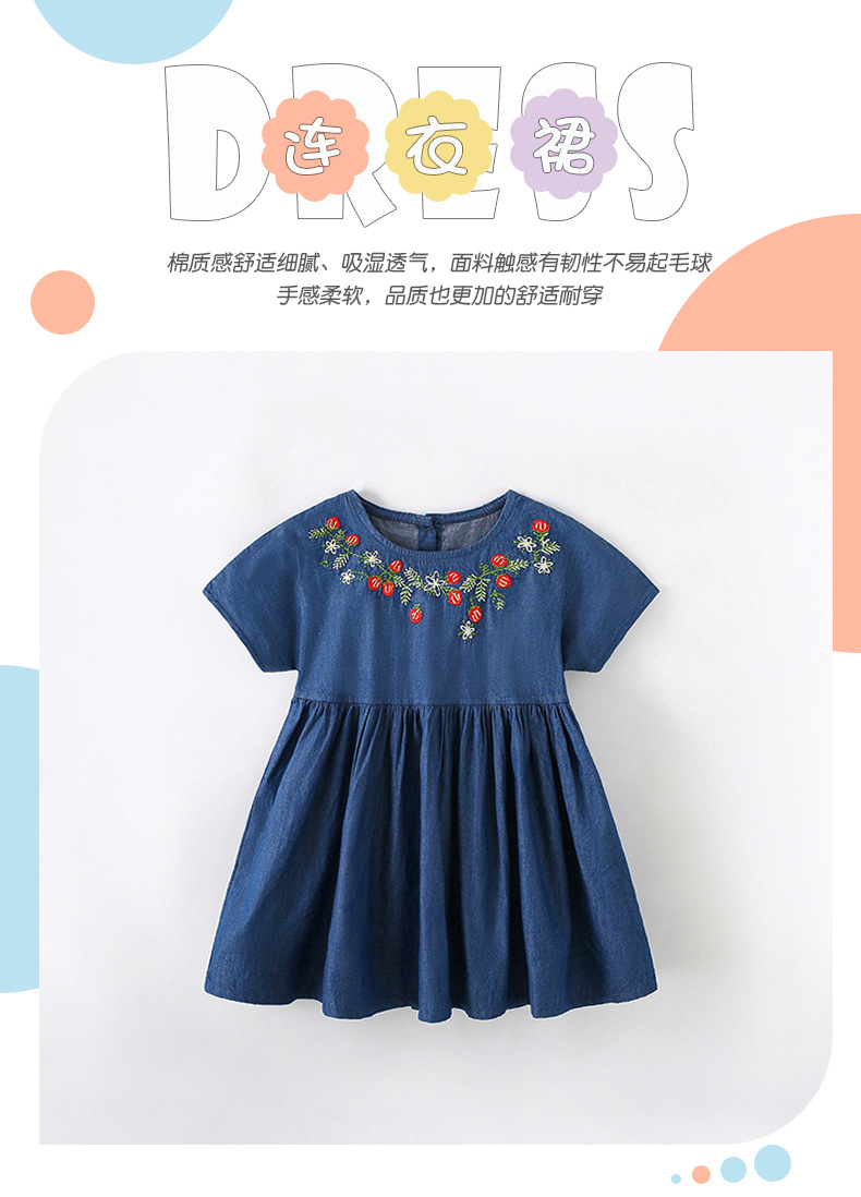 9344DS-Summer European and American children's casual round neck short-sleeved dress