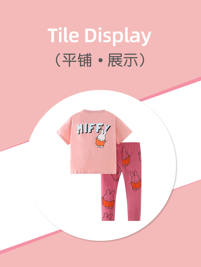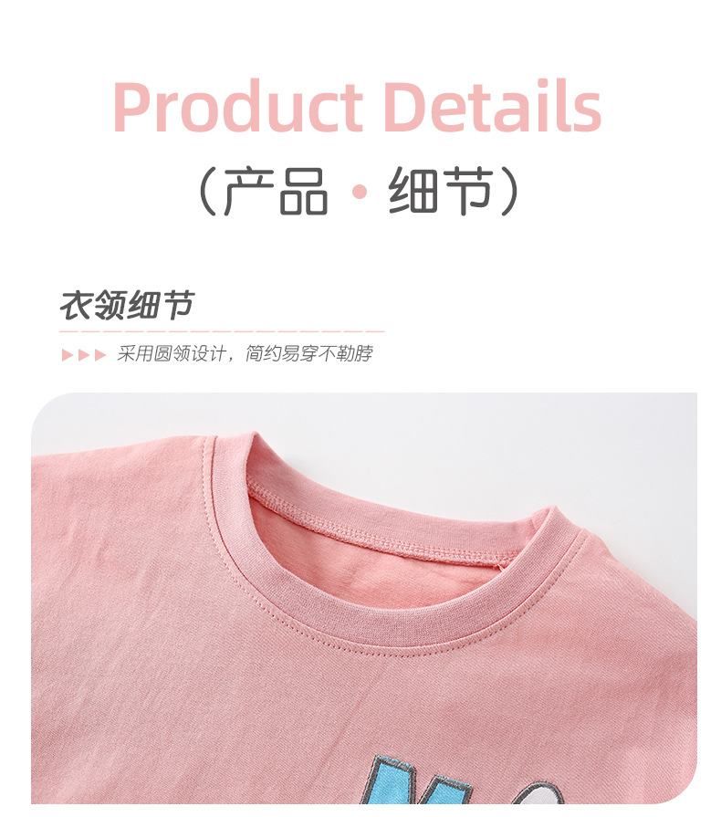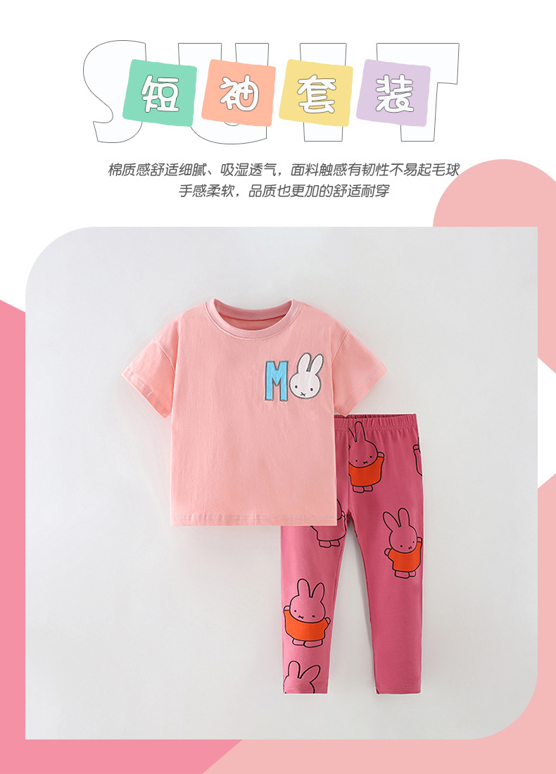 9518TG-Summer two-piece children's casual round neck short-sleeved top + elastic waist pants set