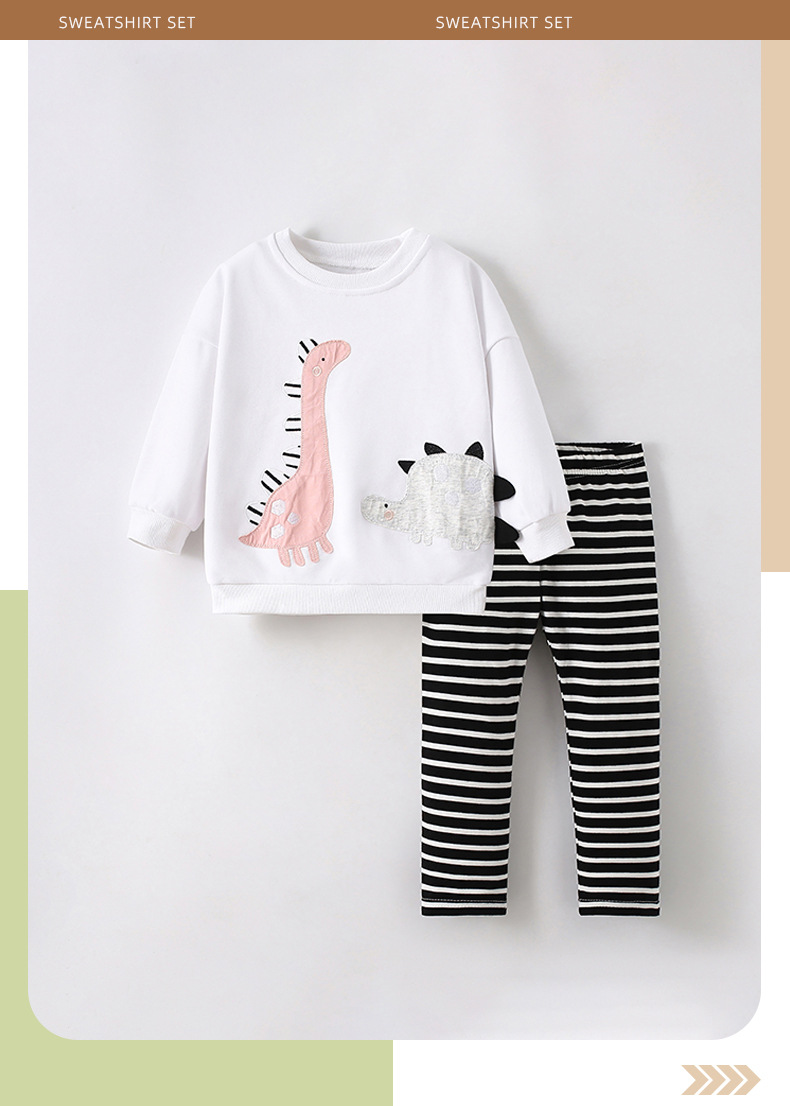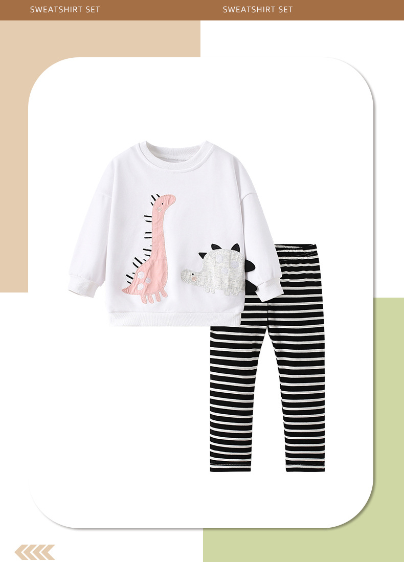 9711SE-Autumn two-piece little girl round neck long-sleeved dinosaur suit