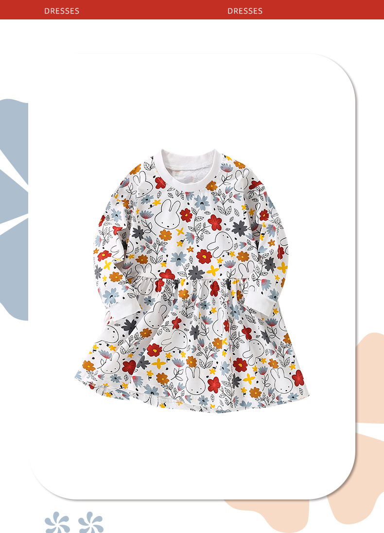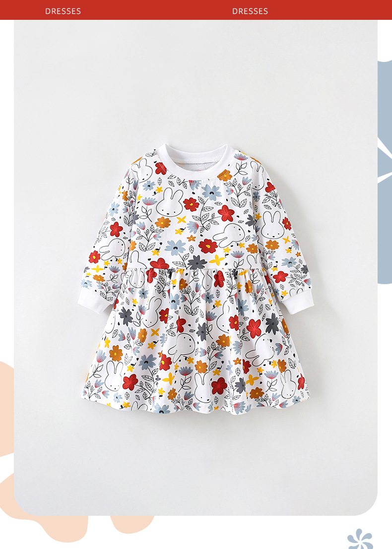 9825DS-Autumn round neck cute rabbit print dress