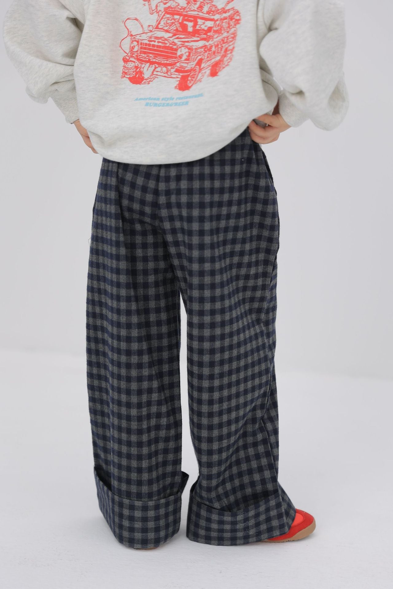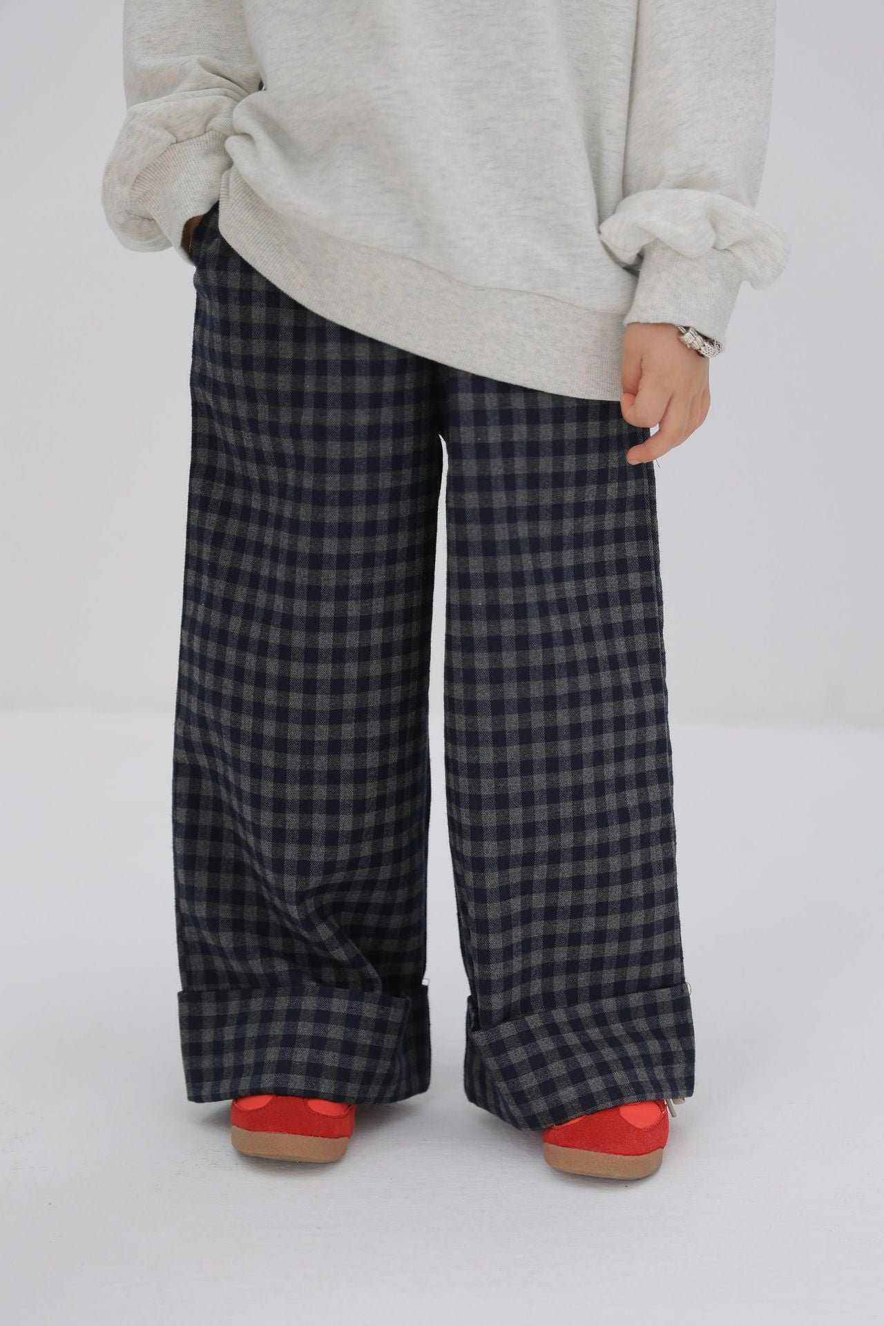 BB2545PCW-秋冬格子翻邊直筒親子長褲