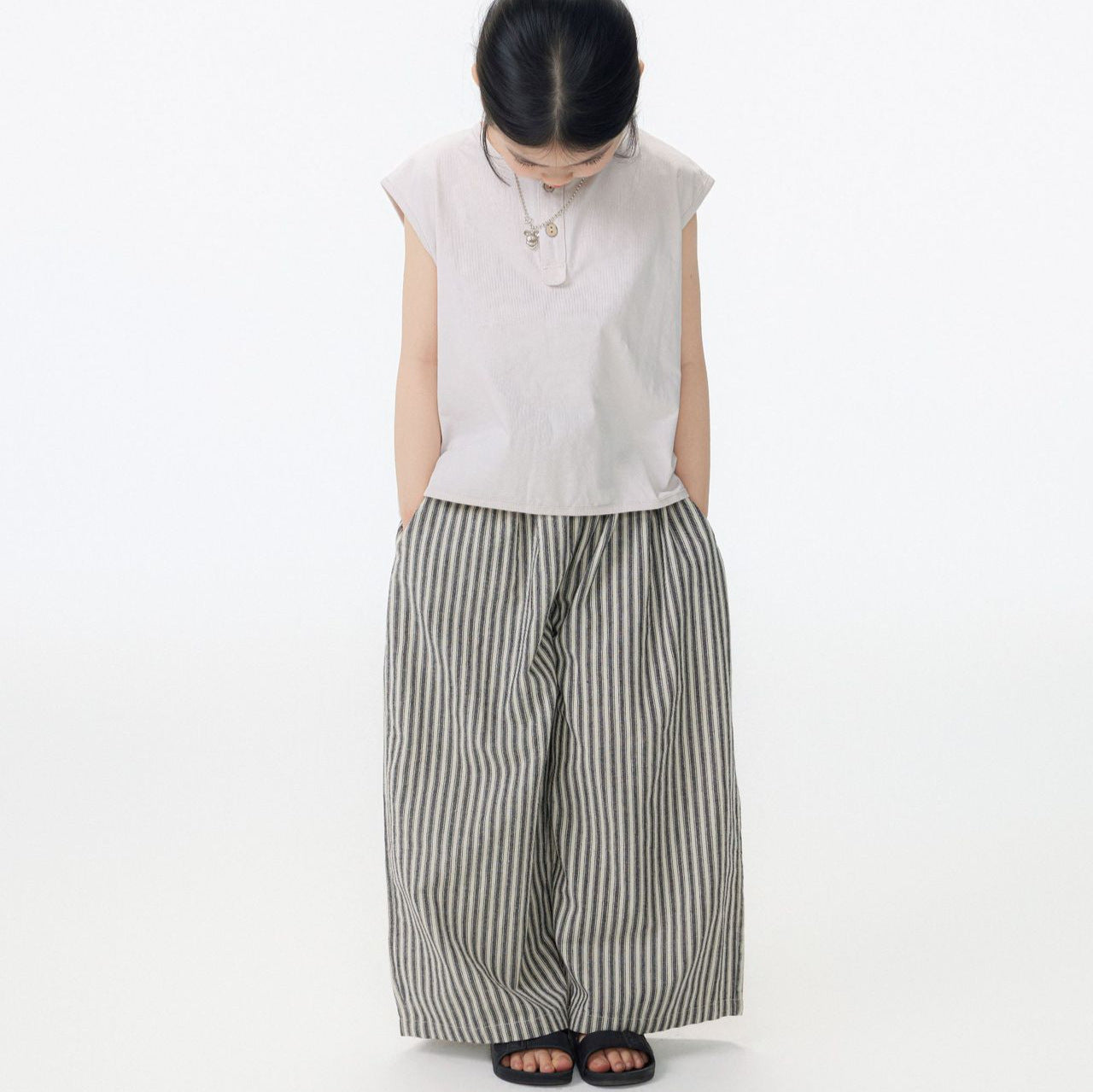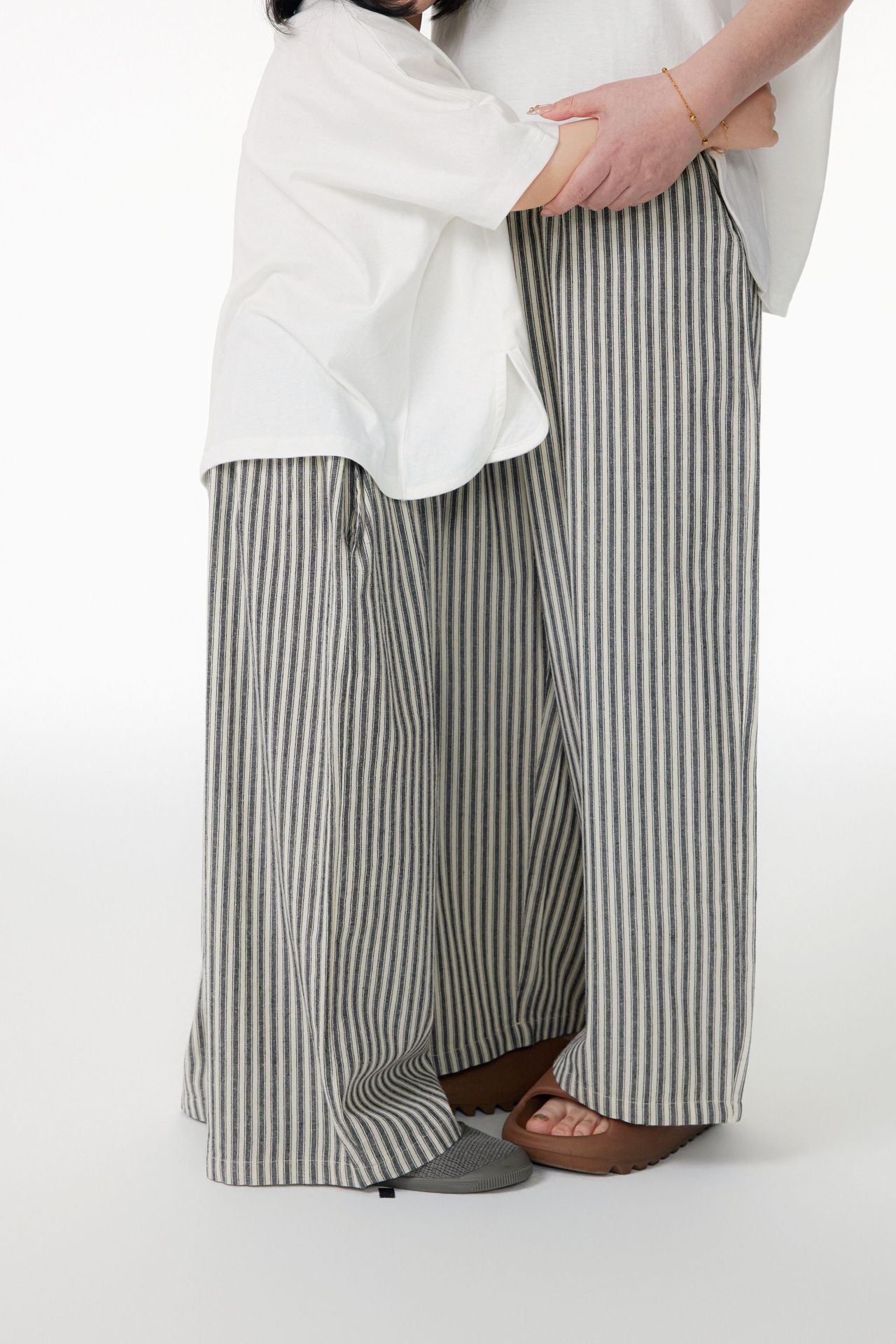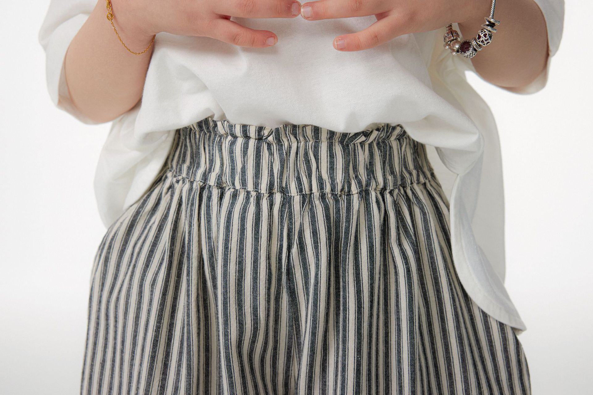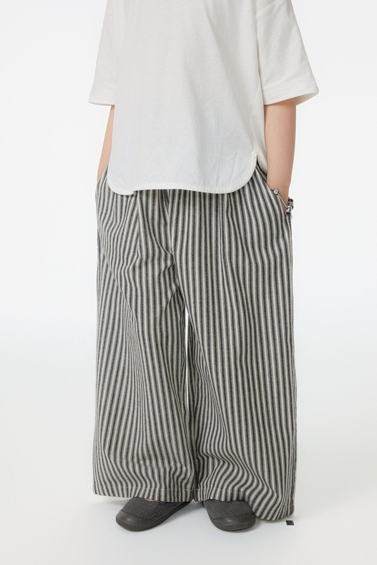 BB2603PCW-夏季|條紋花苞腰|闊腿長褲