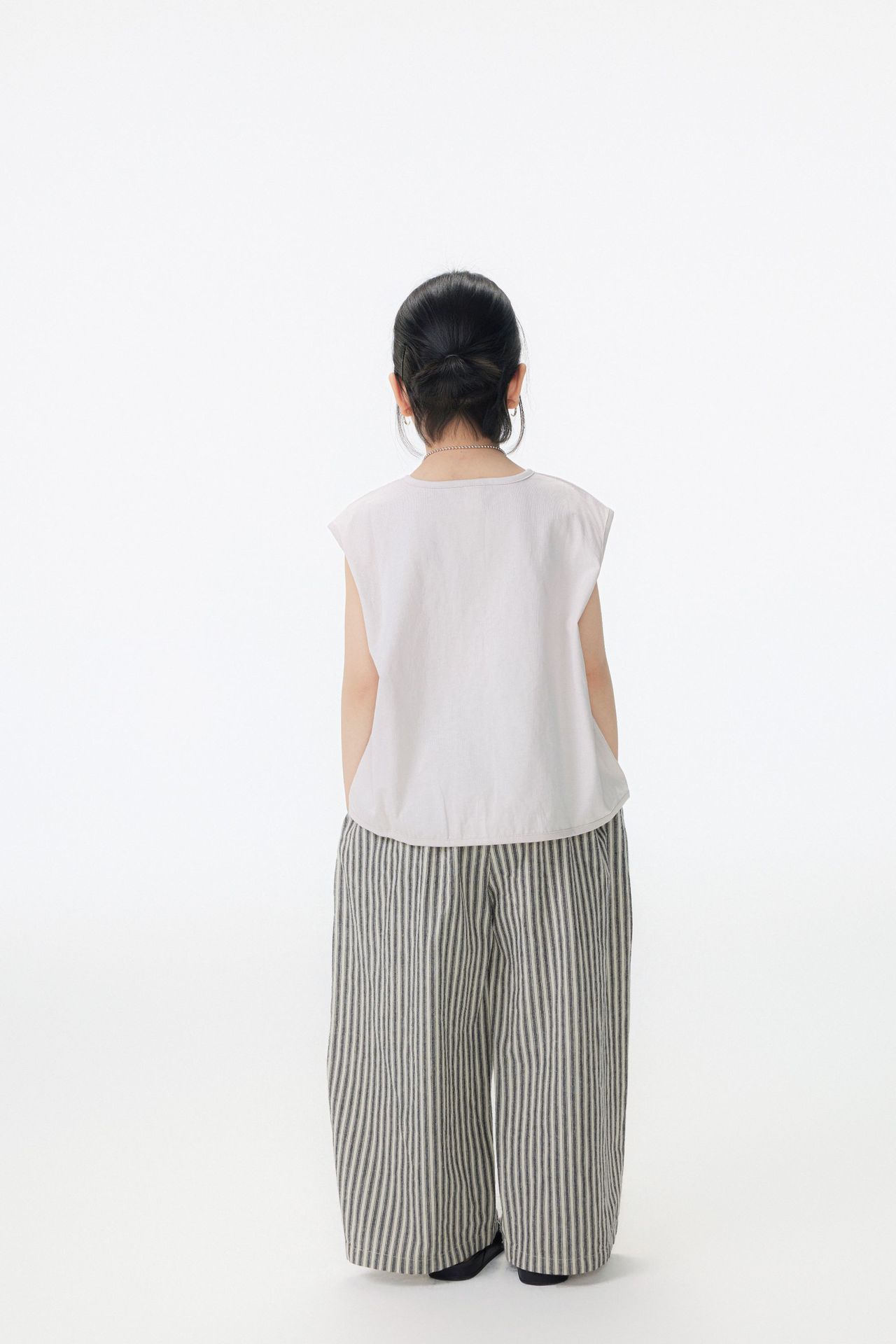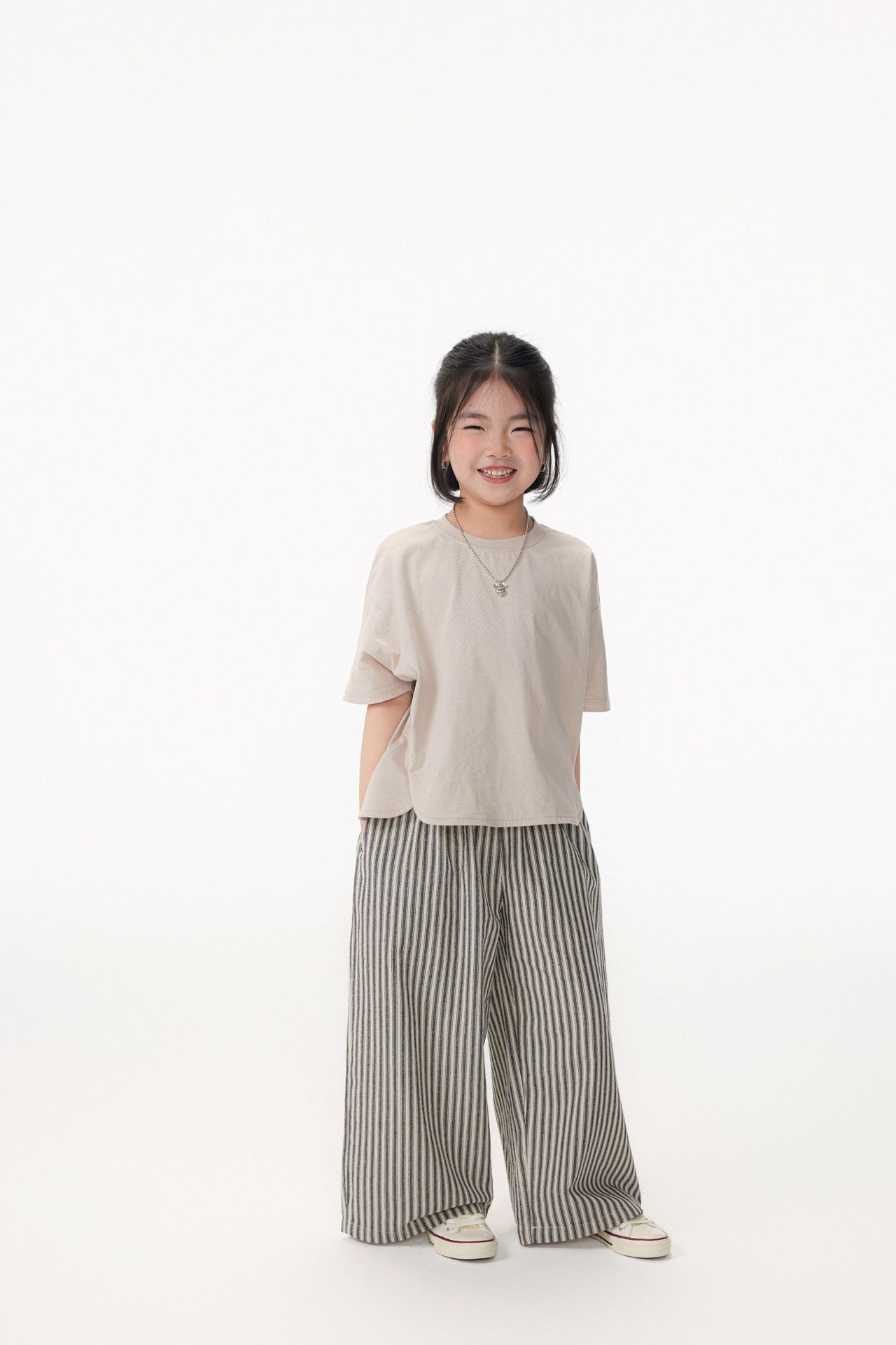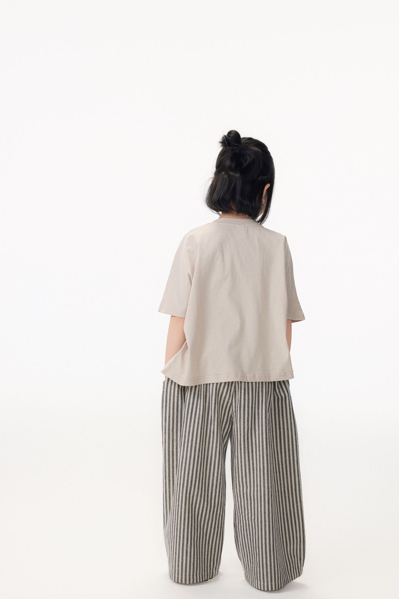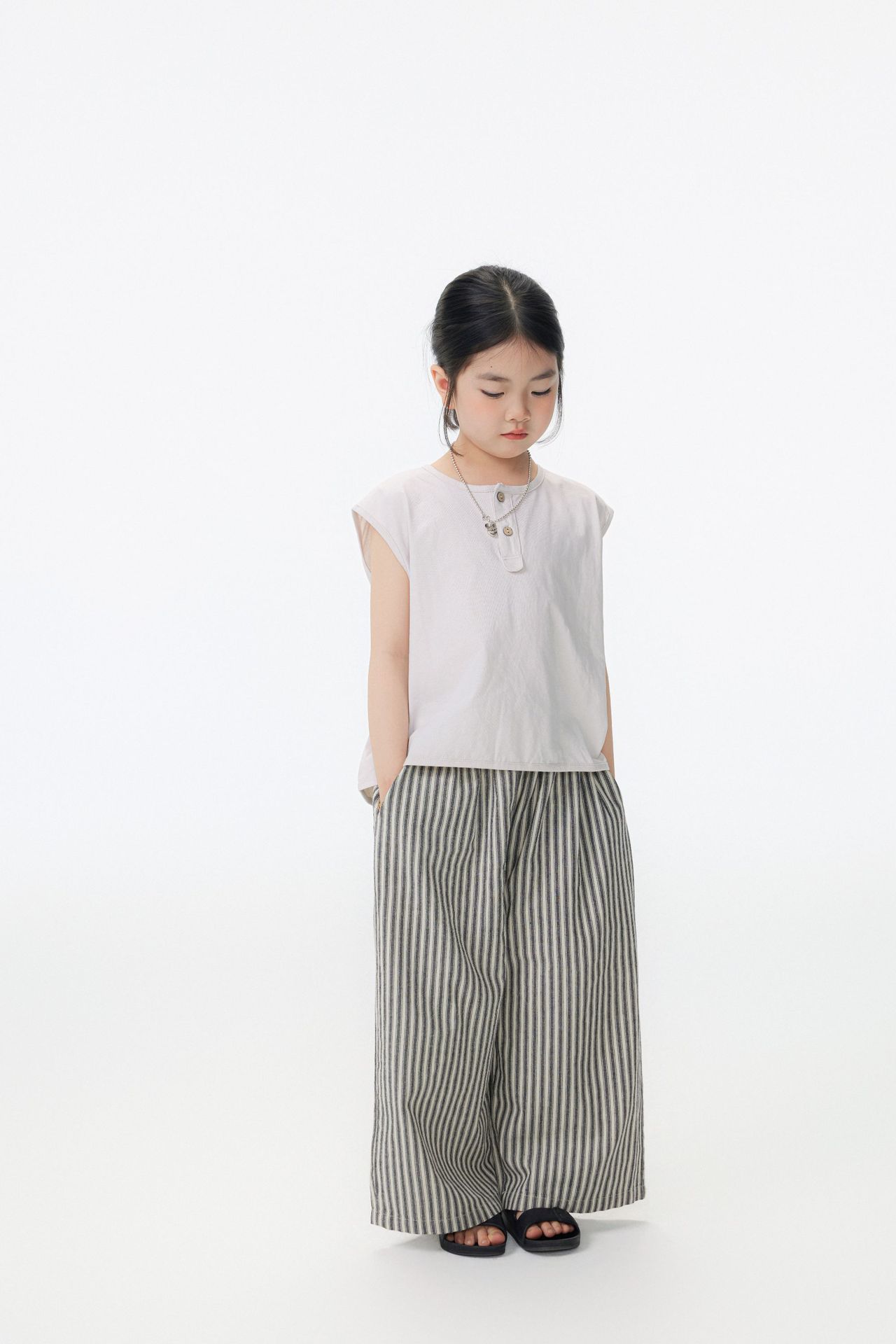 BB2603PCW-夏季|條紋花苞腰|闊腿長褲