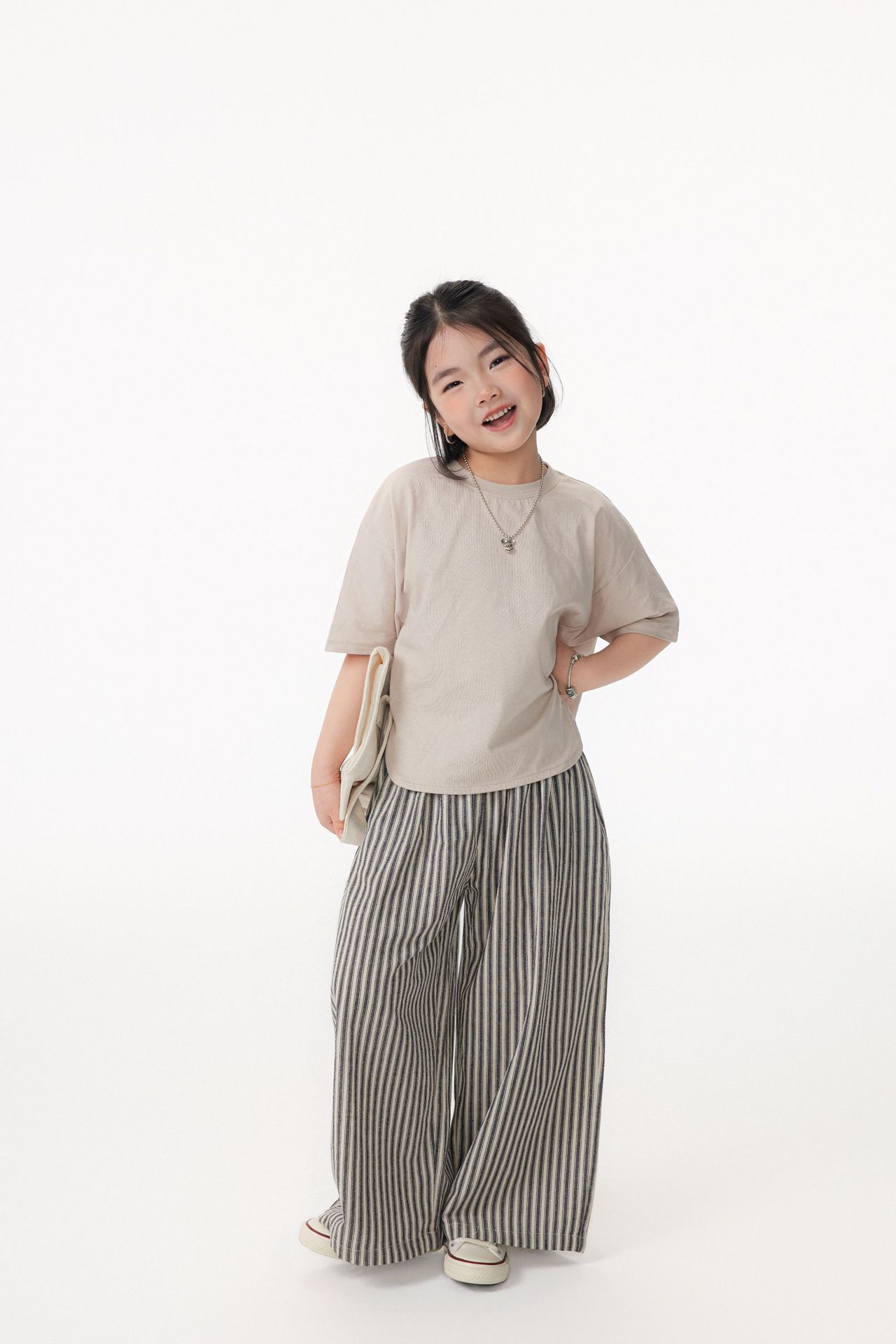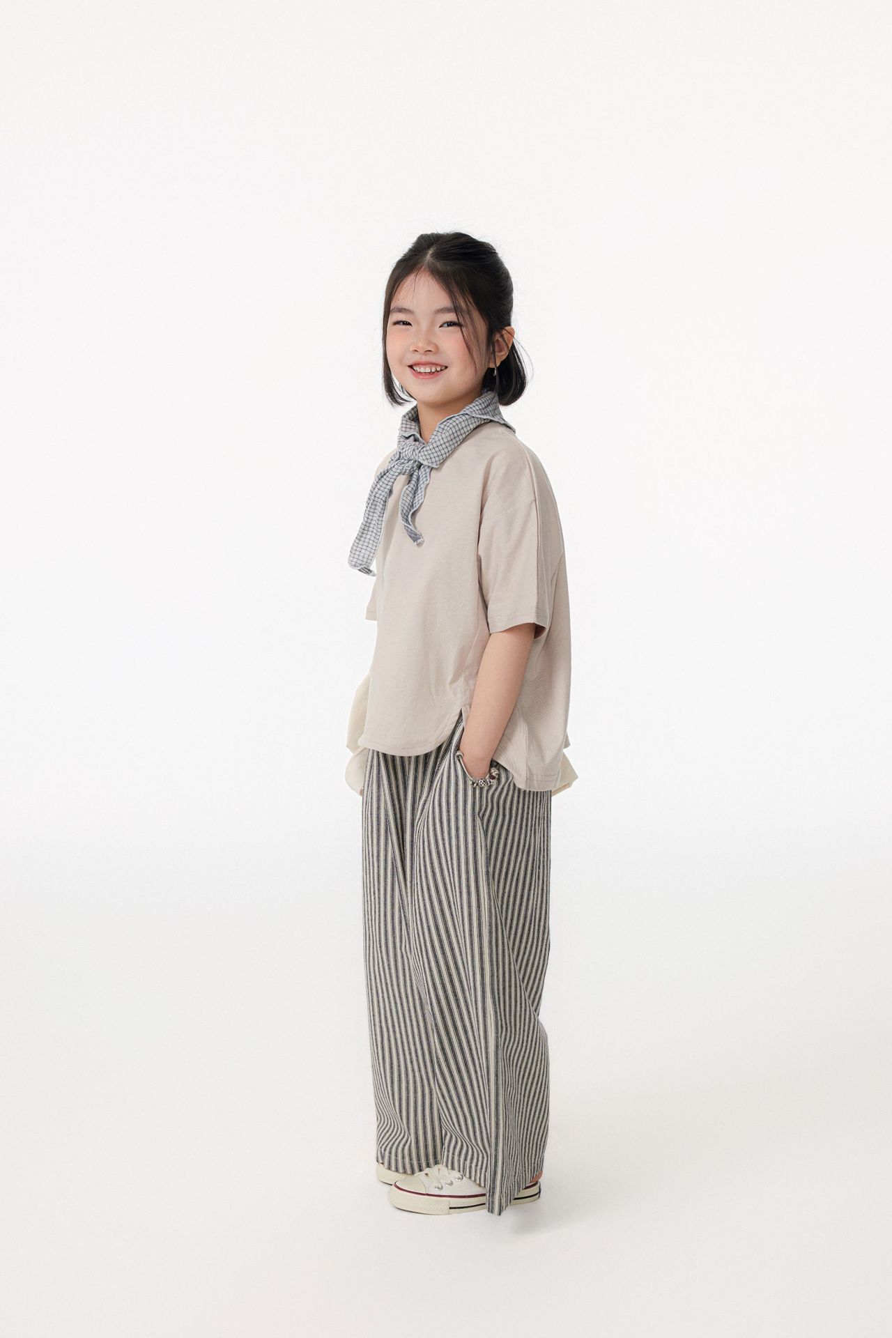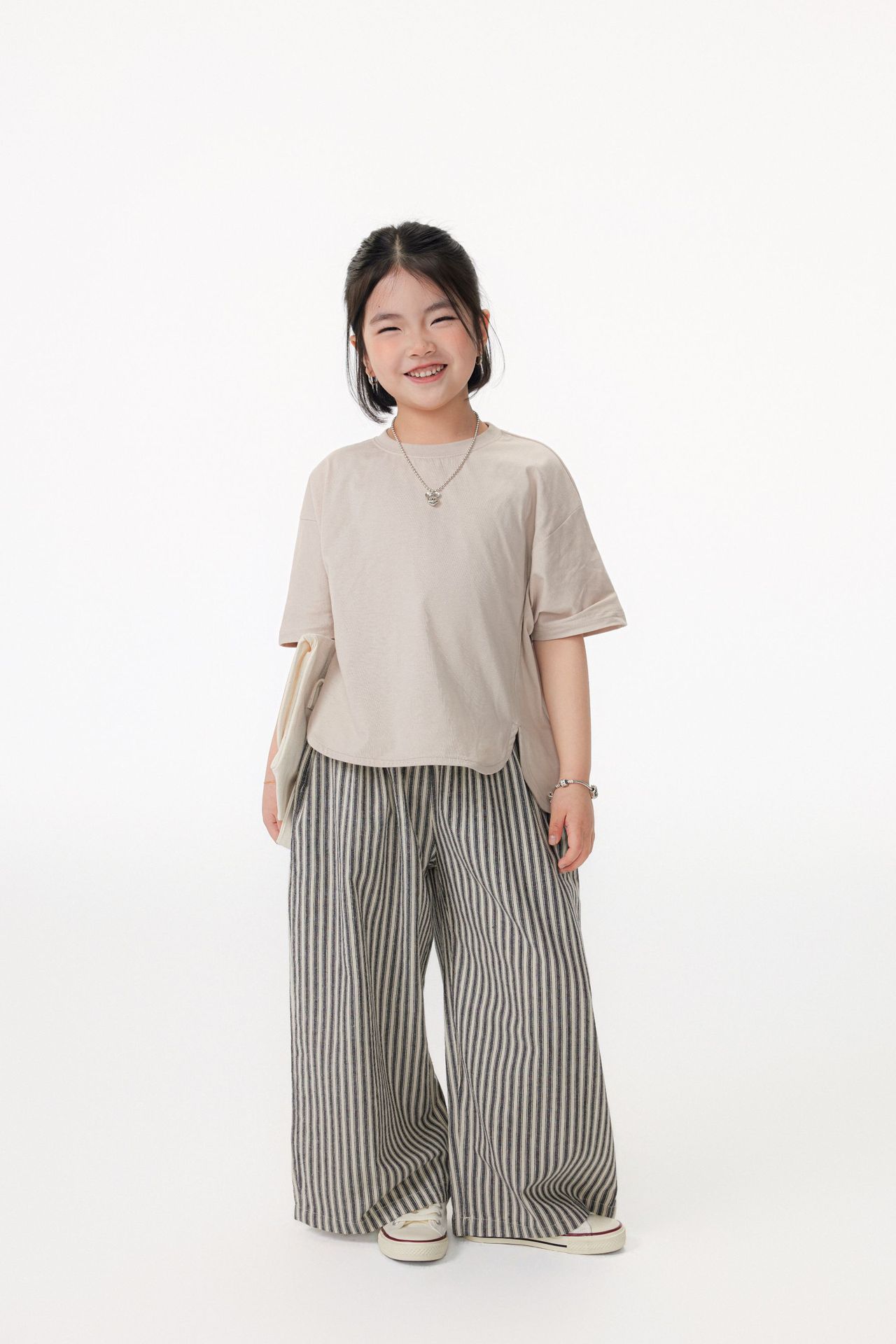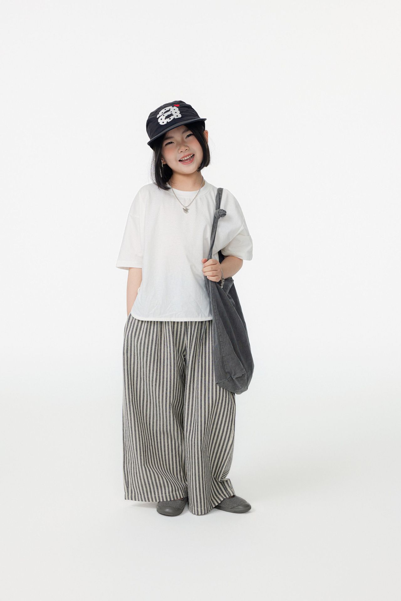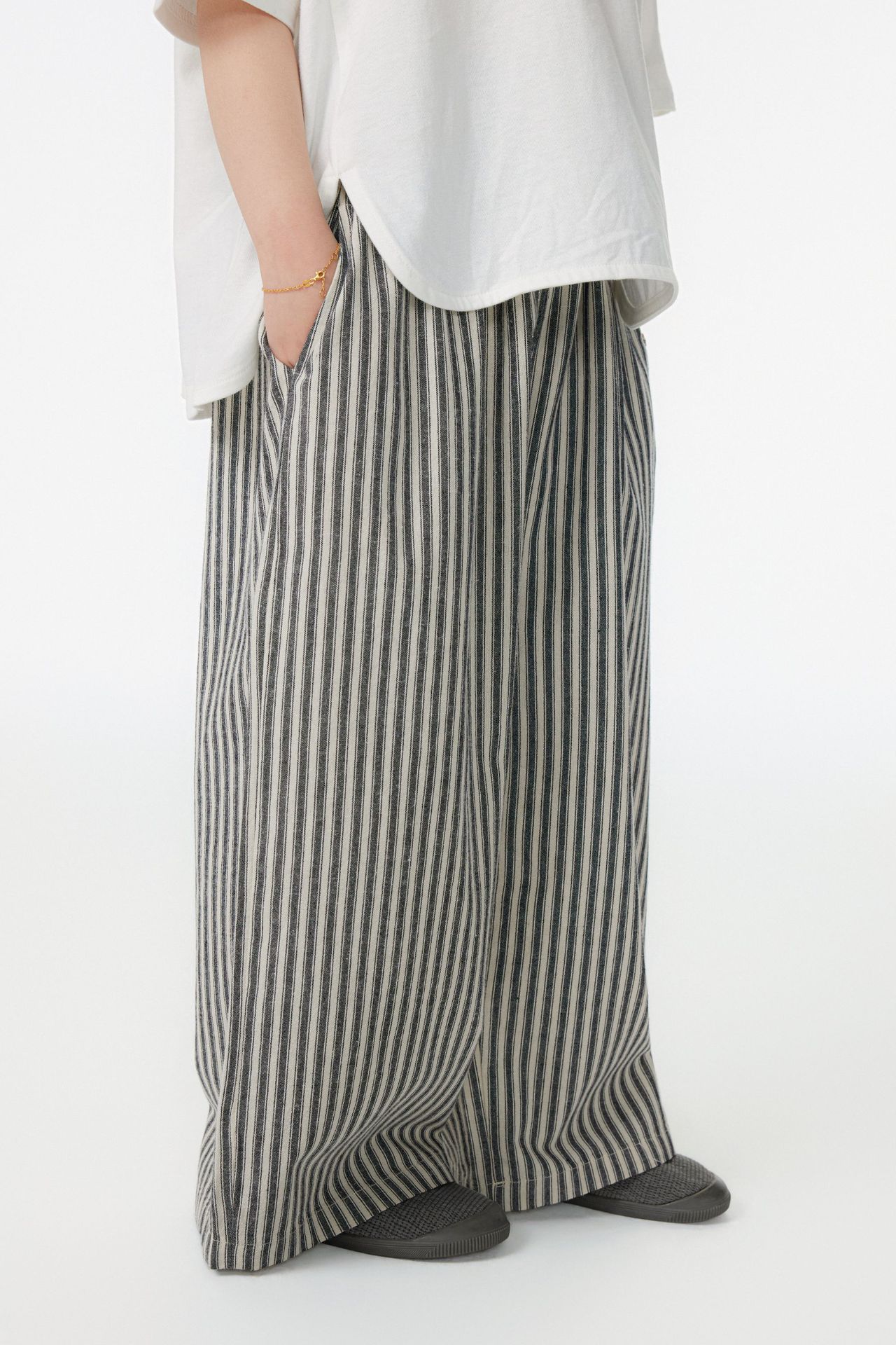 BB2603PCW-夏季|條紋花苞腰|闊腿長褲