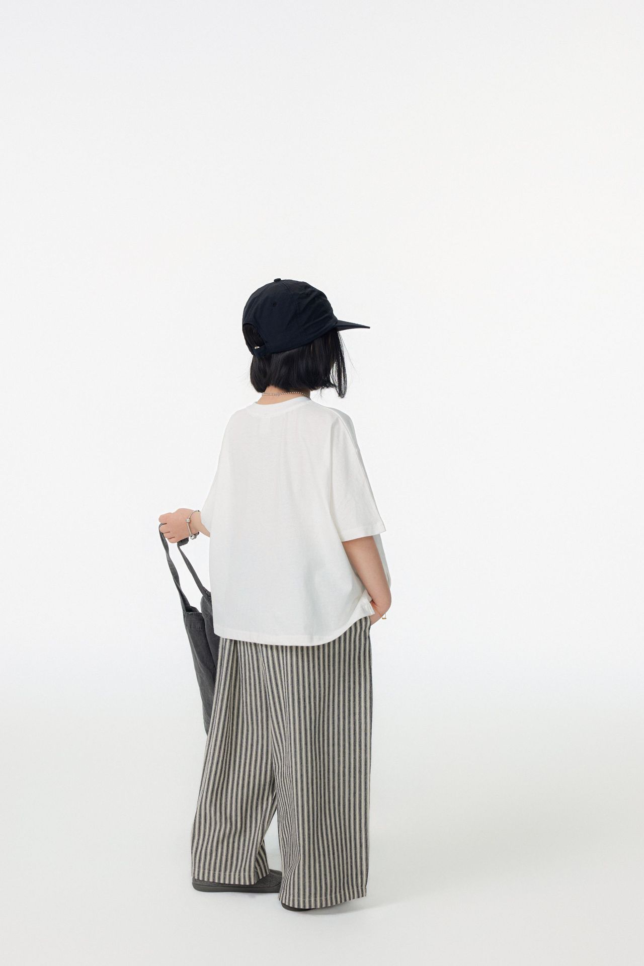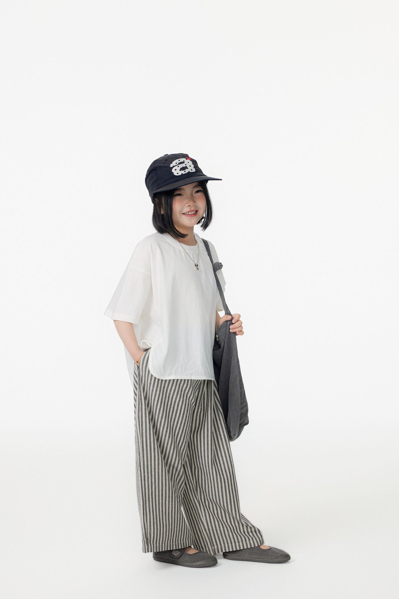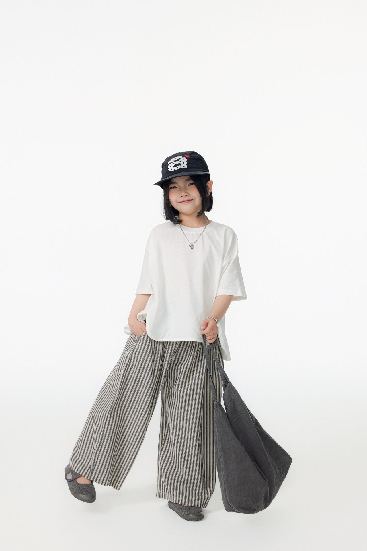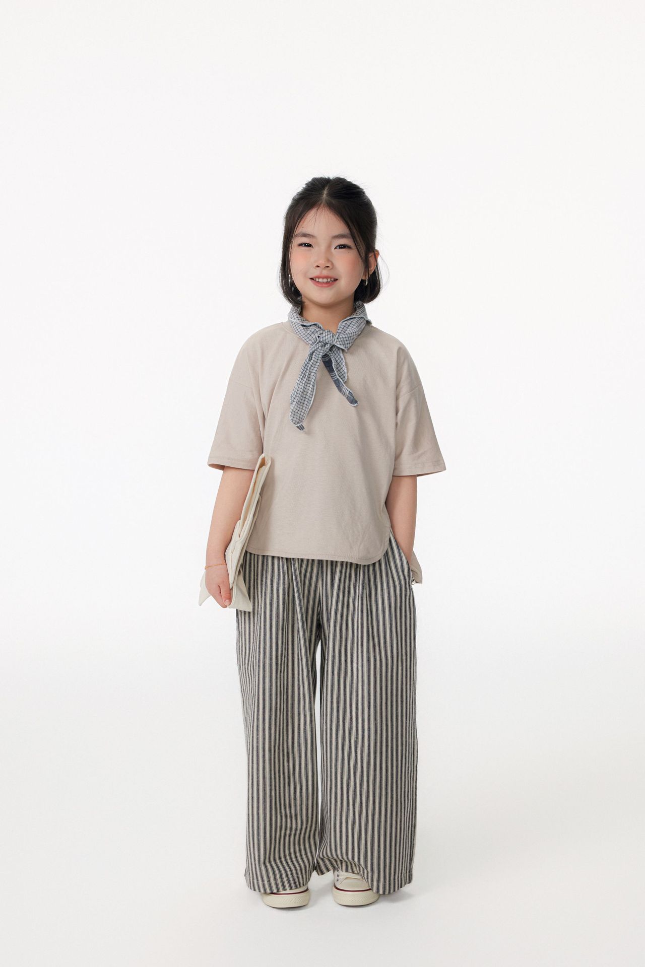 BB2603PCW-夏季|條紋花苞腰|闊腿長褲
