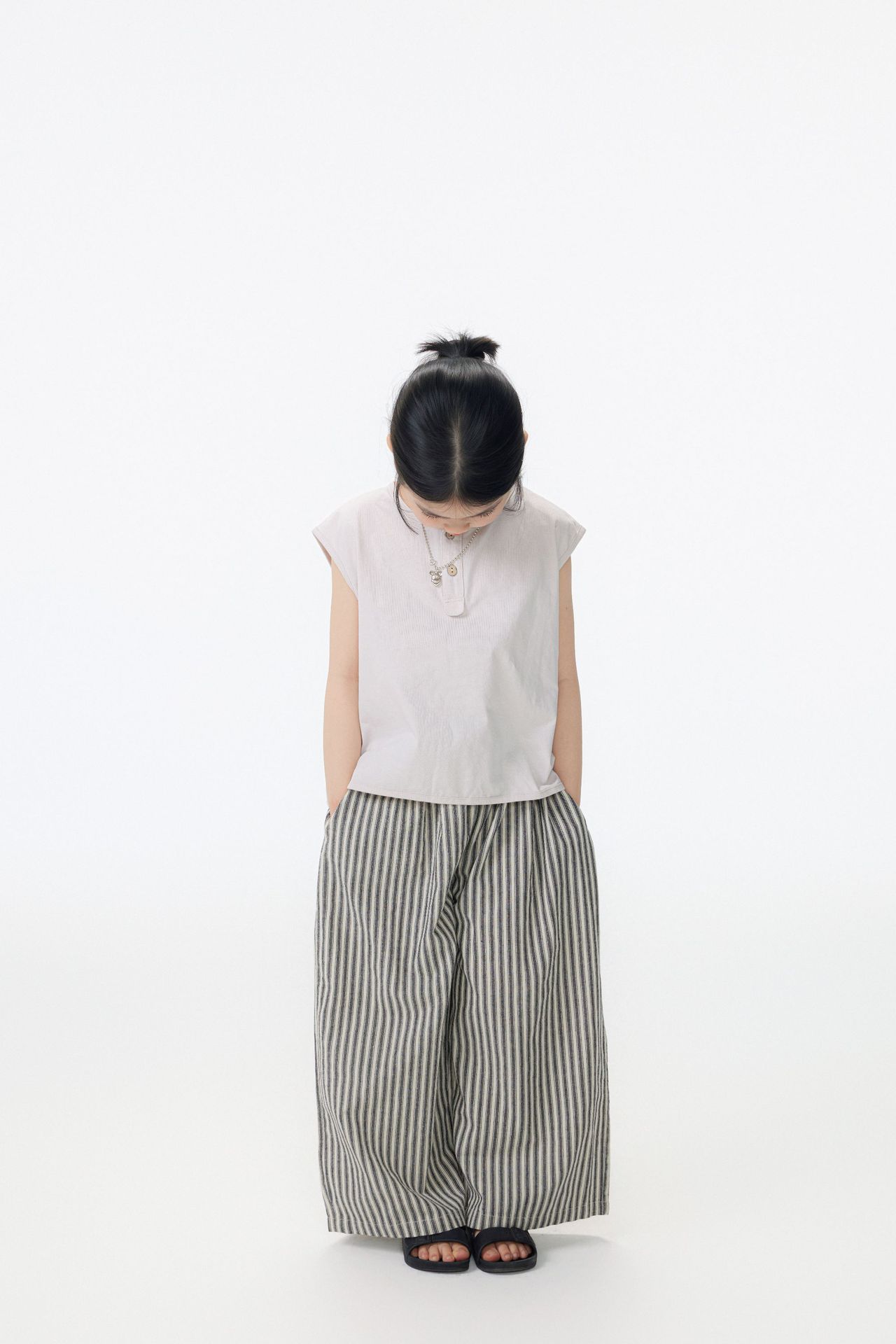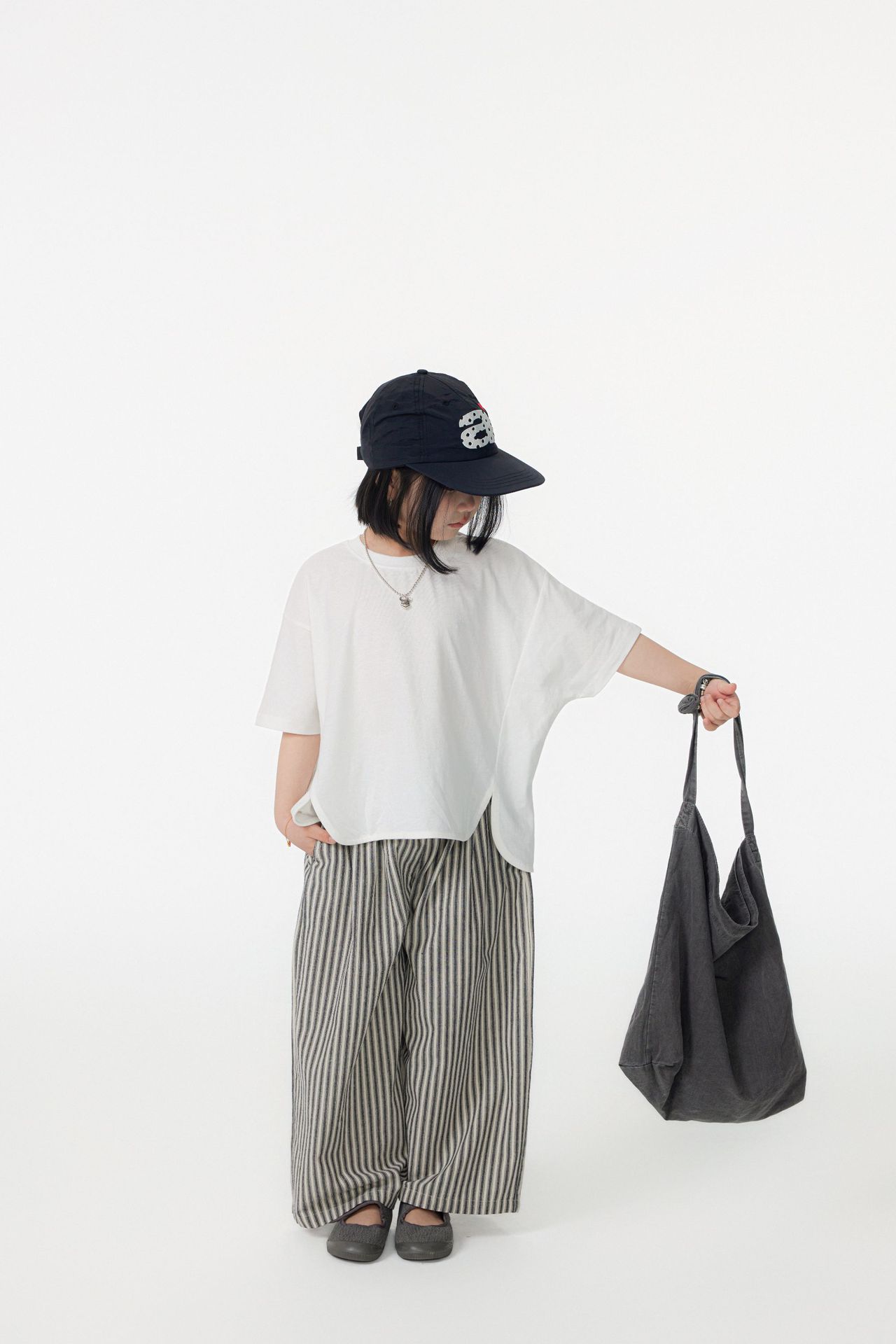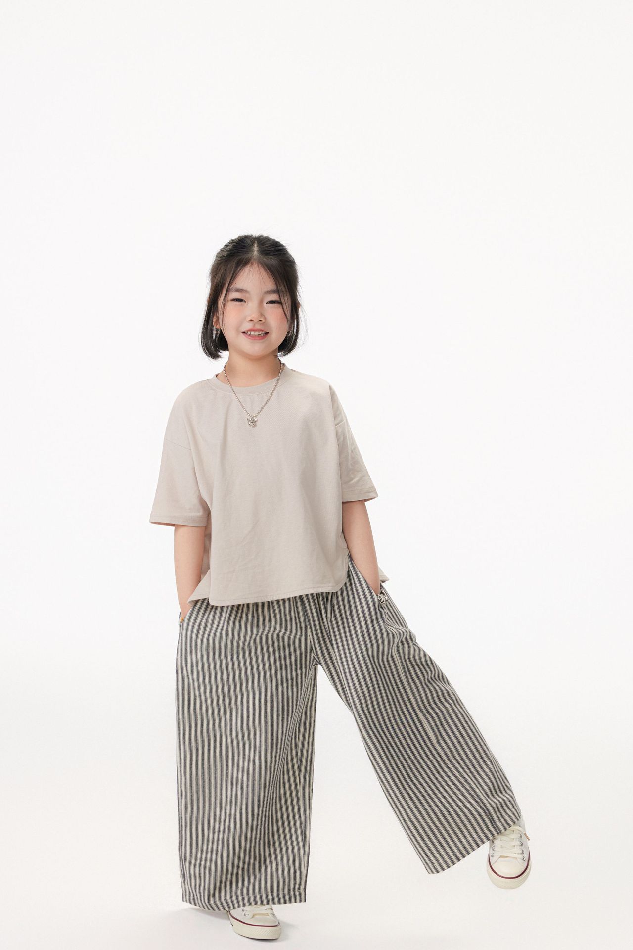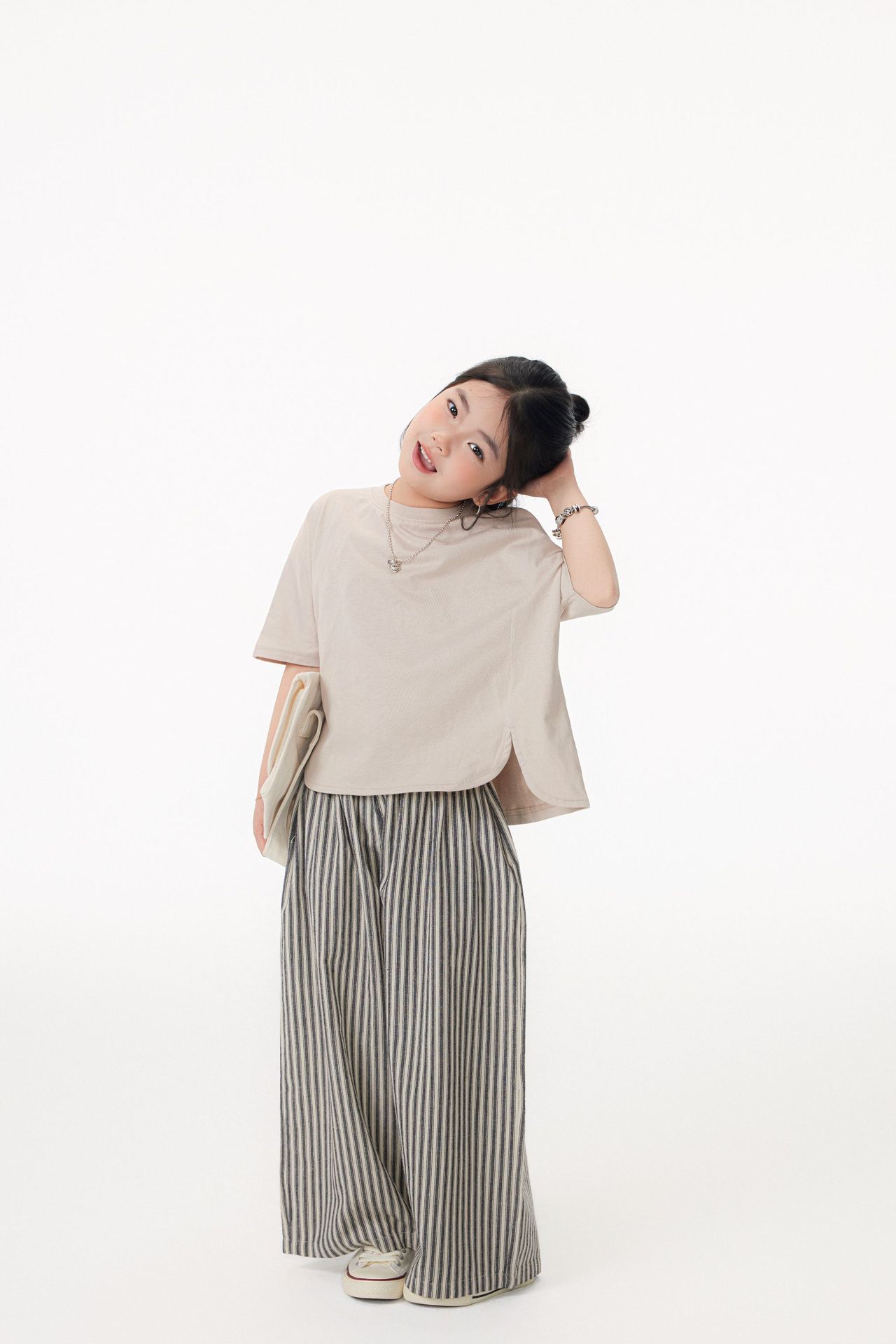 BB2603PCW-夏季|條紋花苞腰|闊腿長褲