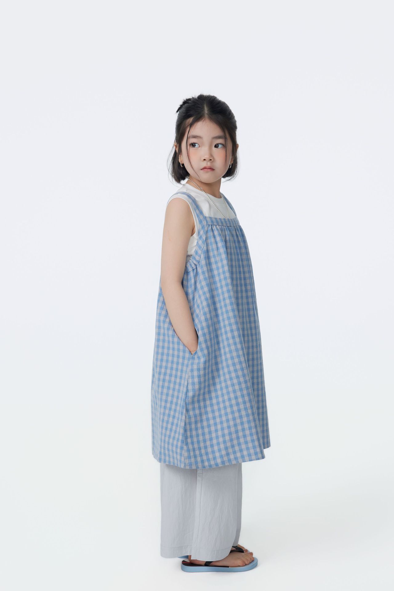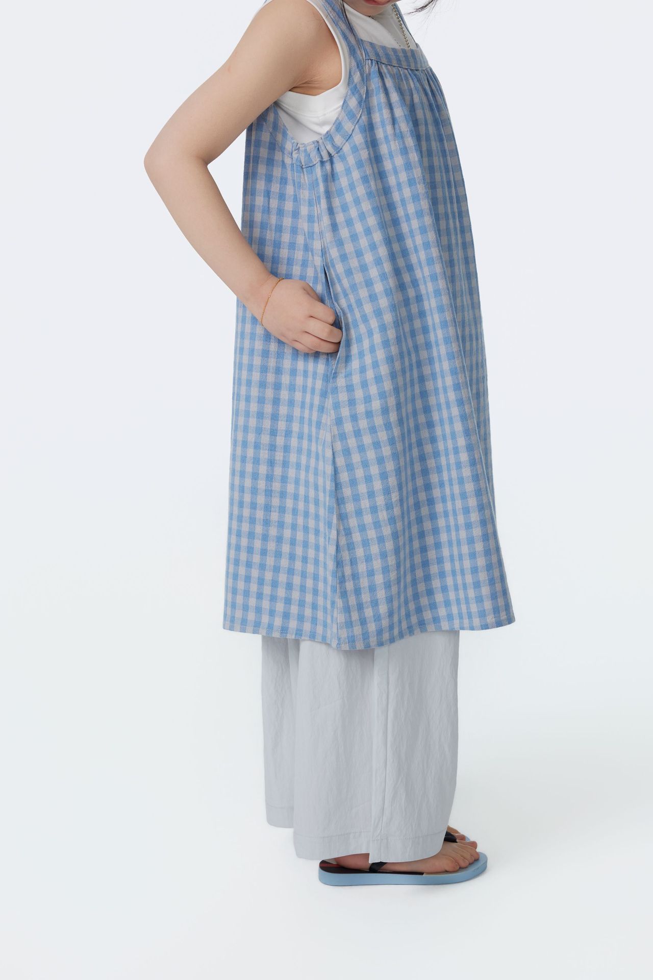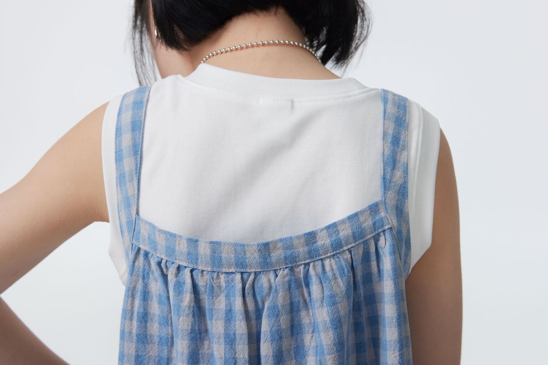 BB2609PCW-夏季|藍格紋|吊帶連衣裙