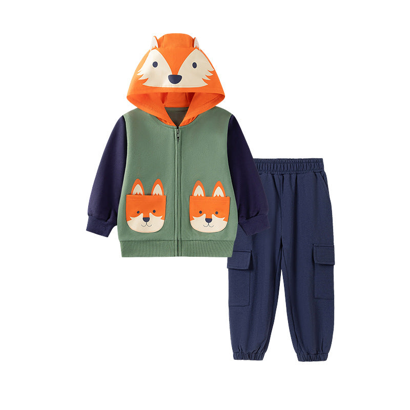 C074SE-Little maven秋季可愛狐狸雙口袋連帽外套&束口休閒長褲