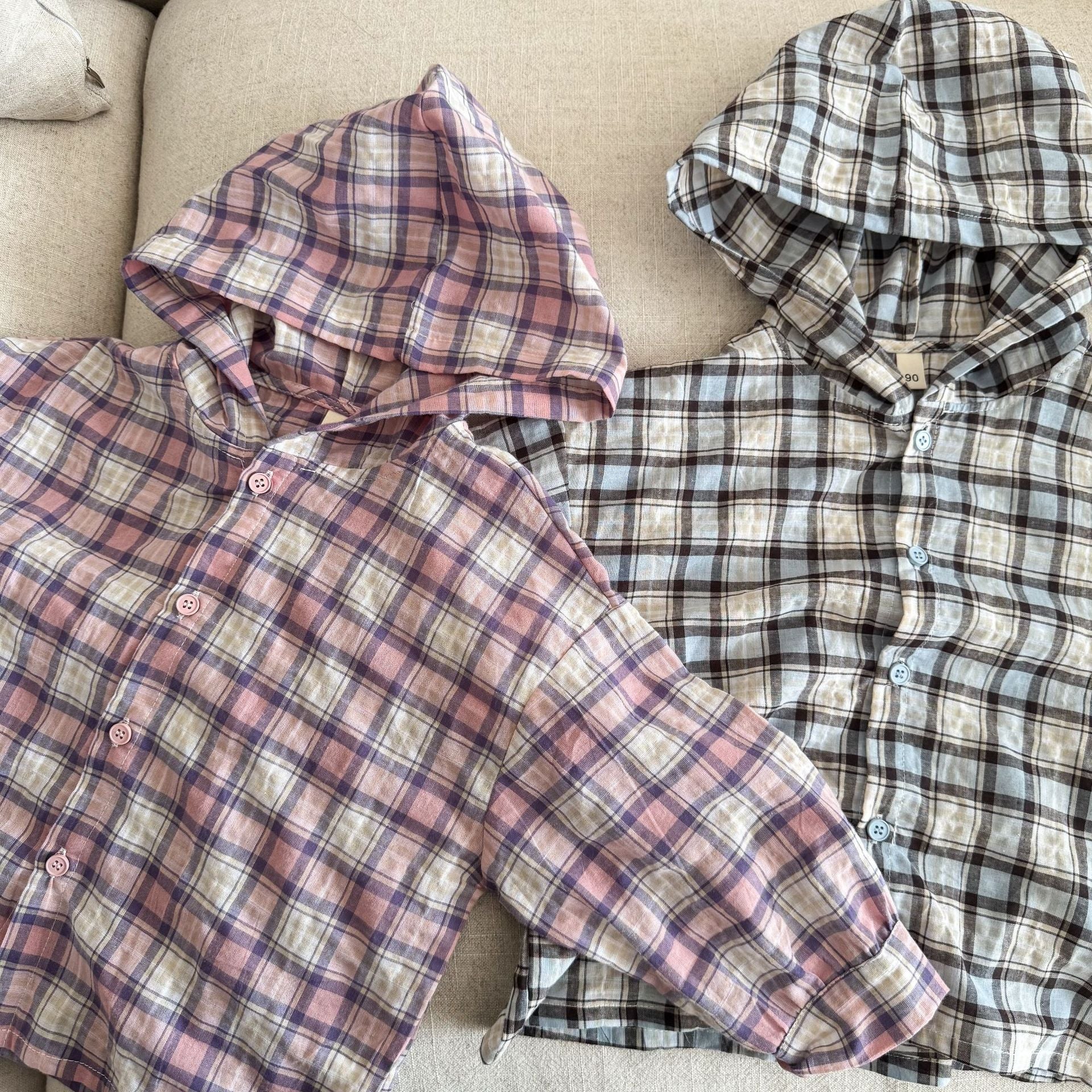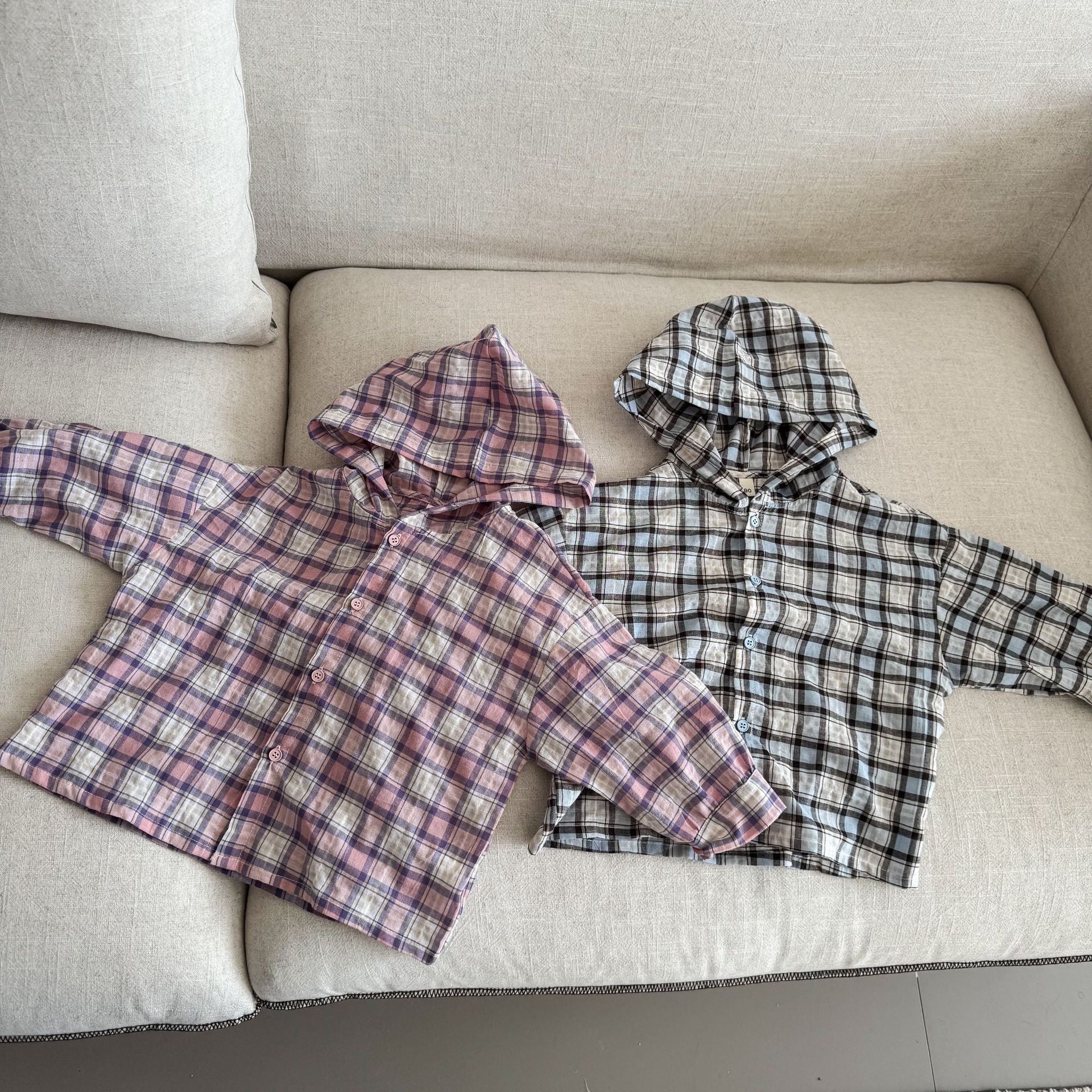 CW260822SE-春秋季格紋連帽薄襯衫防曬外套