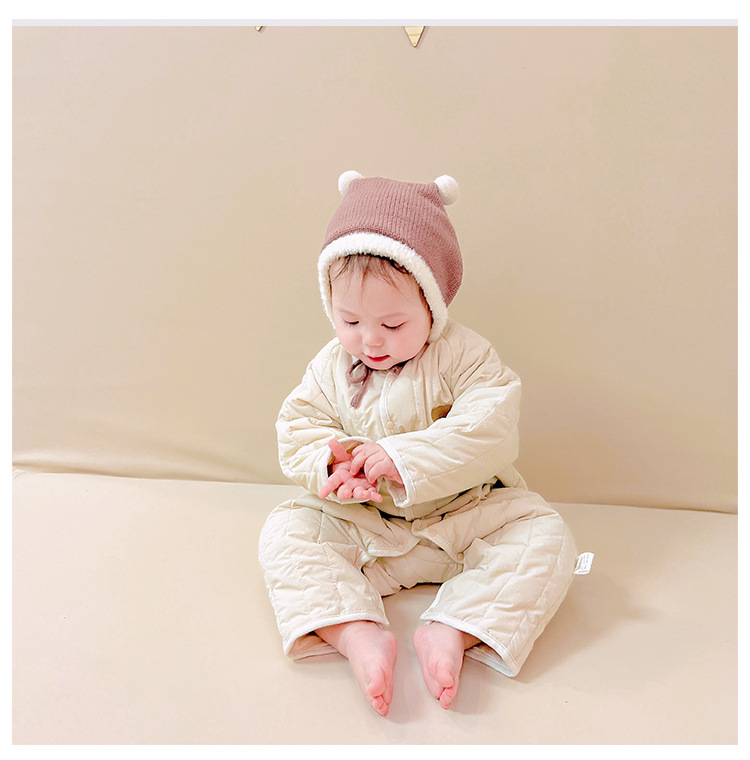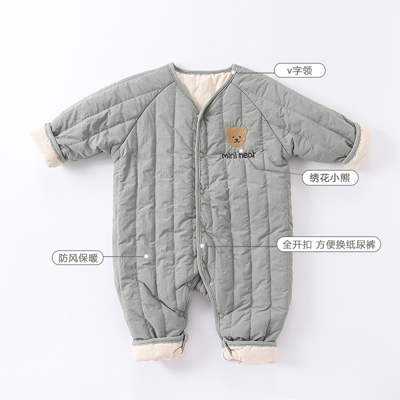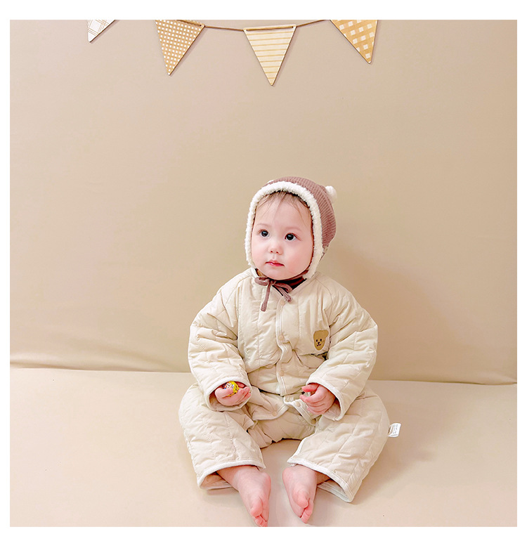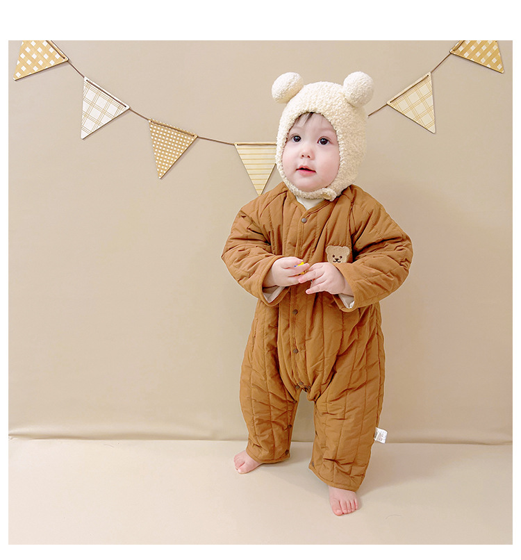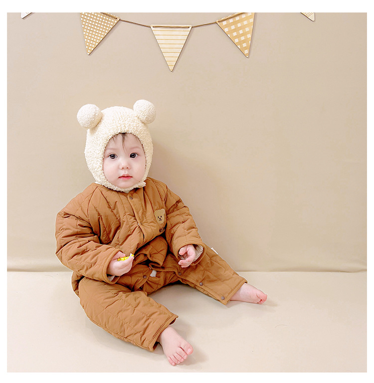 D23280LS-Autumn and winter light cotton jumpsuit embroidered bear cotton warm climbing clothes