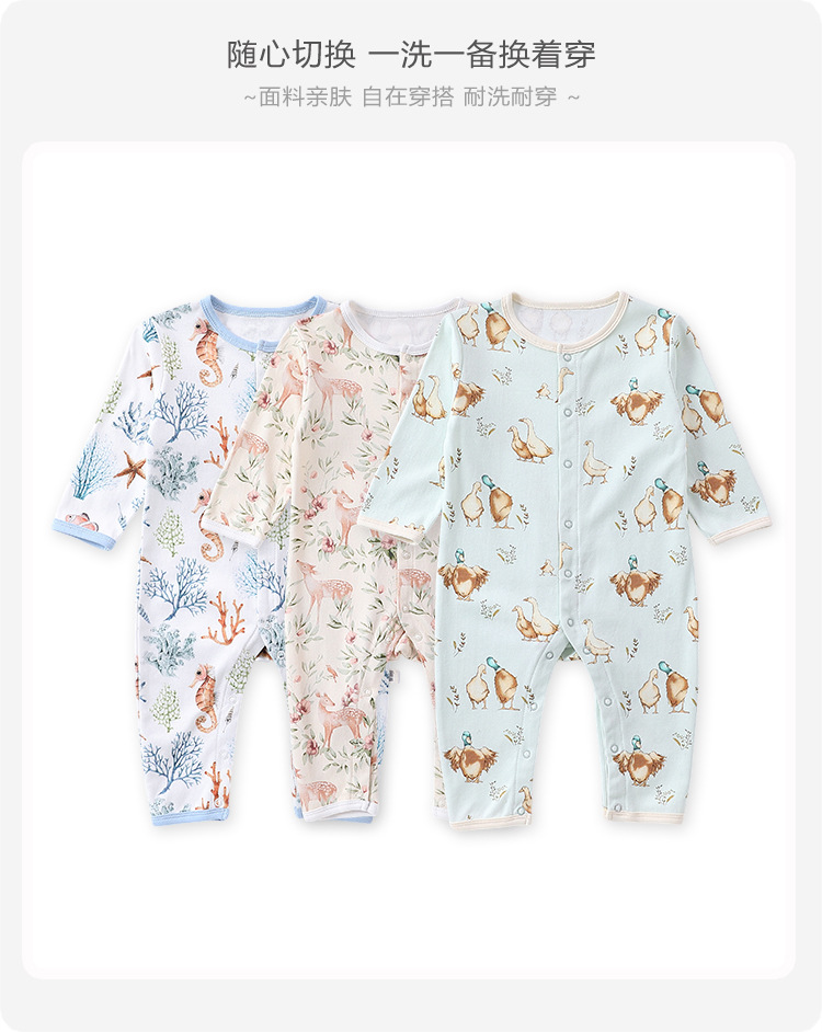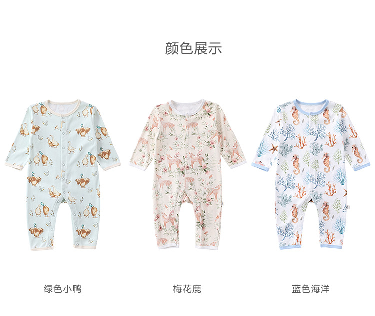 D24001ALS-Autumn long-sleeved buttoned animal crawling suit
