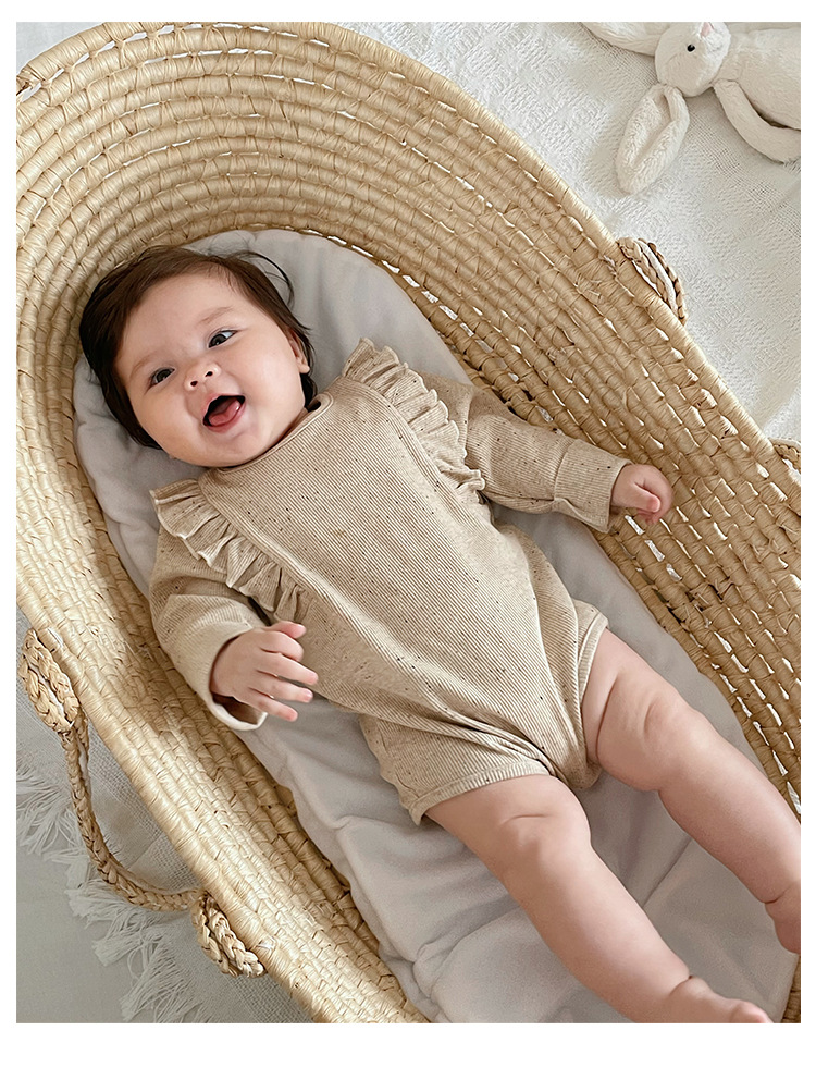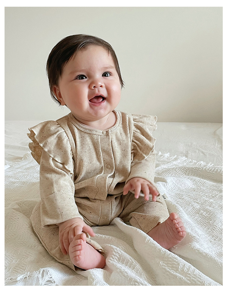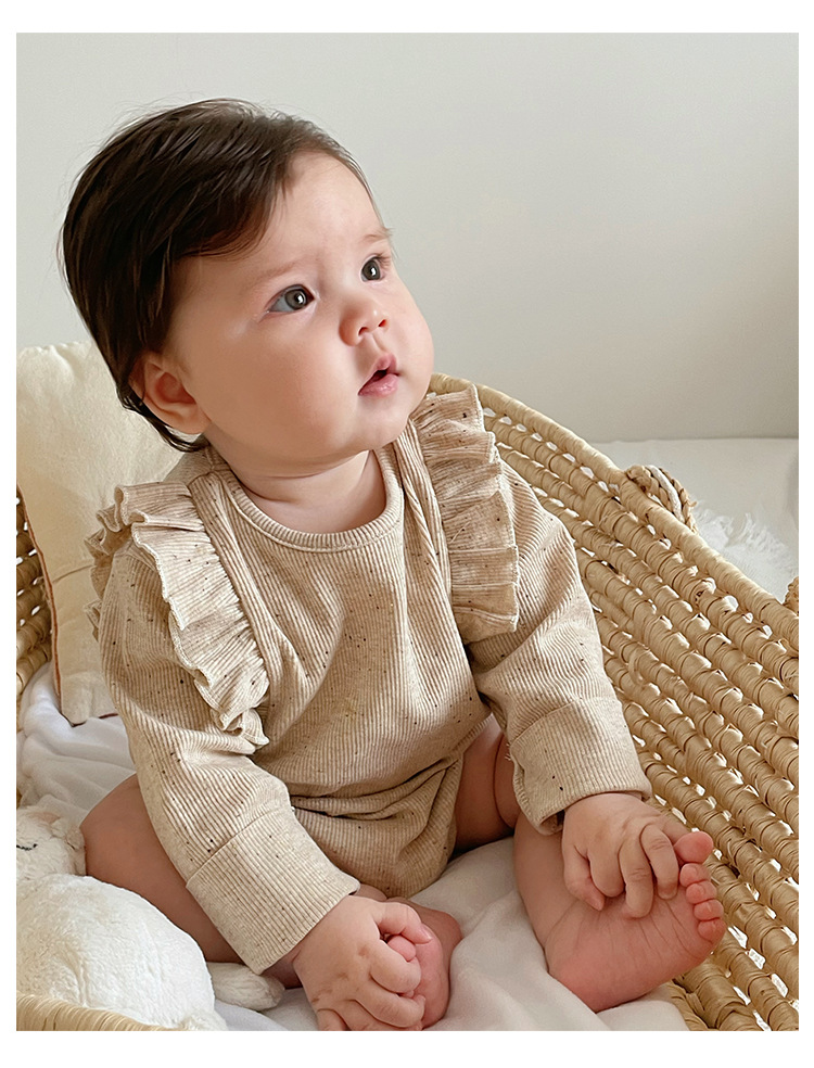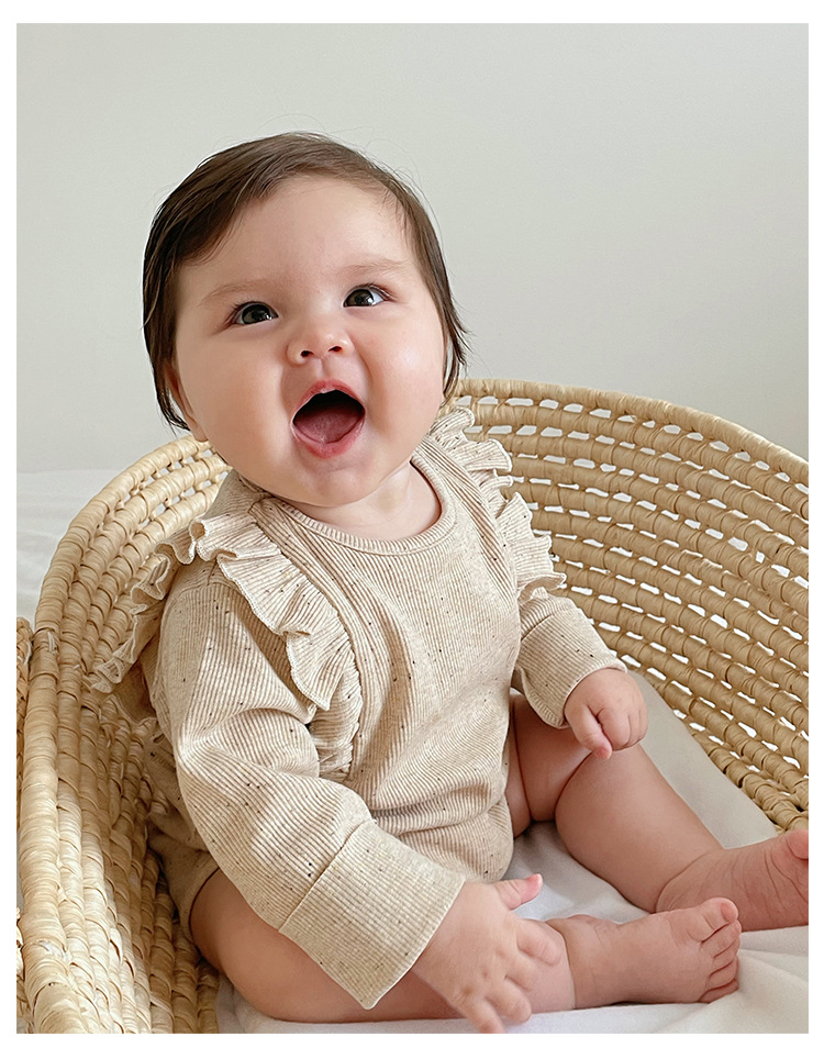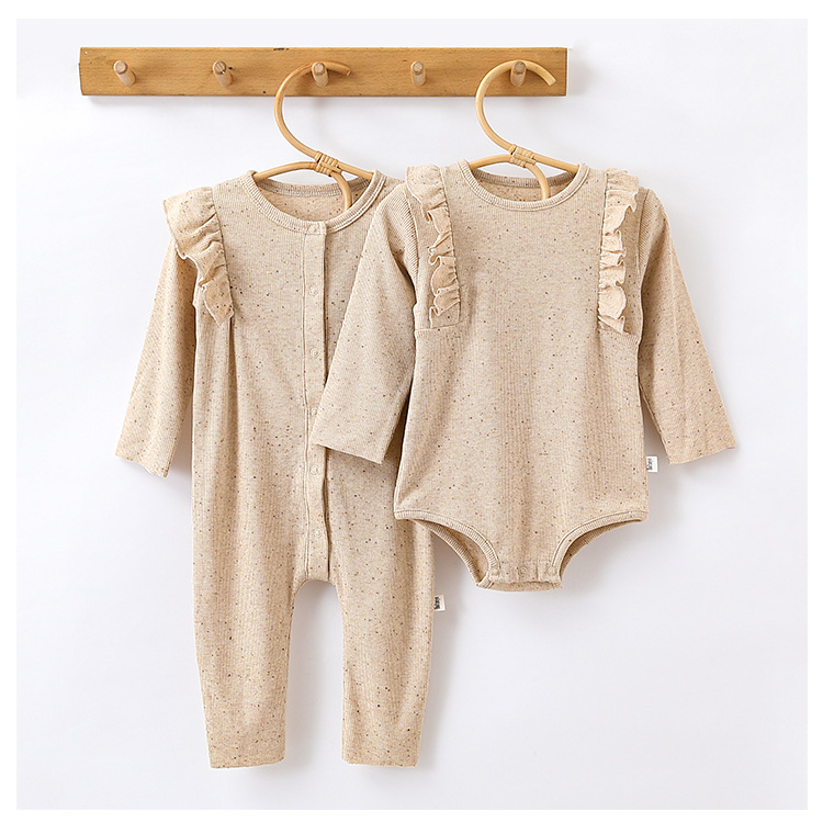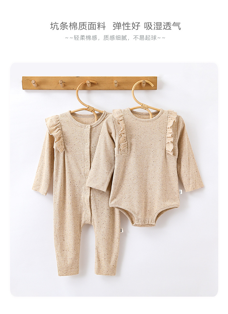 D24343LS-Autumn Nordic style oatmeal color bodysuit & crawling clothes