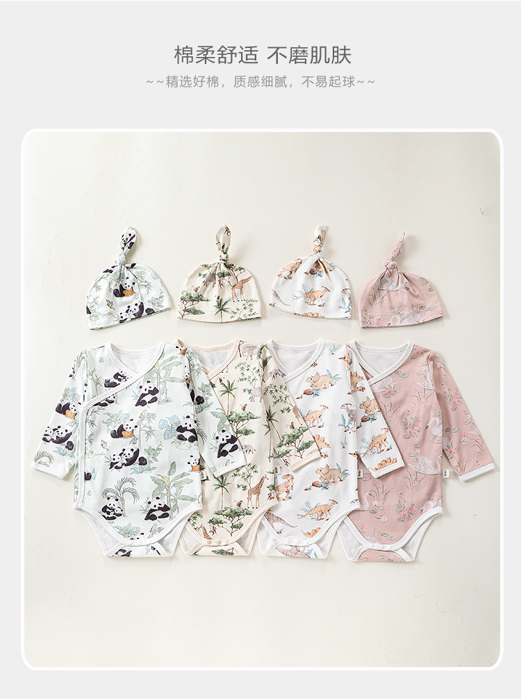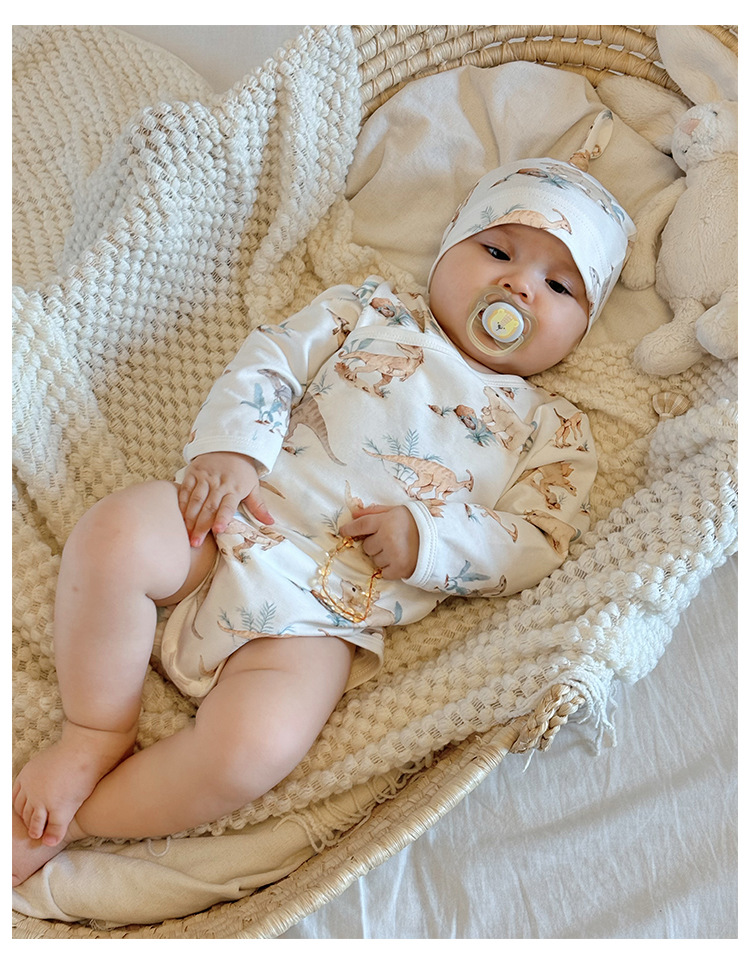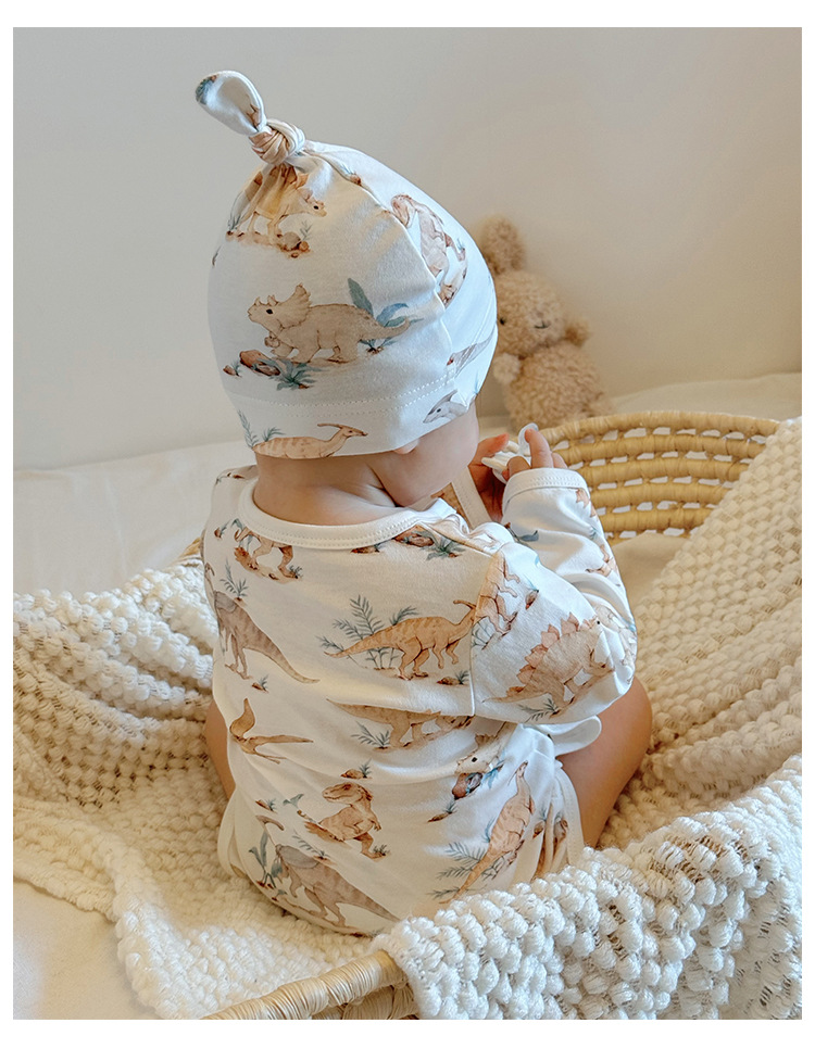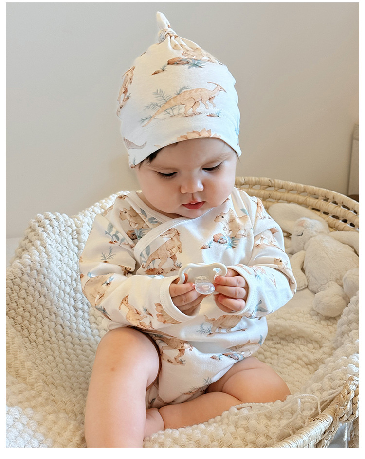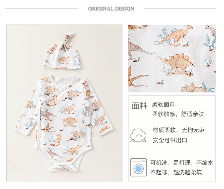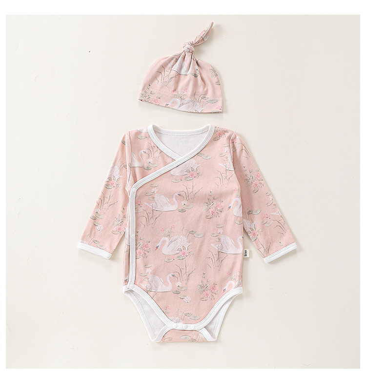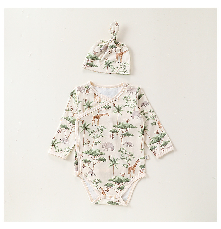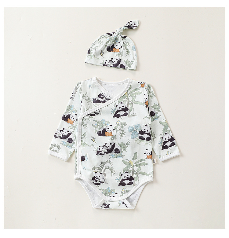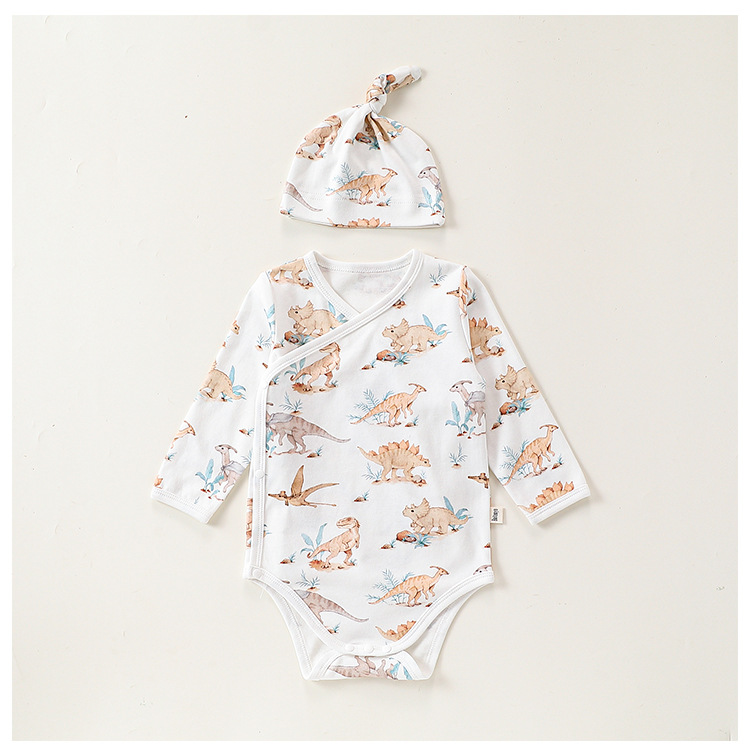 D24433LS-Autumn pure cotton long-sleeved triangle romper + hat